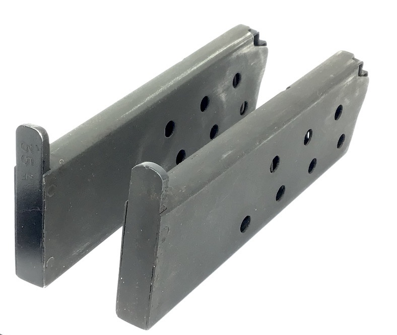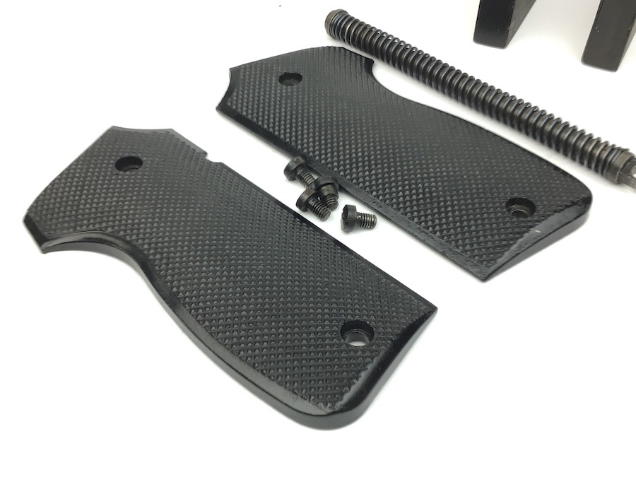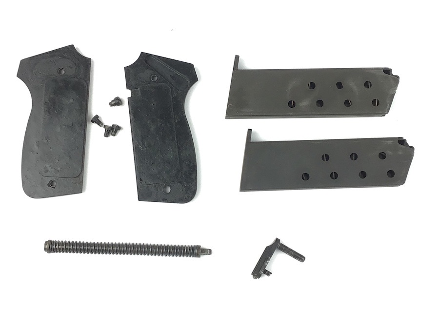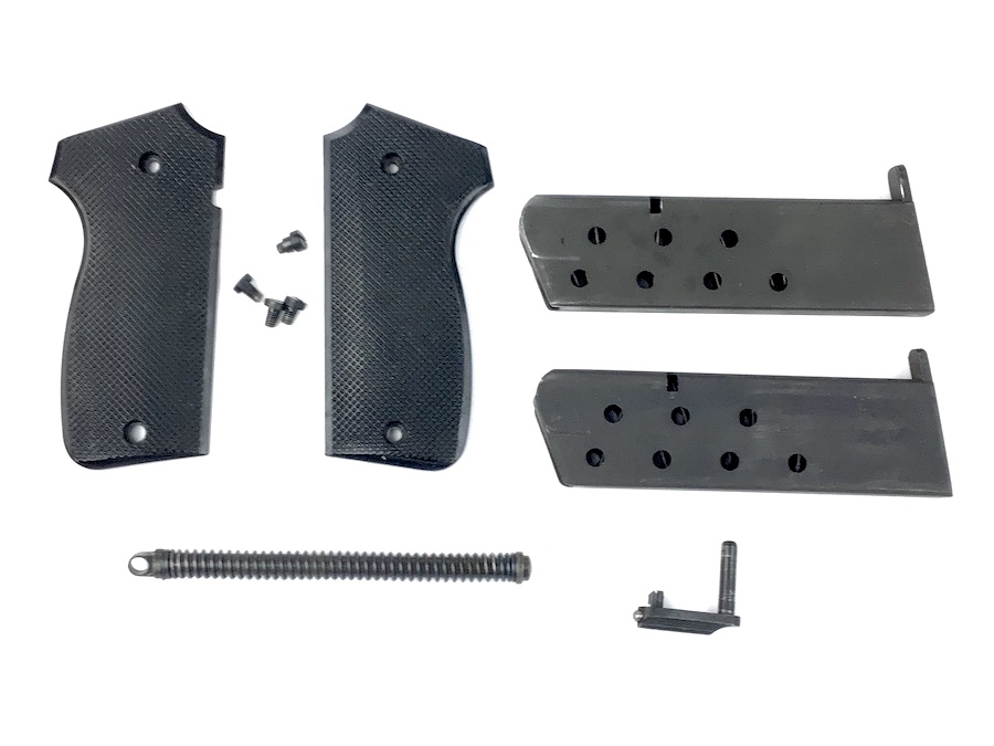 4/22/22 – Original and great condition parts, magazines and grip panels for the French SACM M1935 handgun. Grips are straight with no cracks or chips. Includes all grips screws. Magazines are completely functional. One magazine is stamped on the base “35A”. There are no other markings. These parts are very good and usable condition.