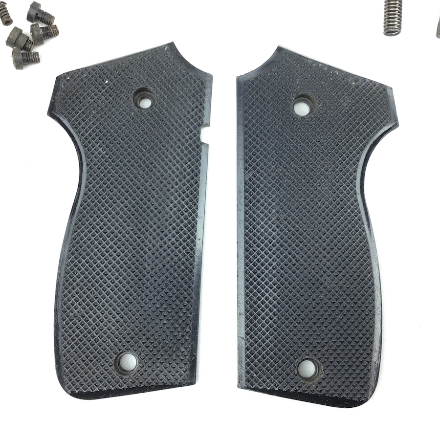 4/9/20 – Original and great condition parts kit and grip panels for the French SACM M1935 handgun. Grips are straight with no cracks or chips. Includes all grips screws. These parts are very good and usable condition.