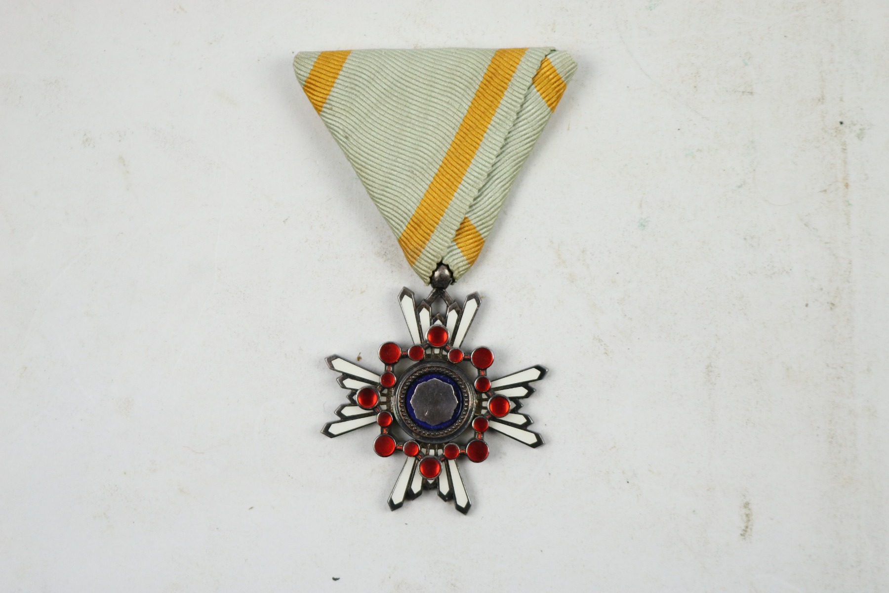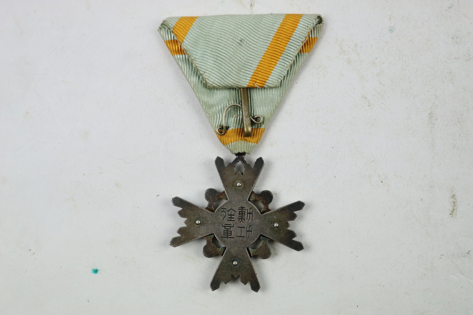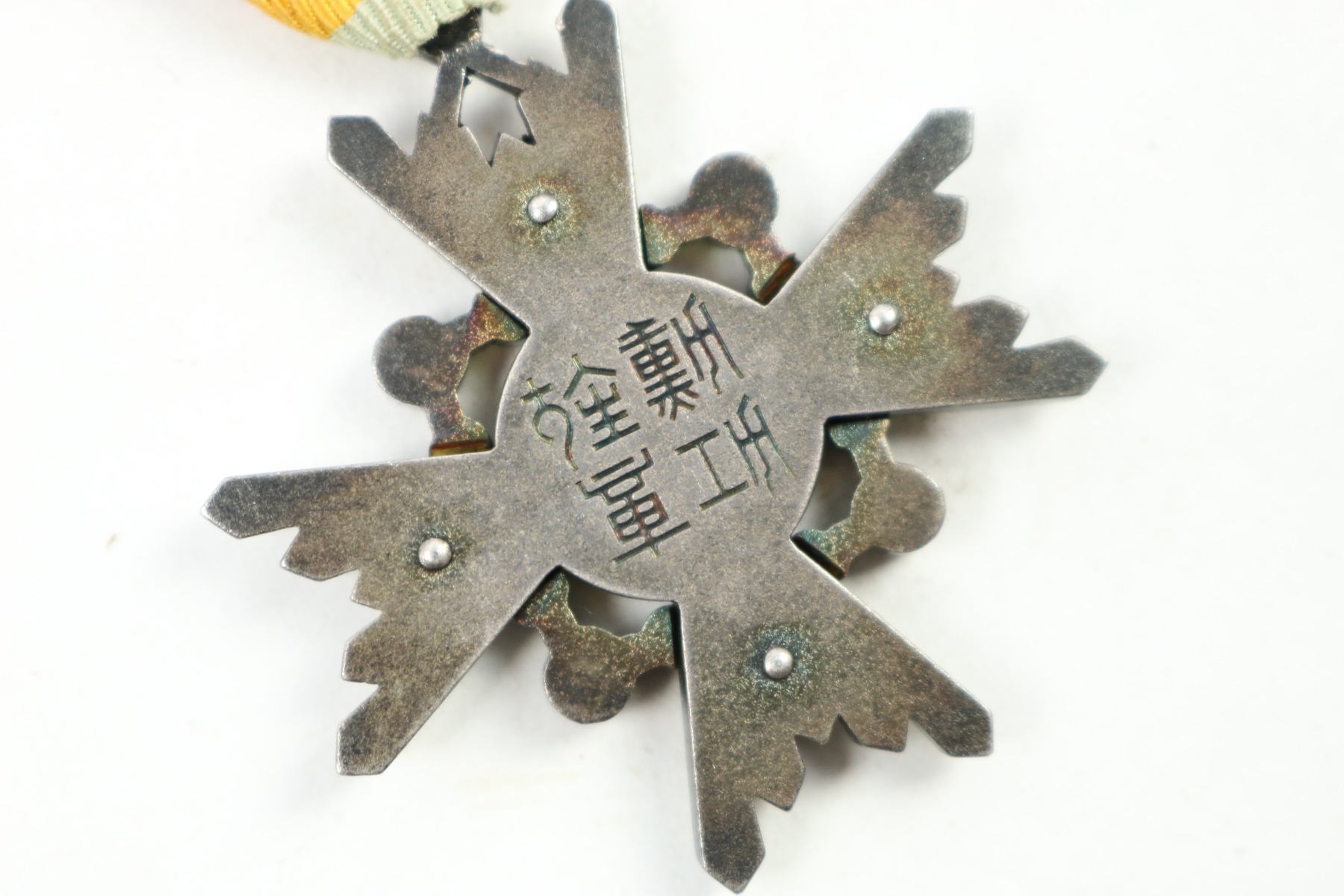 8/28/18 – This is an original WW2 era Japanese Sacred Treasure Higher Order Medal. This was awarded for long and/or meritorious civil or military service. The medal is all original with the original ribbon. Excellent condition as shown in photos. The ribbon has very minor fading / aging but this is normal wear. Guaranteed original.