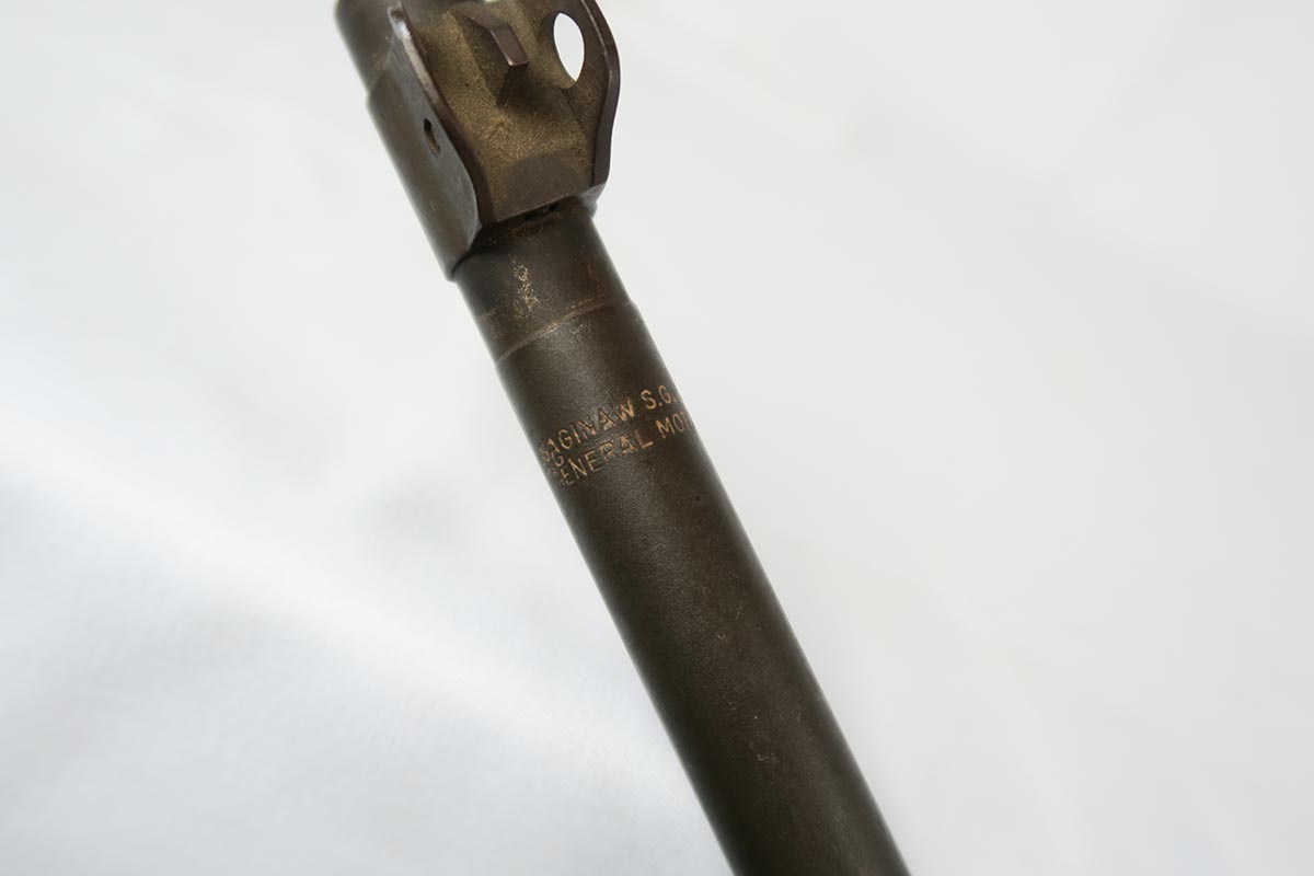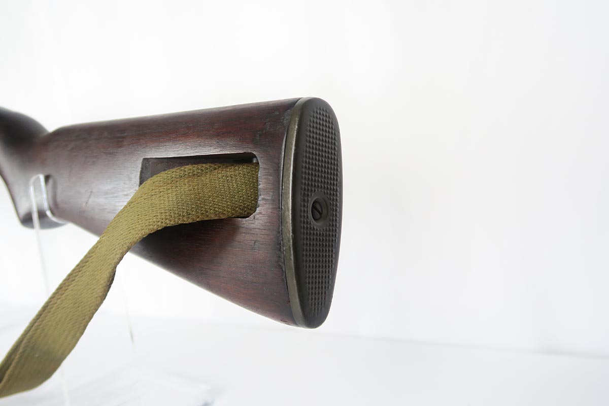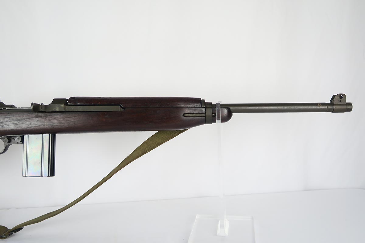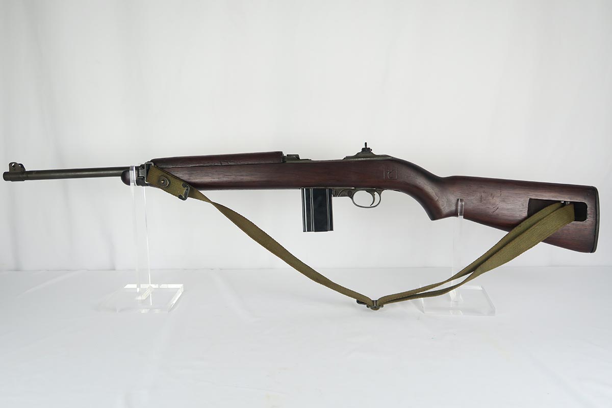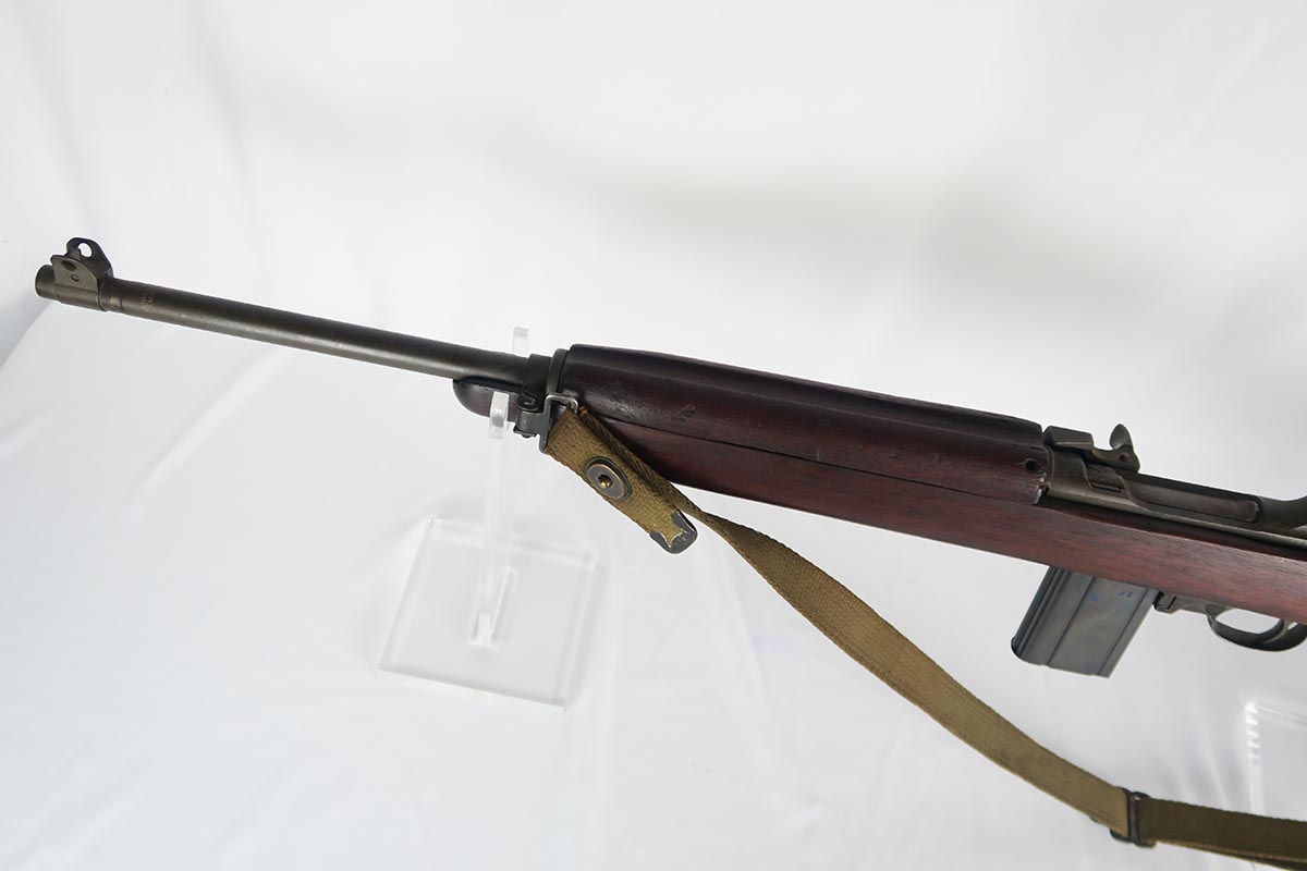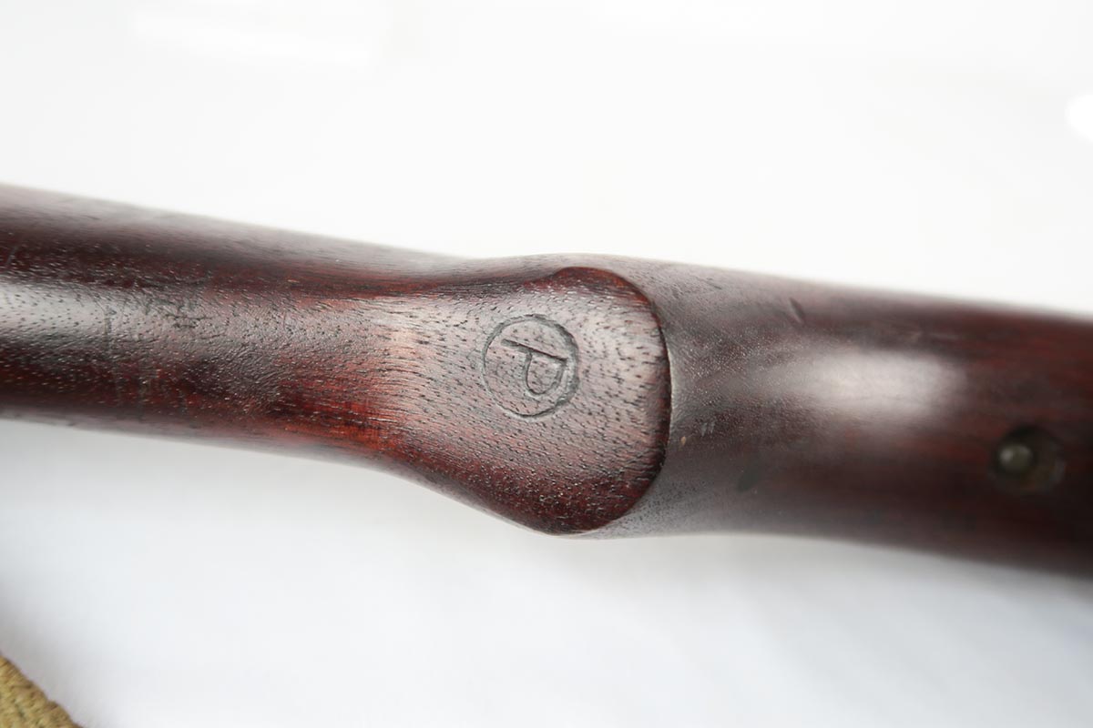 2/7/18 – This is a nice and original example of an M1 Carbine produced by Saginaw Gear in Grand Rapids, Michigan. The serial dates it to 1943, and it is in good condition with no major flaws to the stock and common patina in the metal. Sling cut is marked RSG and right side stock has an SG cartouche. Bottom of the wrist shows the proper P proof in circle. Left side stock is proofed SA over C. World War II original sling. Bore is excellent and shiny with a spot of minor corrosion near the muzzle. No import marks.