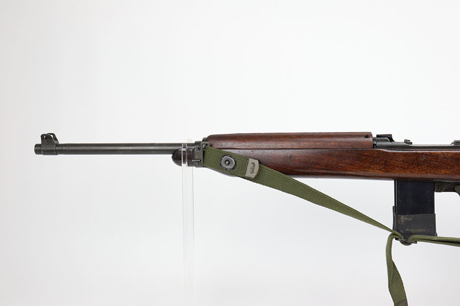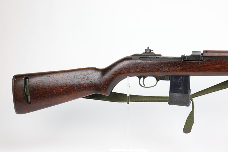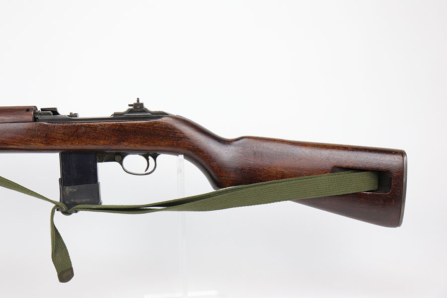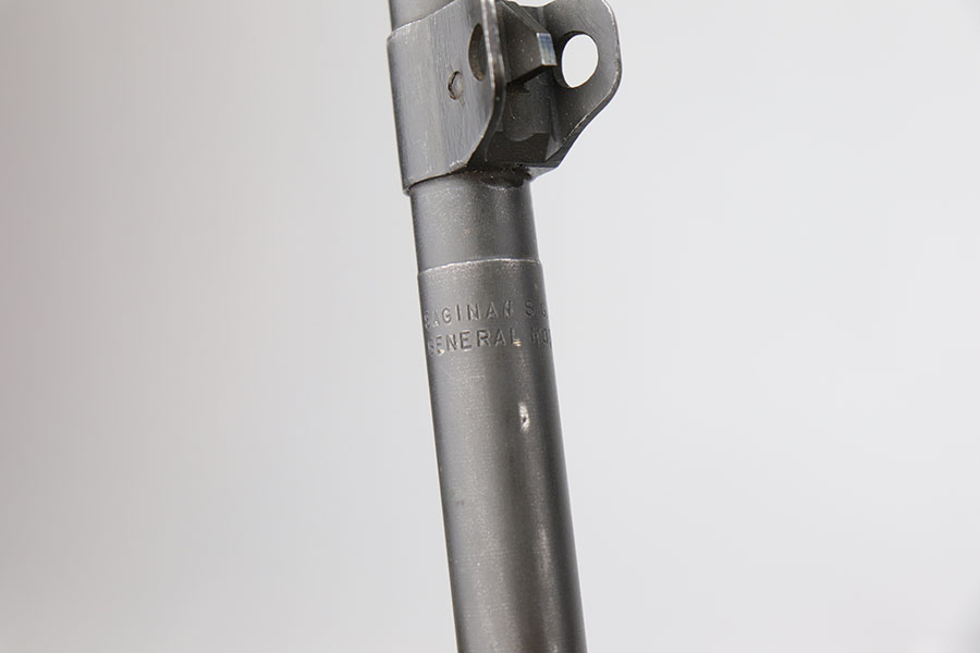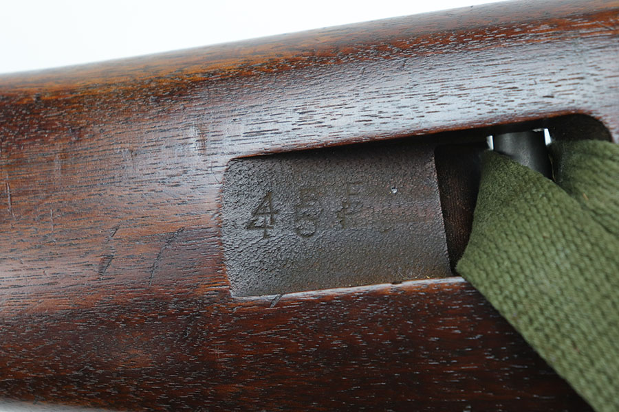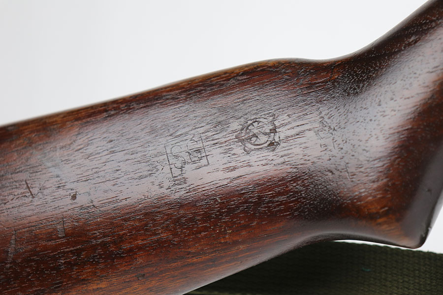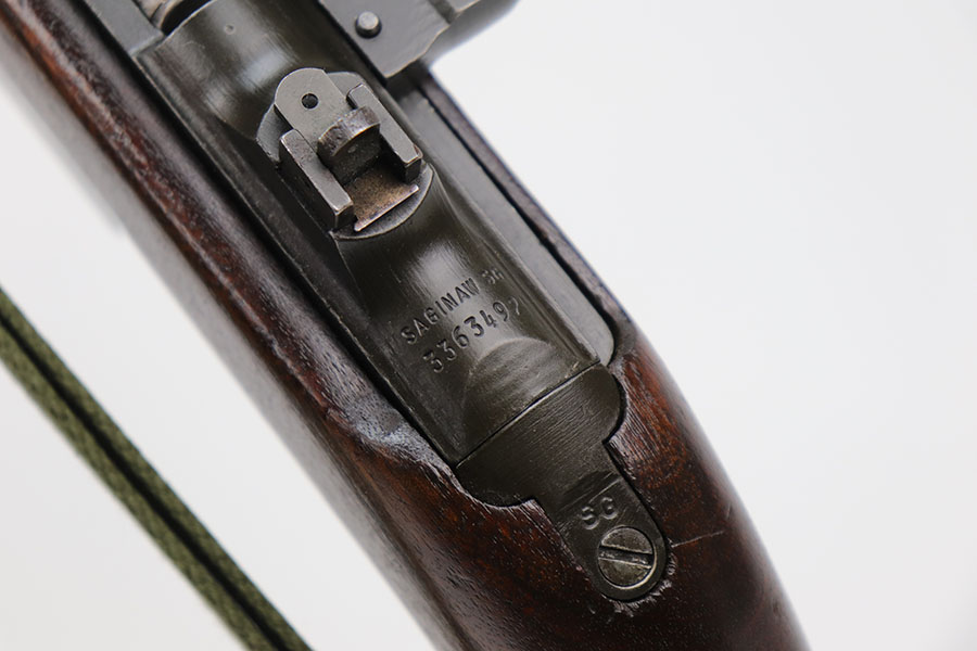 11/20/20 – This is a very nice and all original example of an M1 Carbine as produced in 1943 by Saginaw. Correct Saginaw proofed parts throughout, including barrel/receiver/stock. Only about 8.5% of the total M1 Carbine production was done by the Saginaw based plant. The finish on the metal parts is excellent overall with just one patch of thinning and freckling on the barrel to mention. The stock has several dings and nicks but no cracks or major chips. Excellent bore. Comes with period sling.