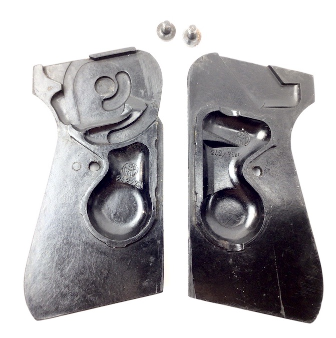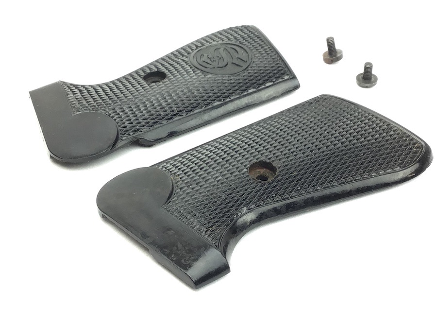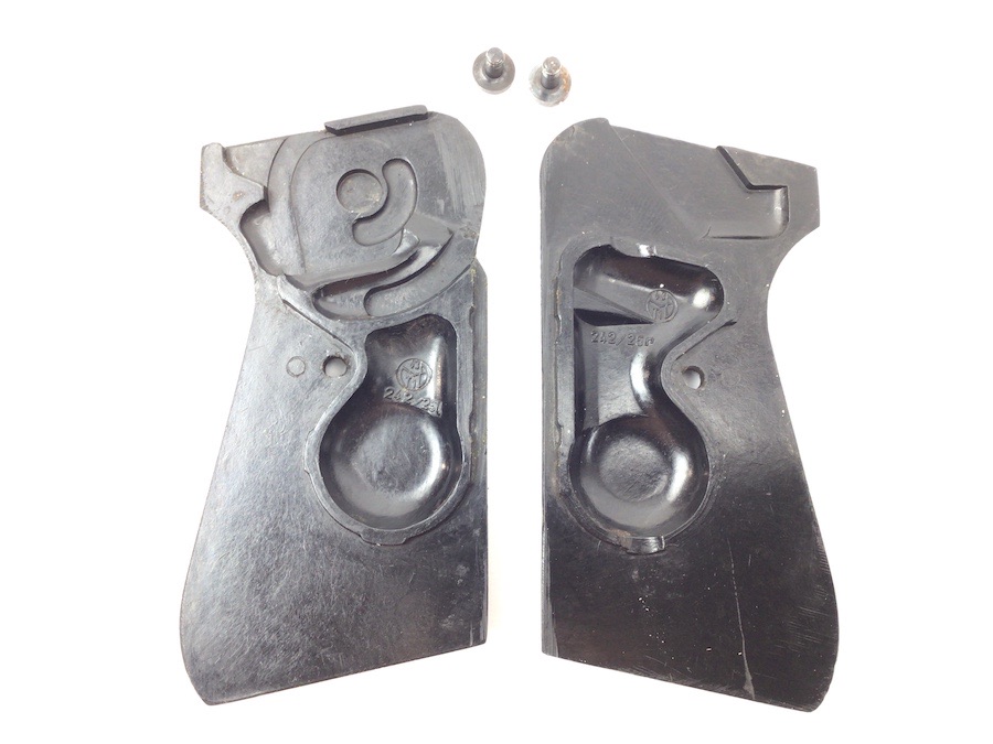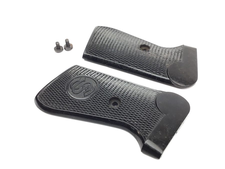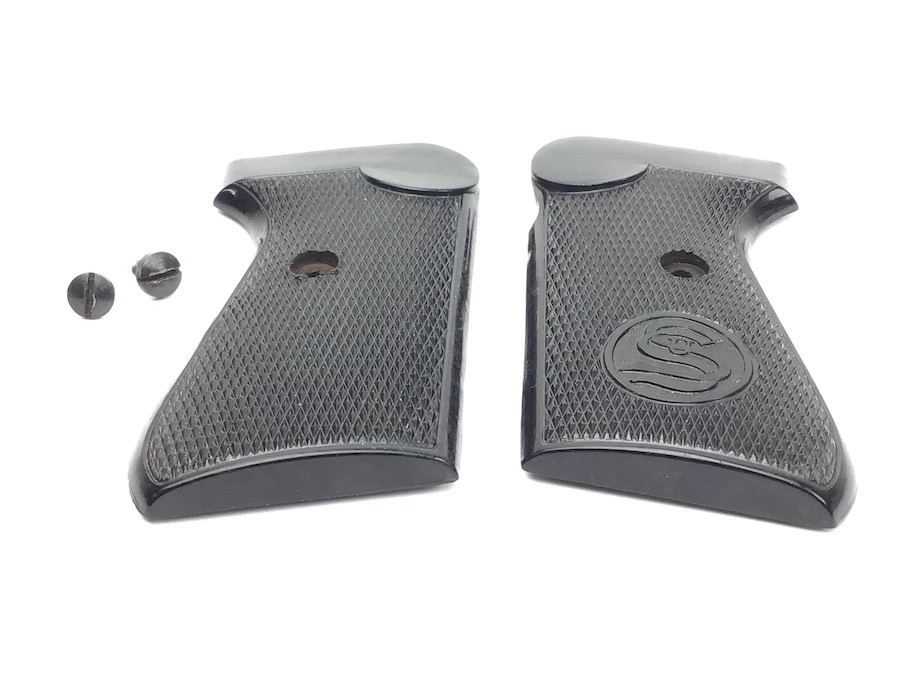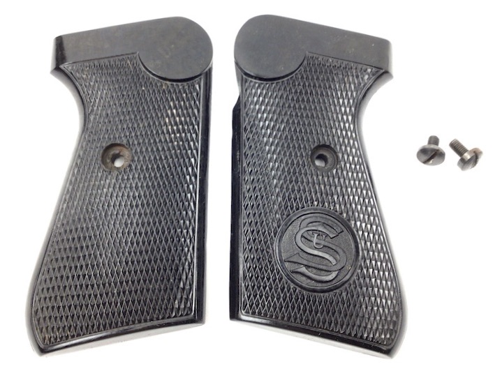 3/21/22 – Original and minty condition pair of WW2 era Sauer 38h grips. Includes original screws. Original Sauer 38h grips are very hard to find. Distinct checkering and Sauer logo. Nice color. Clean. No cracks or warping.