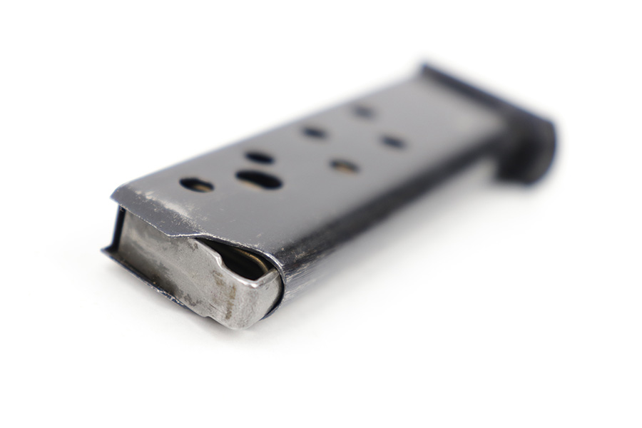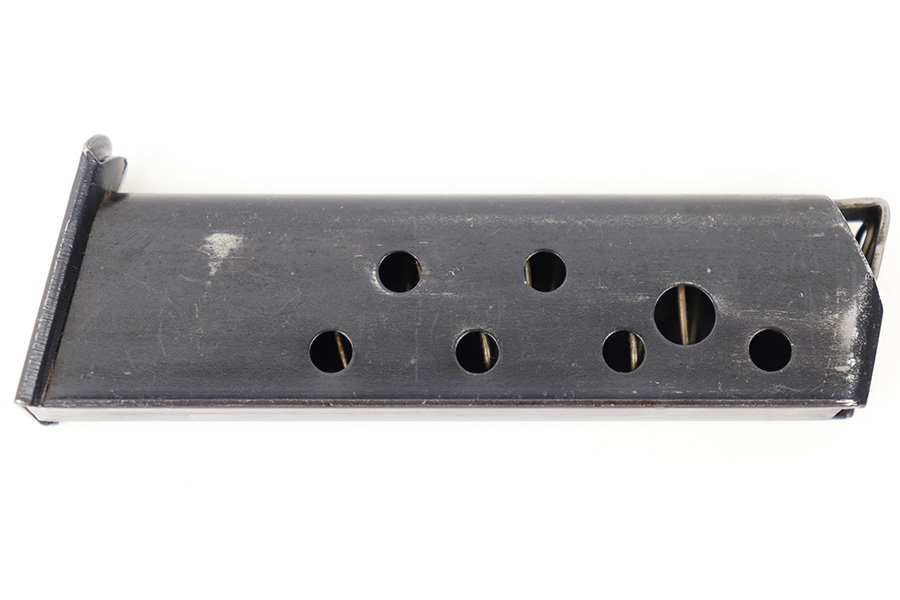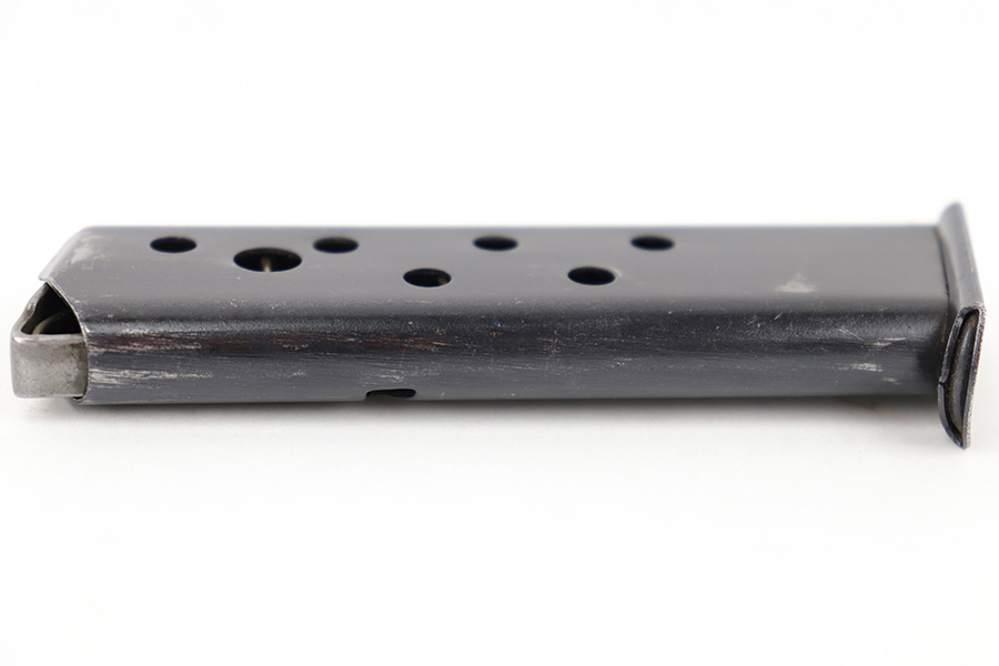 6/20/23 – This is an original WW2 wartime production Sauer 38h magazine. The magazine has no markings or stamps, and a half-moon indent on the base. Excellent condition with minimal finish loss and a fully functional spring.