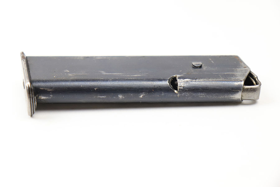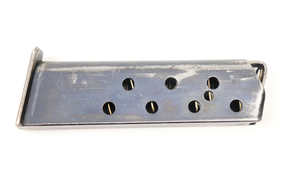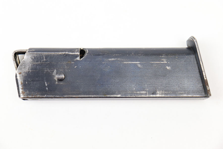 6/1/21 – This is an original Sauer 38h magazine from early WW2. The magazine is stamped on the base with a double “S” Sauer logo, found on earlier variation pistols. the magazine has some minor finish loss but no rust or pitting. The spring is strong and fully functional.