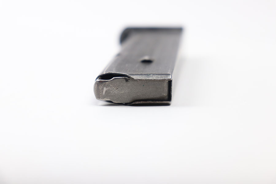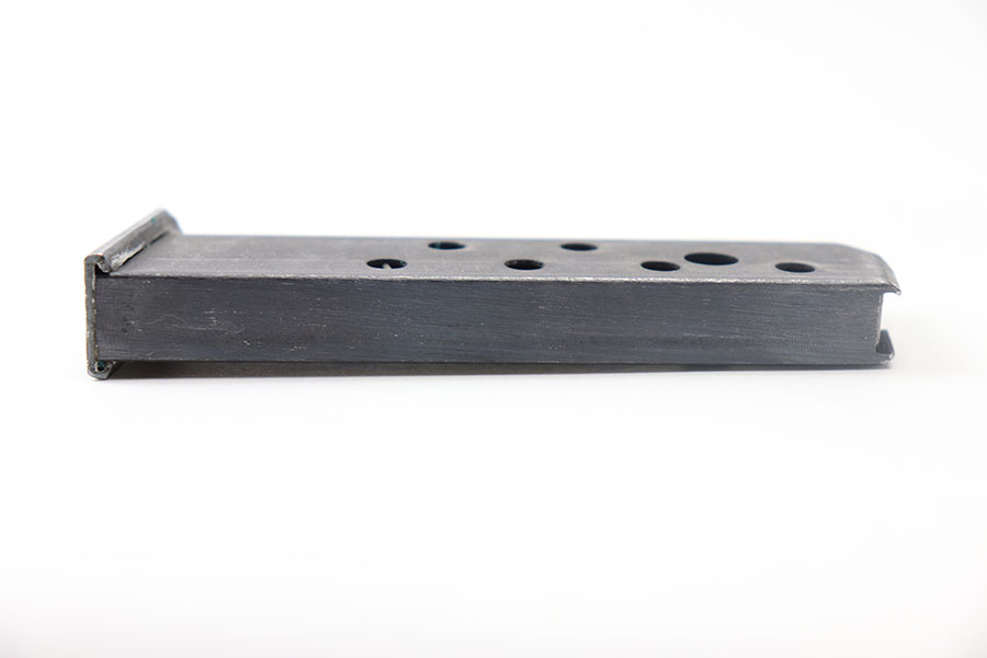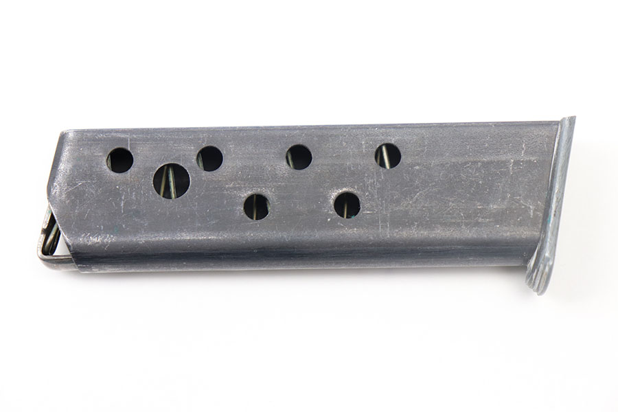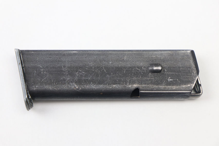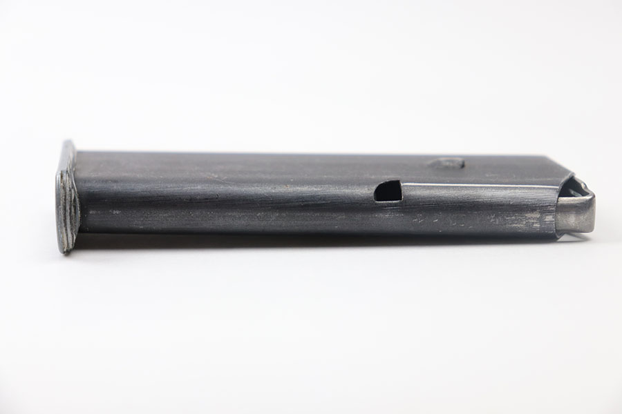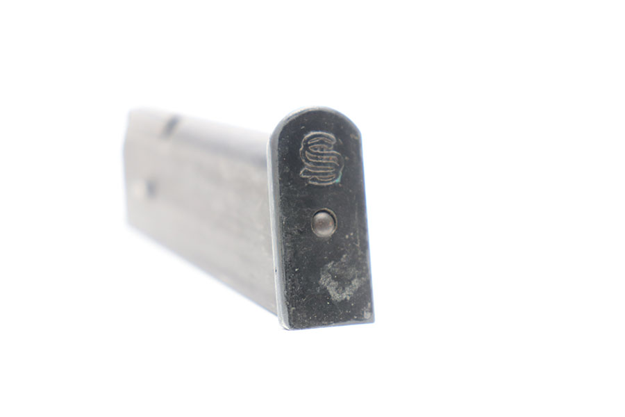 6/16/21 – This is an original wartime production Sauer 38h magazine. The magazine has a zinc base that is double S stamped with the Sauer logo. The base is a little darker on the bottom, but this is a non-issue. The tube is excellent and the spring is strong and fully functional.