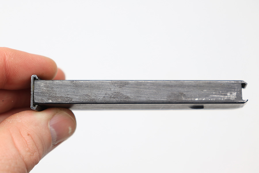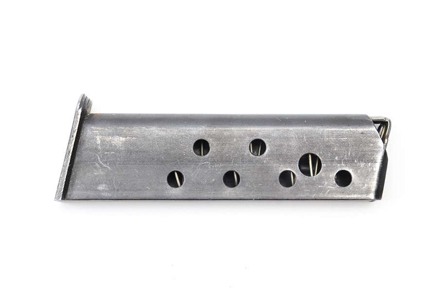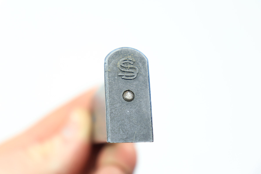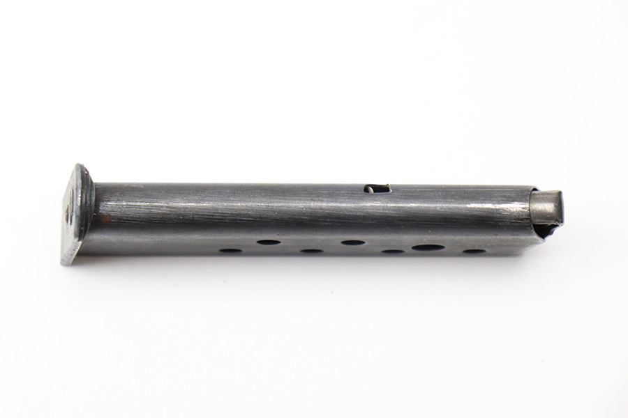3/16/22 – This is an original WW2 production Sauer 38h magazine. The magazine has an excellent, dull blued finish tube and a zinc base. The base has the double S Sauer logo, as shown. No rust or pitting and a fully functional spring.