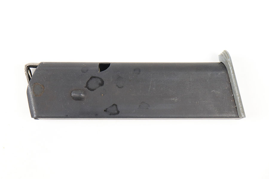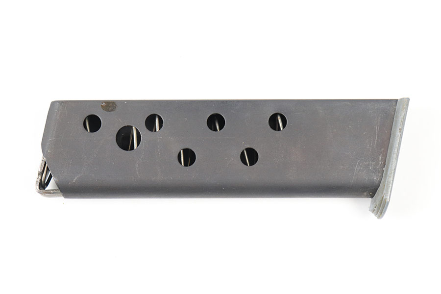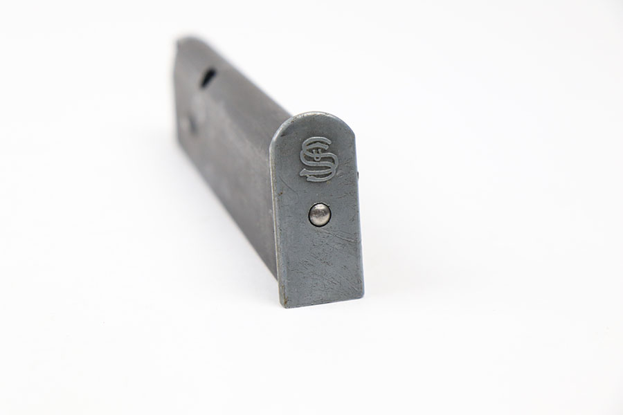 8/20/21 – This is an excellent, original wartime Sauer 38h magazine. The magazine has a zinc base with a double S logo. There are a few mild oil stains but overall an excellent example.