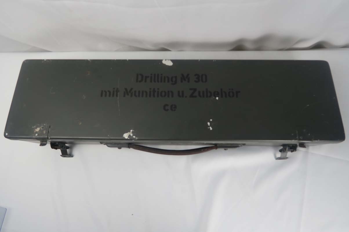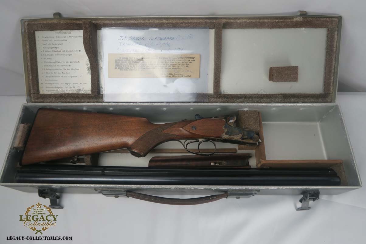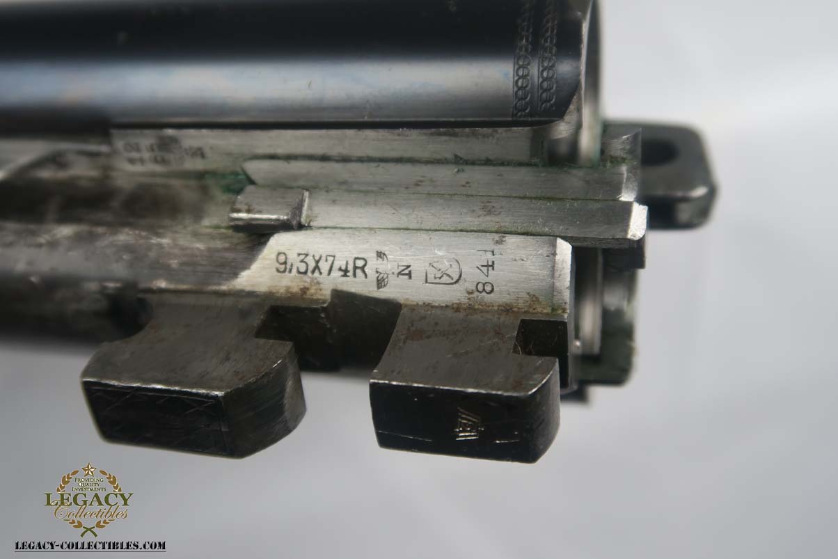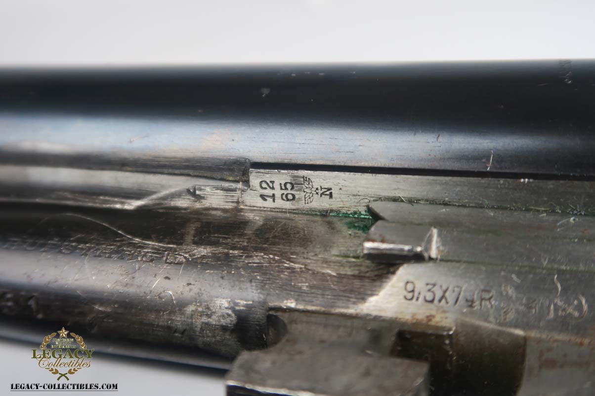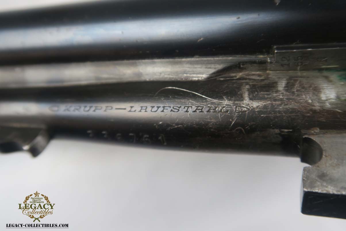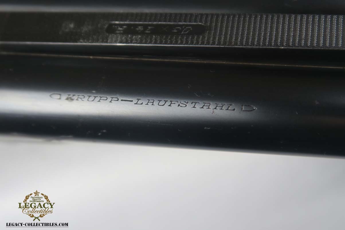 12/4/17 – This is a beautiful M30 Luftwaffe drilling in the original case, with capture papers. The original finish is about 97-98% with about with excellent case hardening. The bores are excellent and shiny. The stock is nice with only a few minor scratches, and has a Luftwaffe Eagle on the right side. Original case is in very good condition with some minor rust. Sauer M30 drilling (in German, meaning triple-barrel combination rifle / shotgun) was originally developed by famous German gun making company J.P.Sauer & Sohn as all-around hunting weapon. Introduced in 1930, it was commercially available in several caliber combinations, sporting two side by side shotgun barrels (in 16 or 12 gauge) over one rifled barrel. In 1941, when Hitler’s Germany began military operations in Northern Africa, Luftwaffe (German Air Force) adopted Sauer M30 drillings as wilderness survival weapon for air crews, operating over vast North African deserts. It is 12g as well as 9.3x74R rifle ammunition. It must be noted that Luftwaffe bought Sauer M30 drillings outside of standard military procurement procedures, and all Luftwaffe drillings were made to pre-war commercial standards of fit and finish, and thus were rather expensive. Overall, Luftwaffe bought about 2,500 Sauer M30 rifle / shotgun. This one is dated to August of 1941 on the underside of the barrel. Eagle/N proofs can be found in a few spots. All matching, and functions well mechanically.