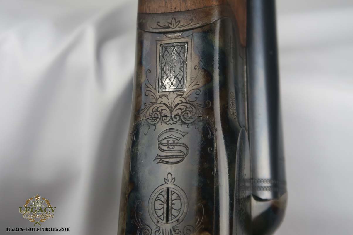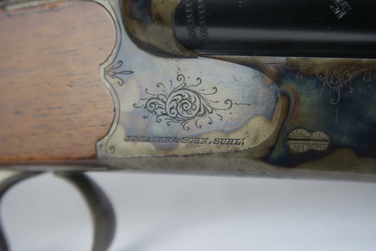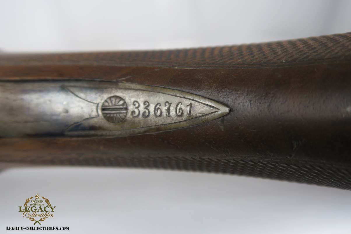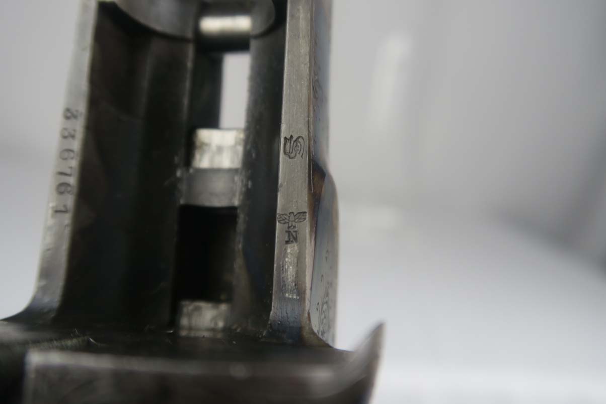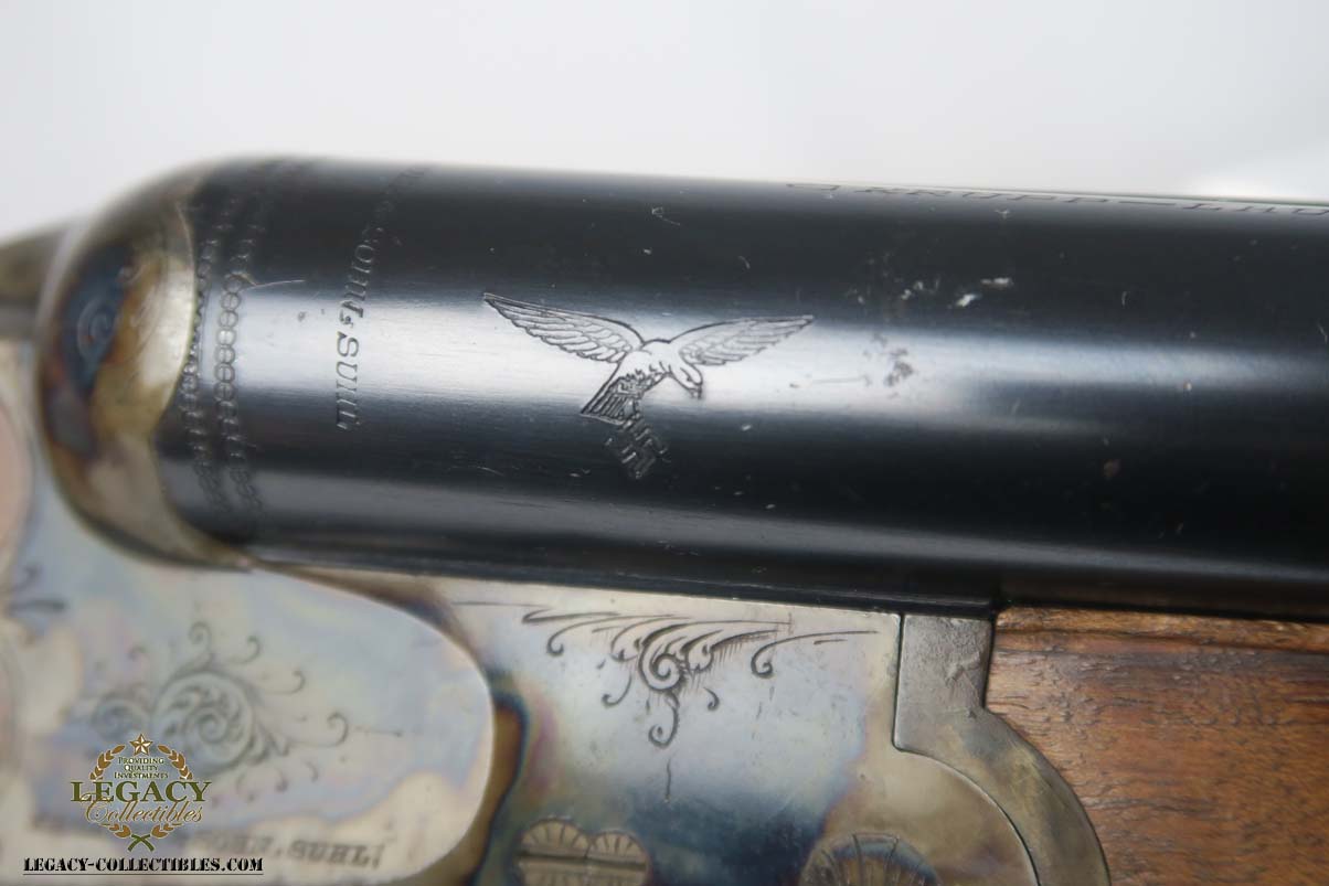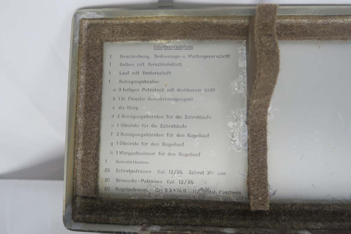 12/4/17 – This is a beautiful M30 Luftwaffe drilling in the original case, with capture papers. The original finish is about 97-98% with about with excellent case hardening. The bores are excellent and shiny. The stock is nice with only a few minor scratches, and has a Luftwaffe Eagle on the right side. Original case is in very good condition with some minor rust. Sauer M30 drilling (in German, meaning triple-barrel combination rifle / shotgun) was originally developed by famous German gun making company J.P.Sauer & Sohn as all-around hunting weapon. Introduced in 1930, it was commercially available in several caliber combinations, sporting two side by side shotgun barrels (in 16 or 12 gauge) over one rifled barrel. In 1941, when Hitler’s Germany began military operations in Northern Africa, Luftwaffe (German Air Force) adopted Sauer M30 drillings as wilderness survival weapon for air crews, operating over vast North African deserts. It is 12g as well as 9.3x74R rifle ammunition. It must be noted that Luftwaffe bought Sauer M30 drillings outside of standard military procurement procedures, and all Luftwaffe drillings were made to pre-war commercial standards of fit and finish, and thus were rather expensive. Overall, Luftwaffe bought about 2,500 Sauer M30 rifle / shotgun. This one is dated to August of 1941 on the underside of the barrel. Eagle/N proofs can be found in a few spots. All matching, and functions well mechanically.