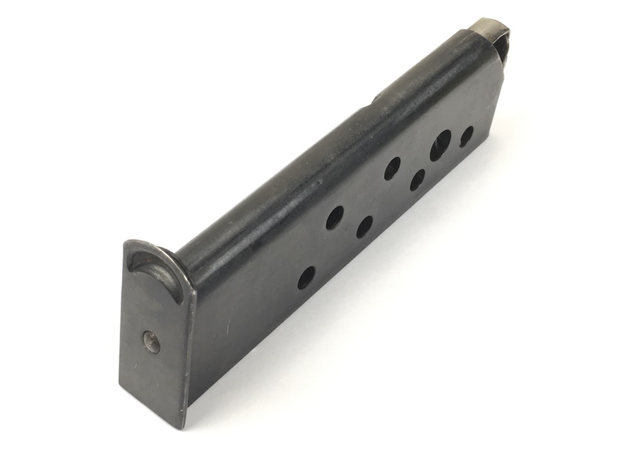 8/12/19 – This is an original Sauer model 38h magazine. The magazine is in excellent condition with no rust or pitting. The spring is excellent and fully functional. The bottom of the magazine has a small half-moon shaped indent. Guaranteed original from WW2.
