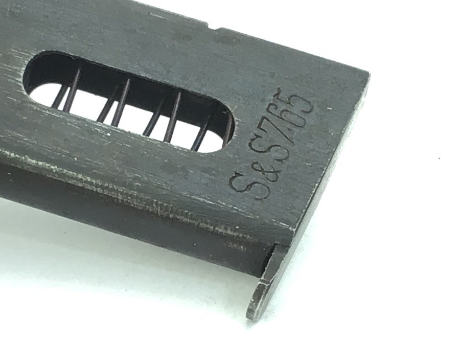 4/19/23 – This is an original Sauer model 1913 magazine. The left side of the magazine is stamped S&S 7,65. The magazine is in great condition with minor use wear. The spring is excellent and fully functional.