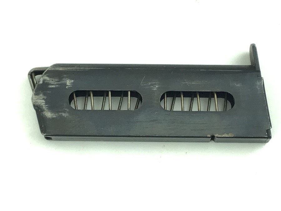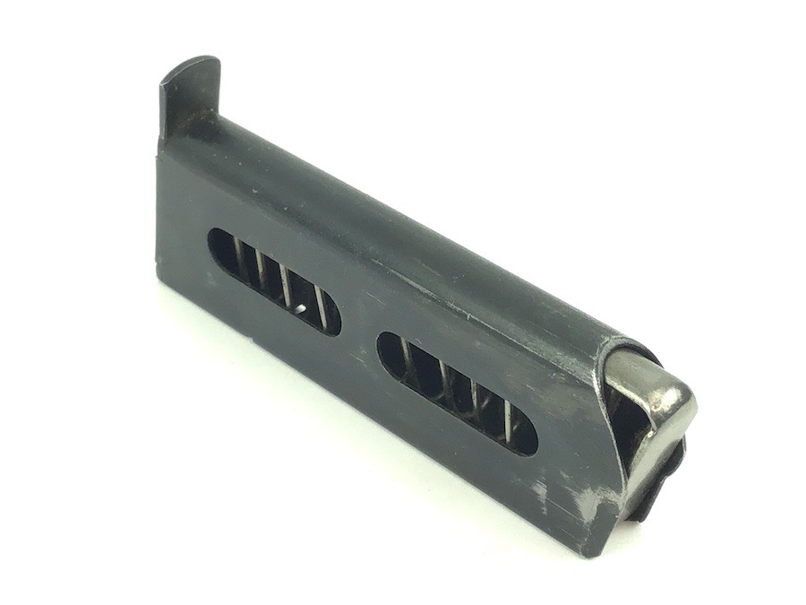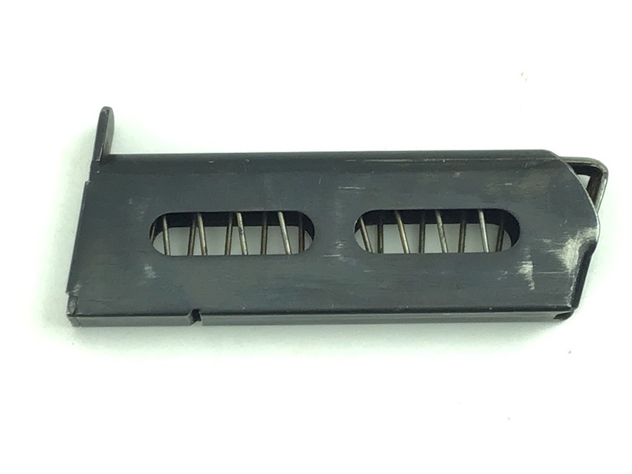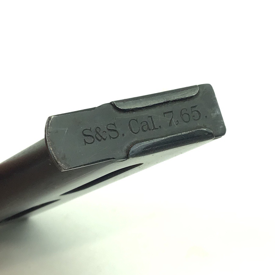 11/16/22 – This is an original Sauer model 1913 magazine. The base plate of the magazine is ‘S&S Cal 7,65. stamped. Typically, these magazines were stamped on the left side. The magazine is in excellent condition with only minor use wear. The spring is excellent and fully functional. Very nice, rare magazine.