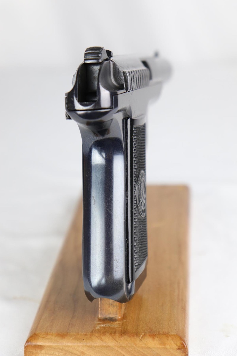 3/13/18 – This is a mint example of an early high polished Savage M1907 pistol, chambered in .32 ACP, and is like new in the box. The gun was made around 1910-1912 and has beautiful mirror finish without any wear evident. It has mint bore and grips, overall looks unfired. The original box is in excellent shape with an intact side label. Savage pistols were very well made and had the first detachable double stack magazine that held 10 rounds. Impossible to upgrade set. Guaranteed all original and authentic.