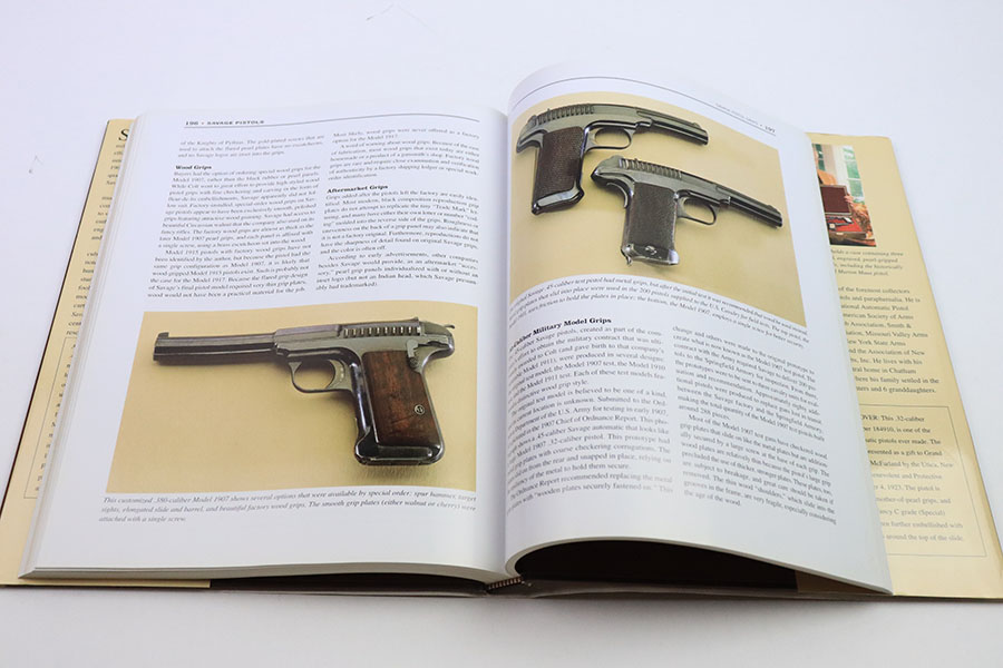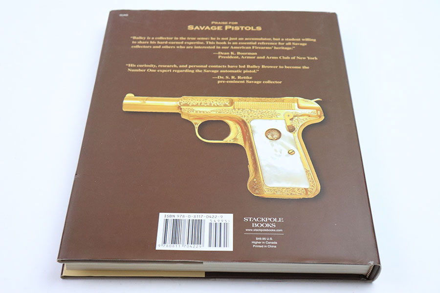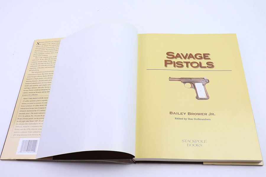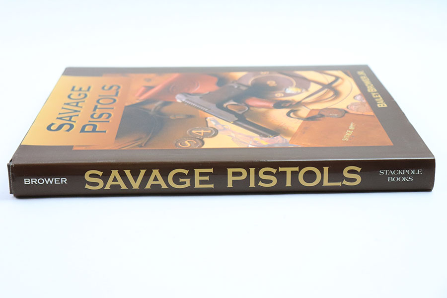 10/12/22 – This is a lightly-used example of Bailer Brower JR’s “Savage Pistols”. The original dust cover is in good condition overall with handling wear and marks here and there. The hardcover is in great shape with virtually no wear except for minimal damage to the corners. The page edges are mostly clean with a few patches of light discoloration. The pages are otherwise well-kept. The spine and binding are in excellent condition. There are 267 pages of content. The book measures 9 x 11.5 x 1″.