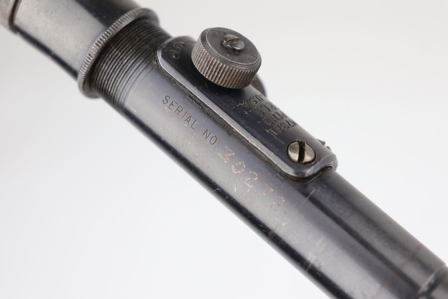 4/28/20 – This is an original Weaver M73 B1 Scope. These were used on the Springfield 1903-A4 sniper rifles during WW2. The scope is excellent with crisp, clean optics. No notable issues. Exterior condition is also very good with one or two patches or finish loss, and a few patches of surface freckling. The serial number is hand-etched “30272”. An excellent collector rifle scope.