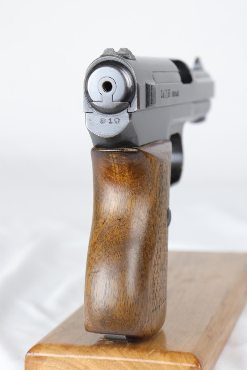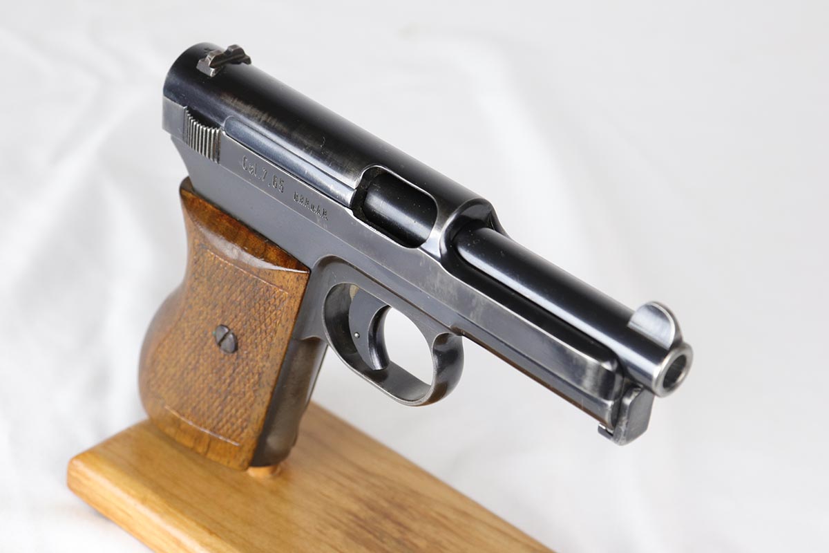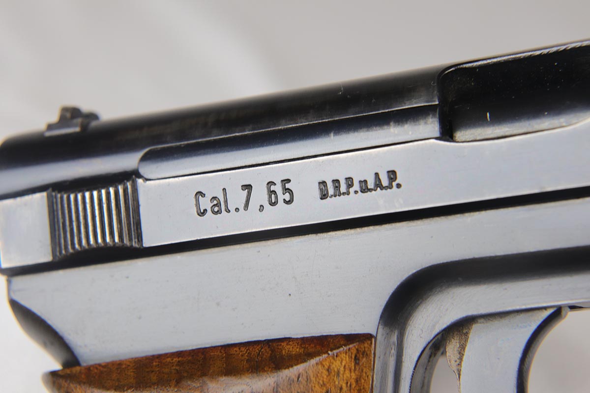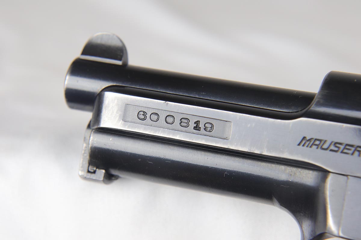 4/17/18 – This is a scarce 1934 Mauser made in late 1939 or early 1940.  This gun would have been produced just before the factory switched over to HSC production.  It is Eagle/N proofed which helps to determine the date.  It is also Nazi test proofed on the back left side of the frame and Eagle/655 proofed, indicating it was issued to the German Army.  These guns are fairly rare with an estimate of only ~8,000 procured by the army.  The original finish covers about 85% of the gun in a nice high-polish finish.  The slide shows standard edge wear but the front strap is thinned throughout. It has the correct one piece wood grips and correct 1934 magazine.   The bore is shiny and strong.