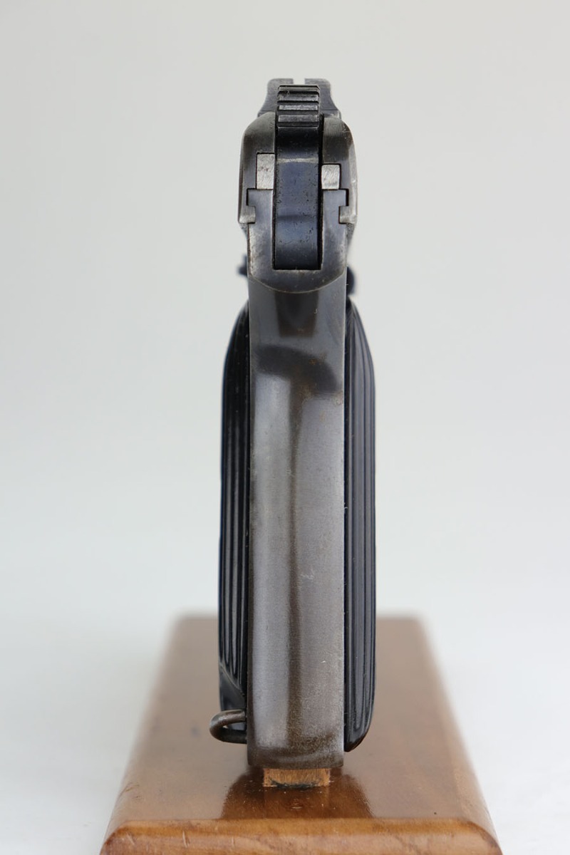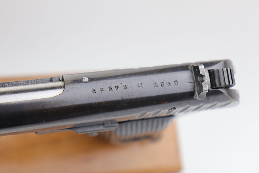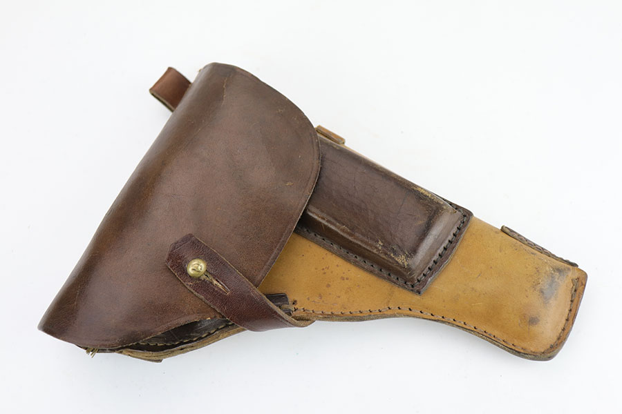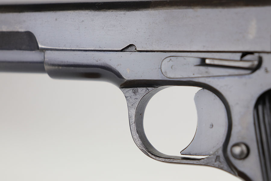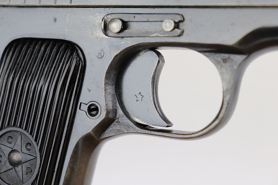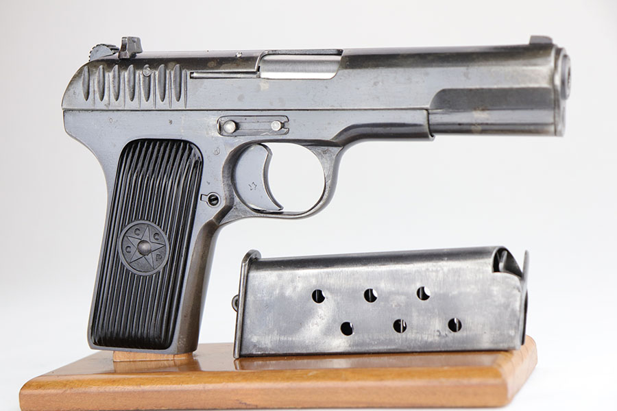 3/31/20 – This is an all matching and original example of a hard-to-find Tokarev TT-33, as produced in 1940 at the Tula factory. We don’t come across these often, and when we do, they are usually quite worn. This one has some high edge thinning on the slide and some patina of the straps, but no pitting and no areas that are eyesores. Magazine is original but mismatched to the gun. Excellent grips and comes with an original holster. Bore has strong rifling but some frost and minor freckling in the grooves.