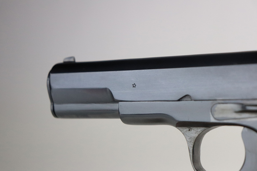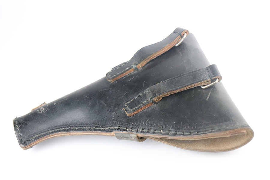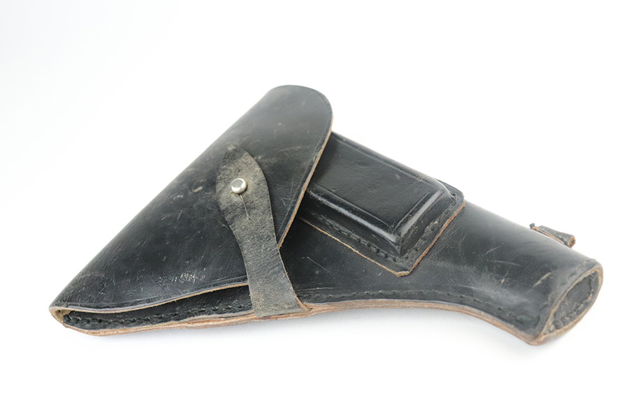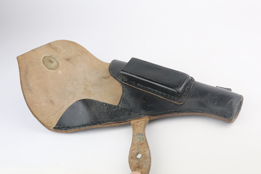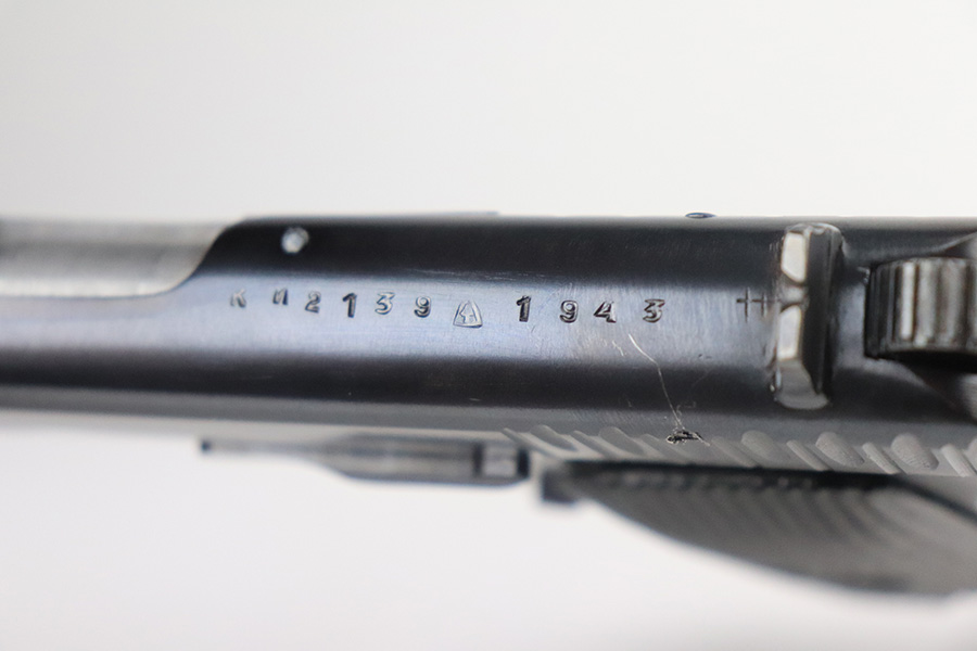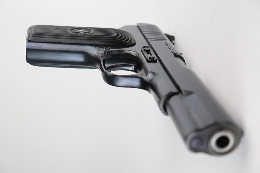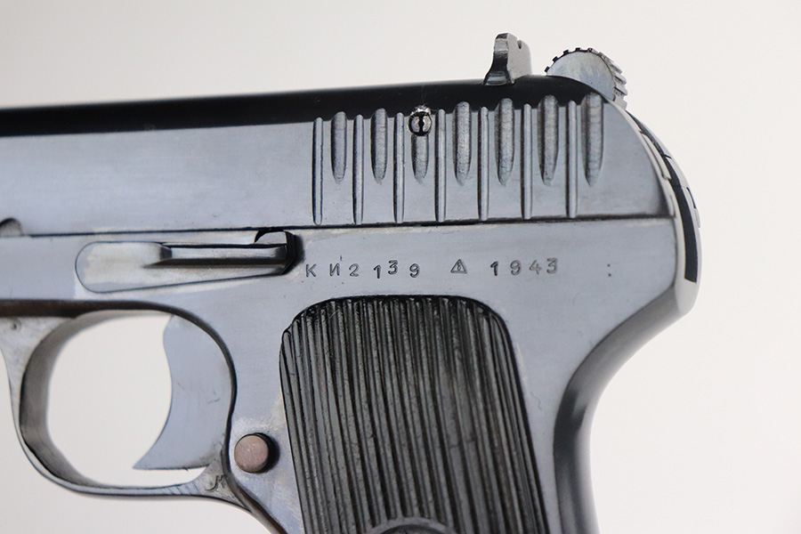 7/13/21 – This is a complete Russian Tokarev TT-33 rig that was produced in 1943 at the Izhevsk factory. While the finish of the pistol was restored some time after the war, it retains both of the matching numbered magazines! The restored finish is excellent overall with just a couple of dings on the right side of the frame. Bore has strong rifling but some frost throughout. Completed by a postwar leather holster.