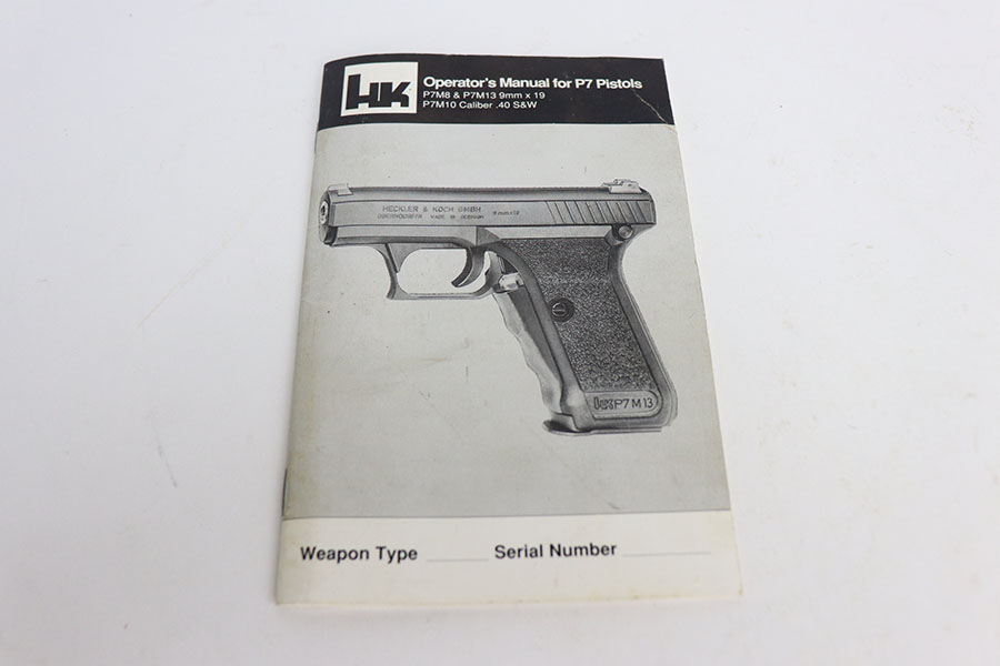 4/21/20 – This is an ANIB Heckler & Koch P7 M13 with original manual, box and spare magazine. The gun looks almost unused with no wear and minimal signs of being fired. The P7 was originally designed to be the standard German police sidearm in response to the 1972 Munich Olympics massacre. German police decided to replace the .32 ACP Walther PP with a similarly sized but 9x19mm pistol. It was expected to have a service life of at least 10,000 rounds, be ambidextrous, and under a certain size/weight. The scarce P7 M13 was later developed and unsuccessfully submitted for the U.S. Army contract to replace the 1911, but ultimately lost out to the Beretta M9. This particular gun was made in 1989 (FFL required) and is in fantastic condition. The original box is present and label matches the serial of the pistol.