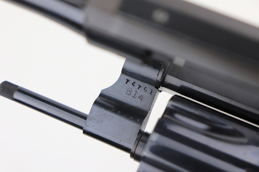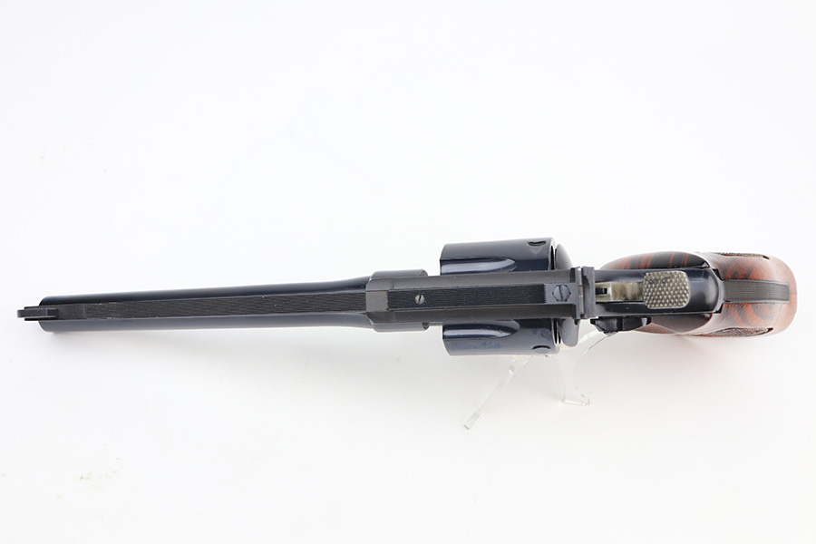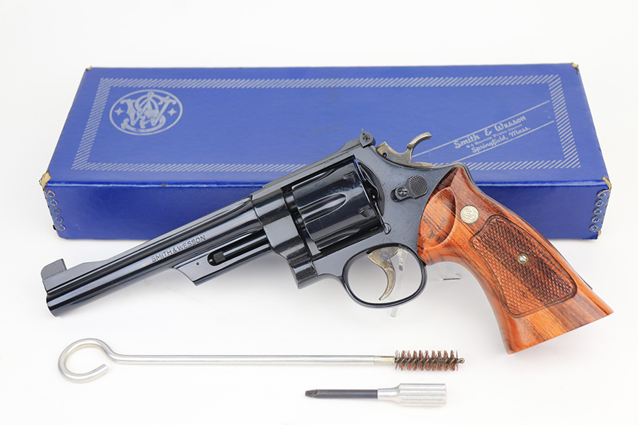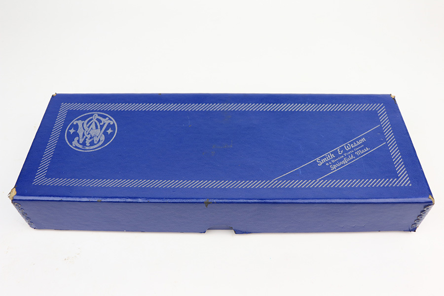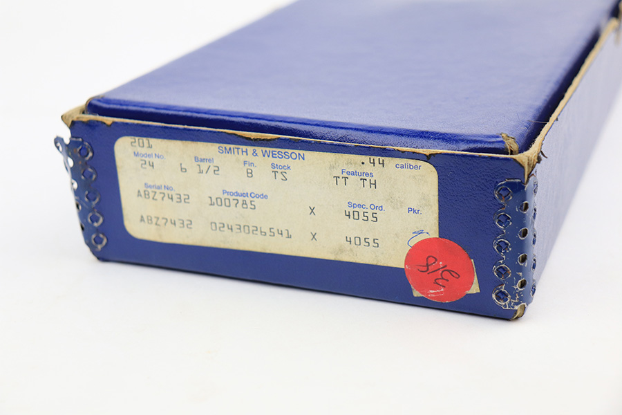 1/18/22 – This is a mint Smith & Wesson Model 24-3 in its original, matching box. The 24-3 was the reintroduction of the Model 24, also known as the .44 Hand Ejector Fourth Model 1950 Target. There were only 7,500 produced, all in 1983 and 1984, and only 4,875 of those were produced with 6.5in barrel. The gun appears to be in unfired condition or very close as there’s hardly even a turn line on the cylinder. Box is in good shape and the label is matching to the gun. FFL required.