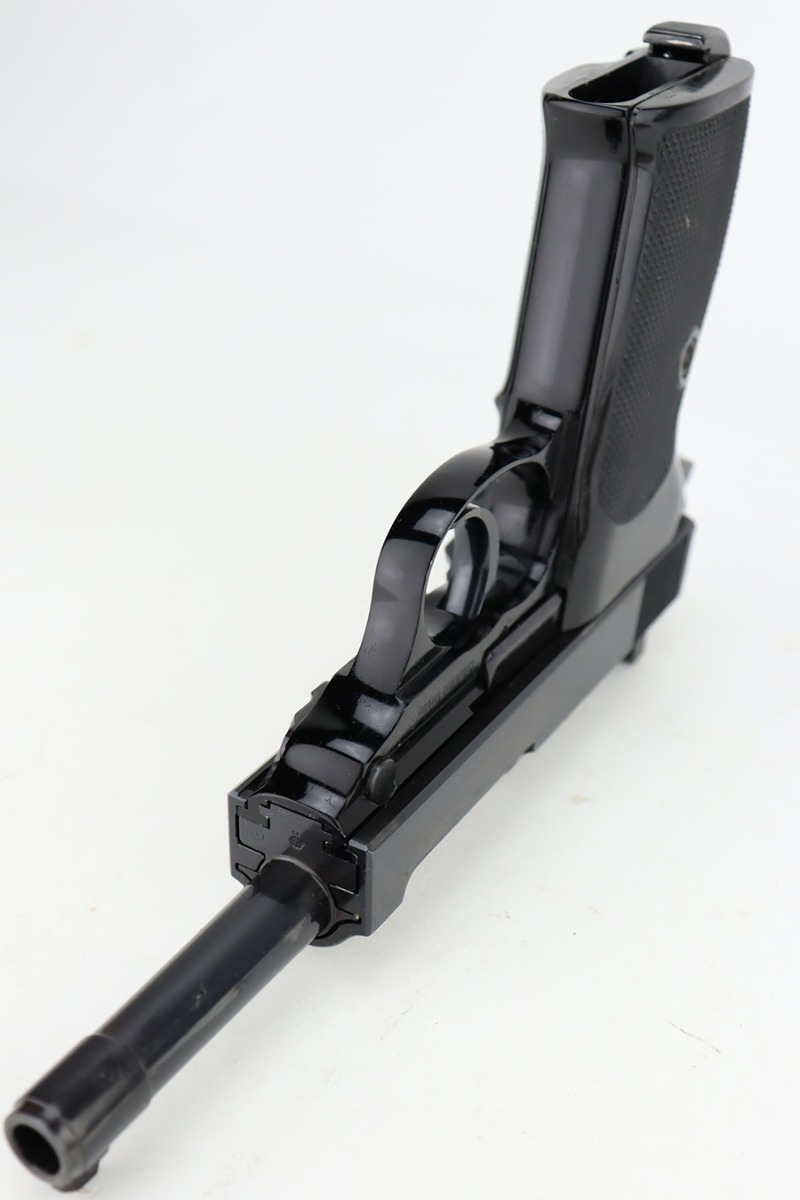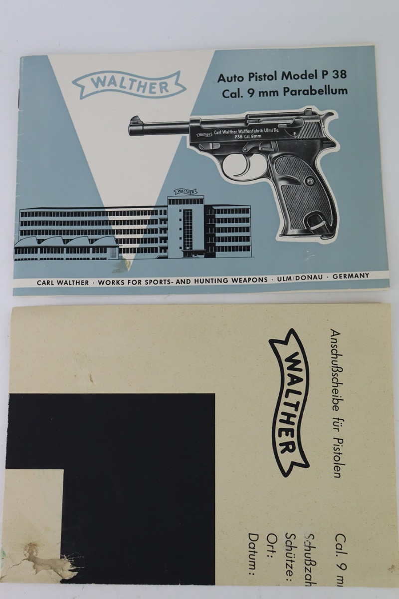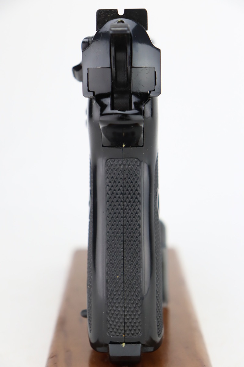1/5/24 – This is a mint example of a scarce commercial Walther P.38 from 1967. It’s all matching and original, including the original matching box and test target. It’s an especially uncommon example as it features a high-polish blued finish, and no import marking. Virtually zero finish loss to mention, and a mint bore. Box also includes the manual, cleaning rod and spare magazine. C&R eligible.
