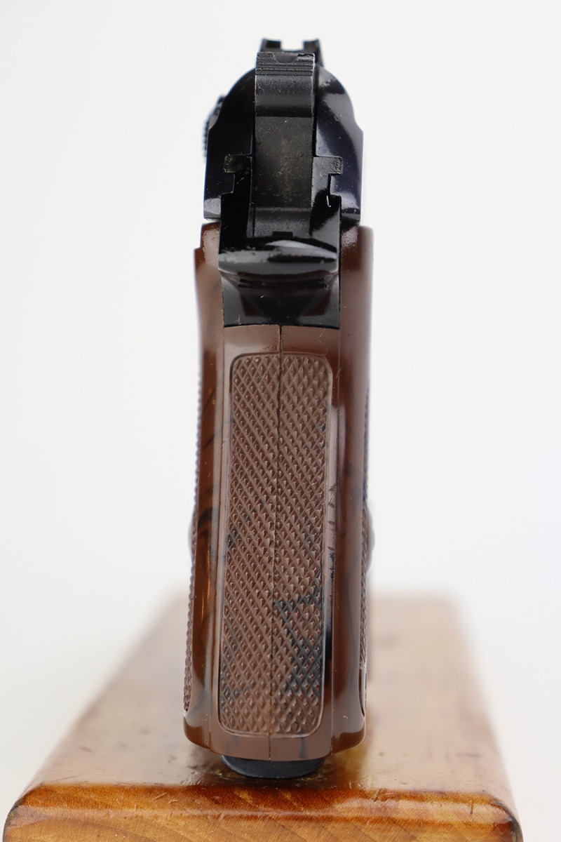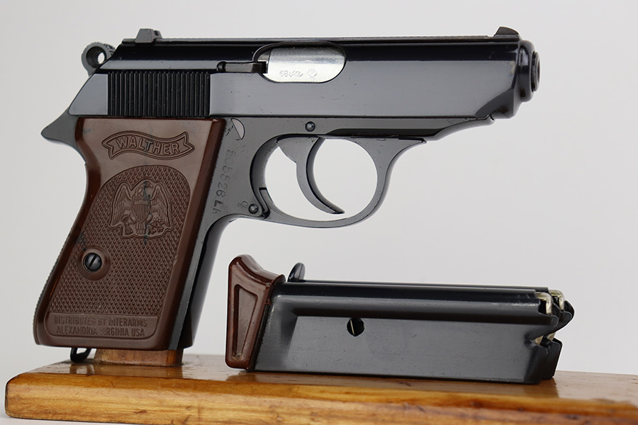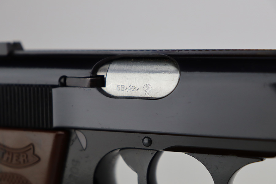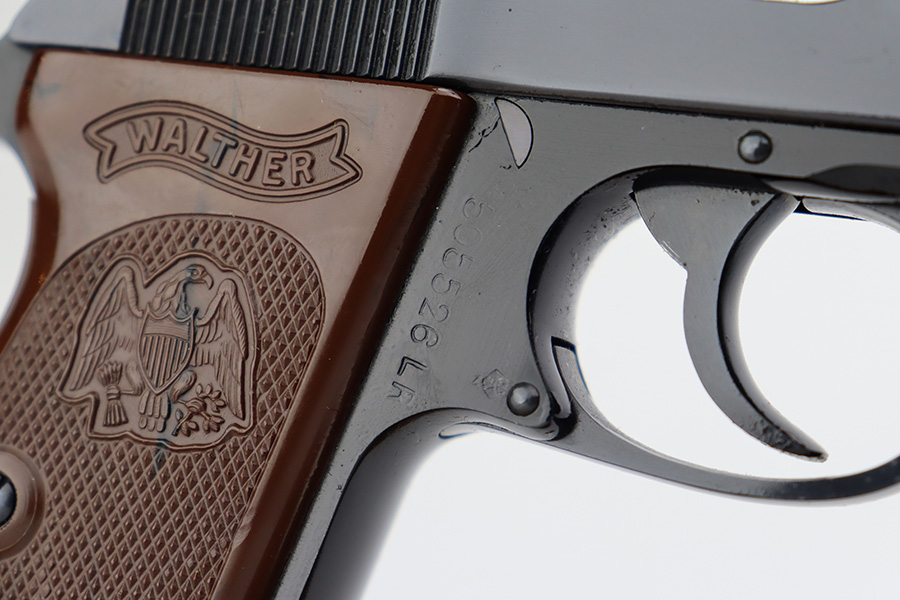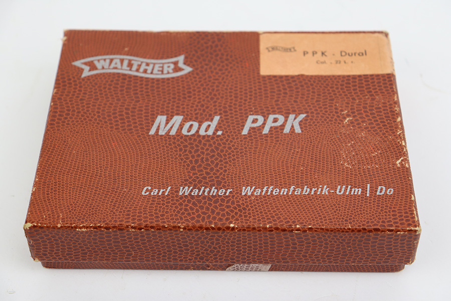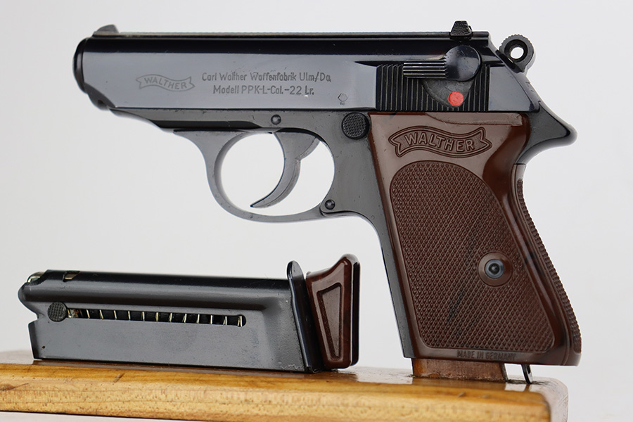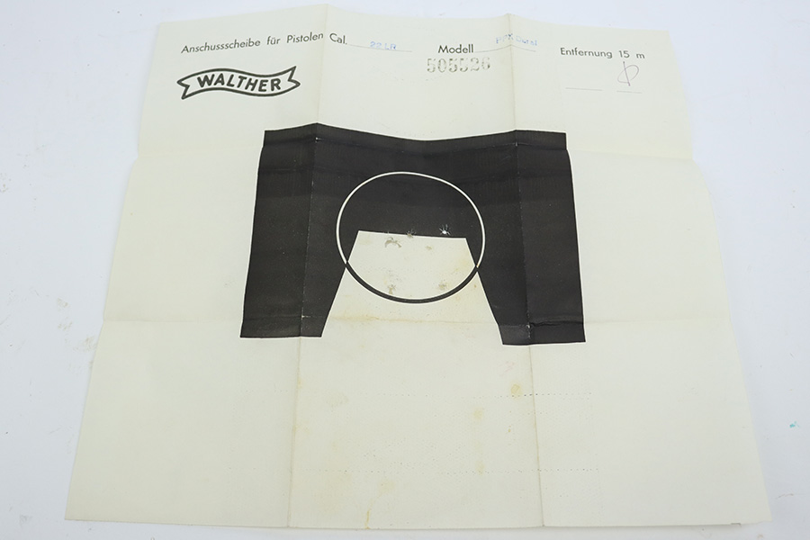 6/22/23 – This is a hard-to-find Walther PPK-L in mint condition, and in the original box. The PPK-L variation is a .22 LR example with aluminum frame. This one appears to be in unfired condition or very close, with no bluing loss and a mint bore. The only minor negative is a couple of small dings on the front strap. Chamber dated to 1968. No import mark but does have the Interarms-marked grip. Comes with one finger extension magazine, and one flat-bottom. Also comes with the original matching test target, the manual, cleaning rod and the matching box.