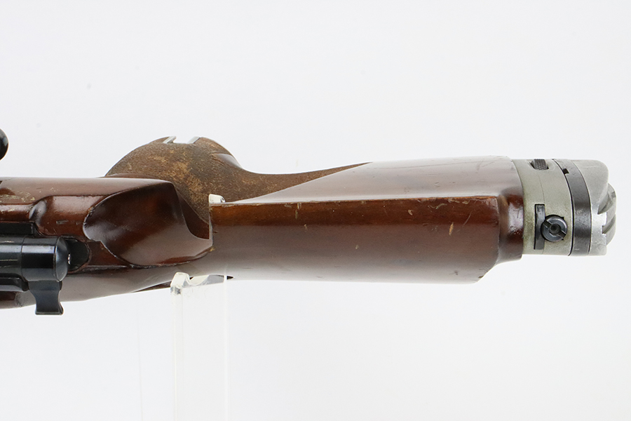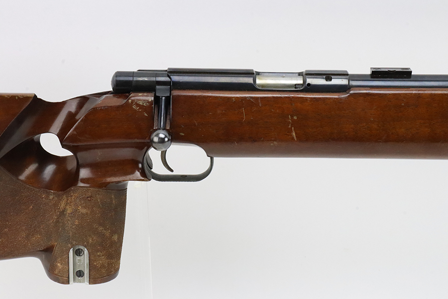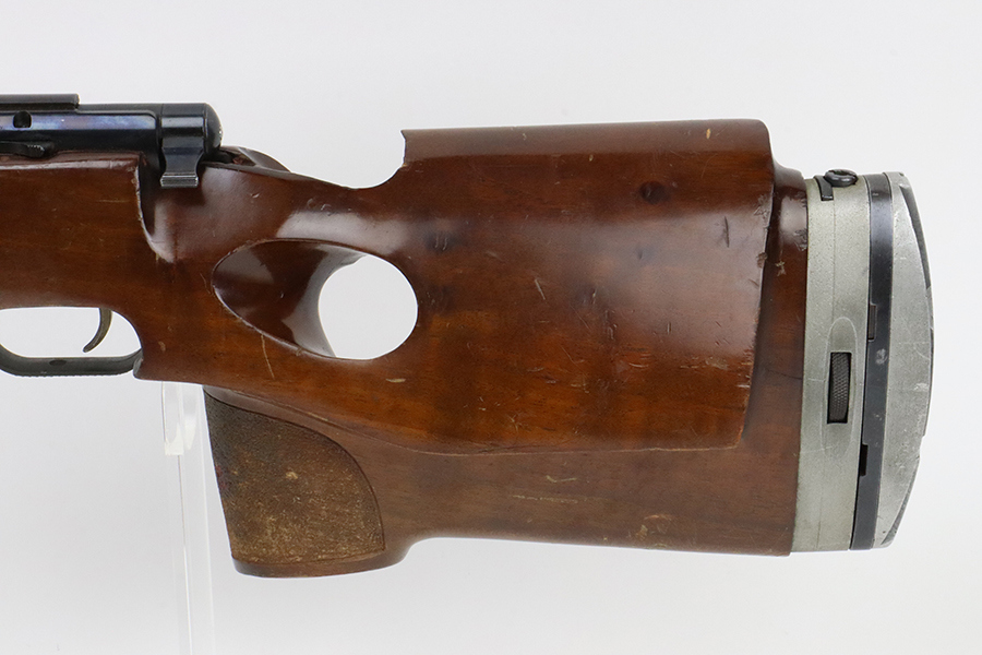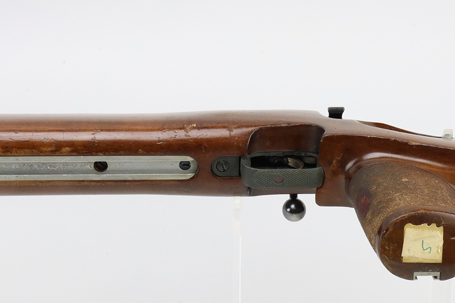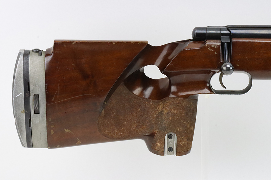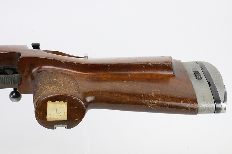 08/21/2024 – For sale is a nice Anschutz Model 1413 Super Match rifle chambered in .22 long rifle. Anschutz is world renown for the quality and accuracy of their match rifles. This rifle is based on their Model 54 action. The metal retains a nice polished bluing with some minor finish loss. The right handed match stock is in great condition with some wear from handling and some pressure dents. The rifle has a very bright bore with great rifling. The diopter sights and the stabilizing hook for the buttplate are absent.