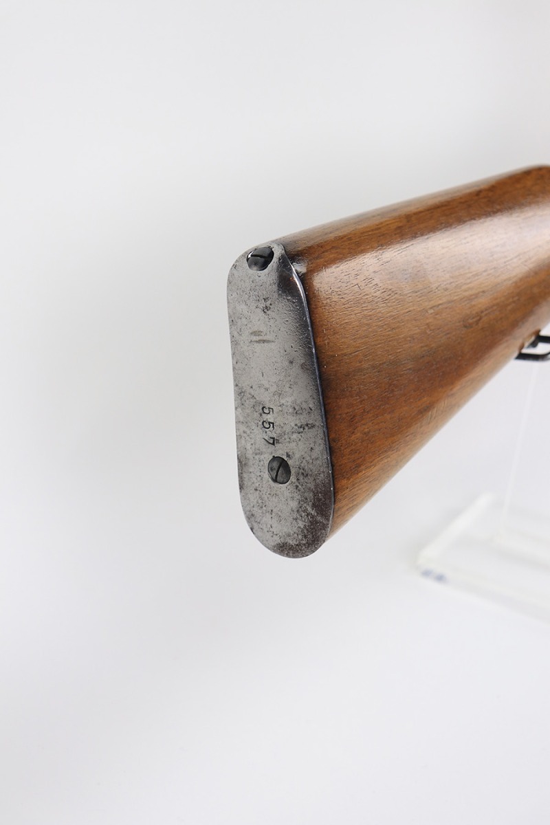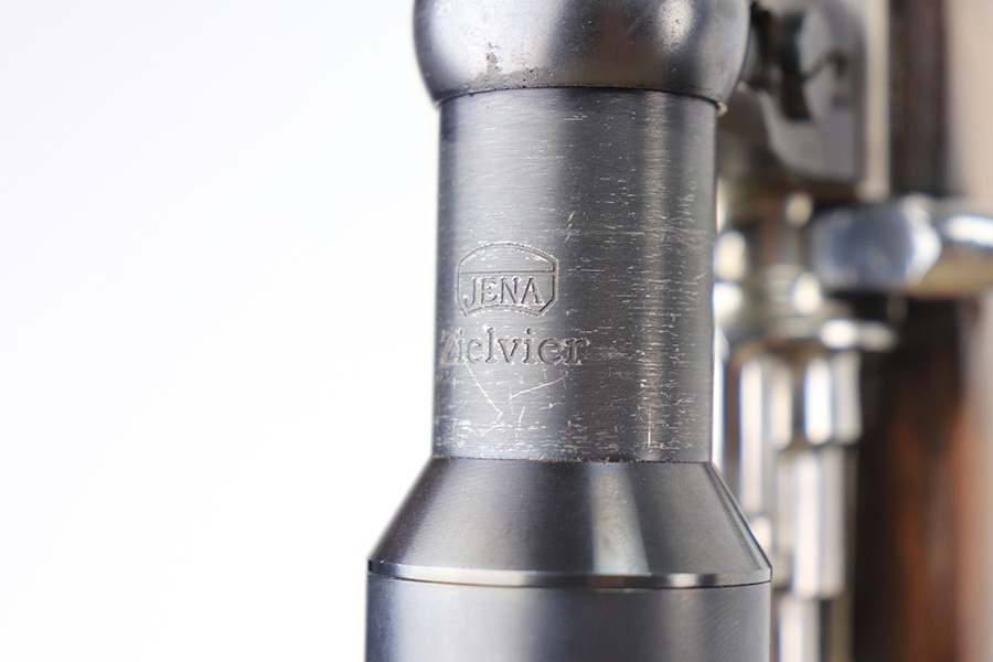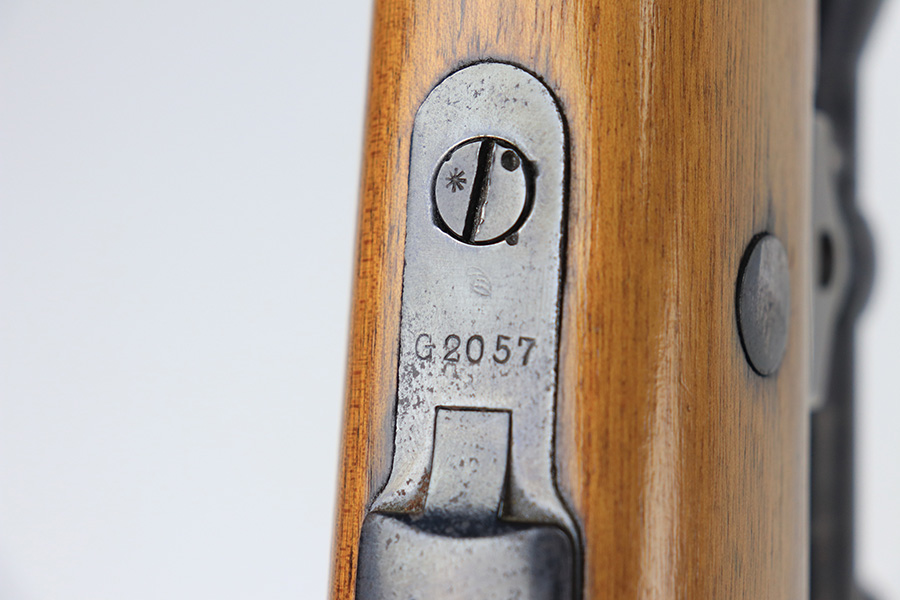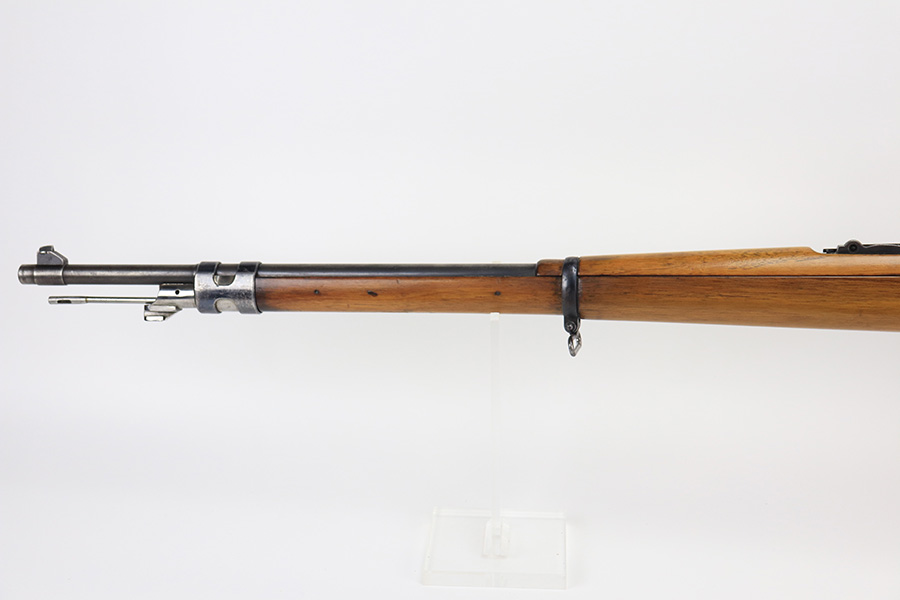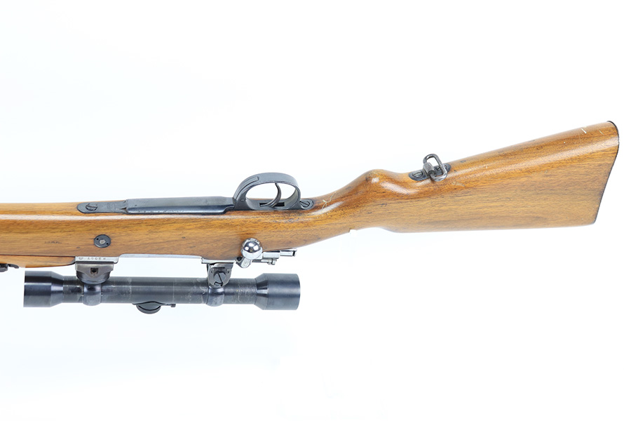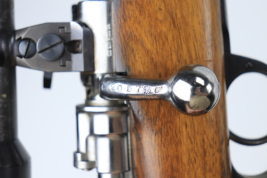 1/17/22 – This is a nice example of an uncommon 1909 Mauser sniper rifle that was part of a contract order by the Argentine military. This is an example of an early Model 1909 Mauser rifle as manufactured under commercial contract by DWM for the country of Argentina, that was produced as a low turret sniper rifle. These early sniper rifles were all supplied with Zeiss scopes using low turret mounts, but this one has an after-market Jena scope with clear optics. This is the first example we’ve sold but we believe the scope mounts are original, but the rings were added when the scope was. Matching numbers on receiver, trigger group, bolt. Import mark on right side of receiver. Thinning of the bluing on the barrel and front band. Bore has strong rifling but some frost throughout. Excellent stock with just a few minor dings.