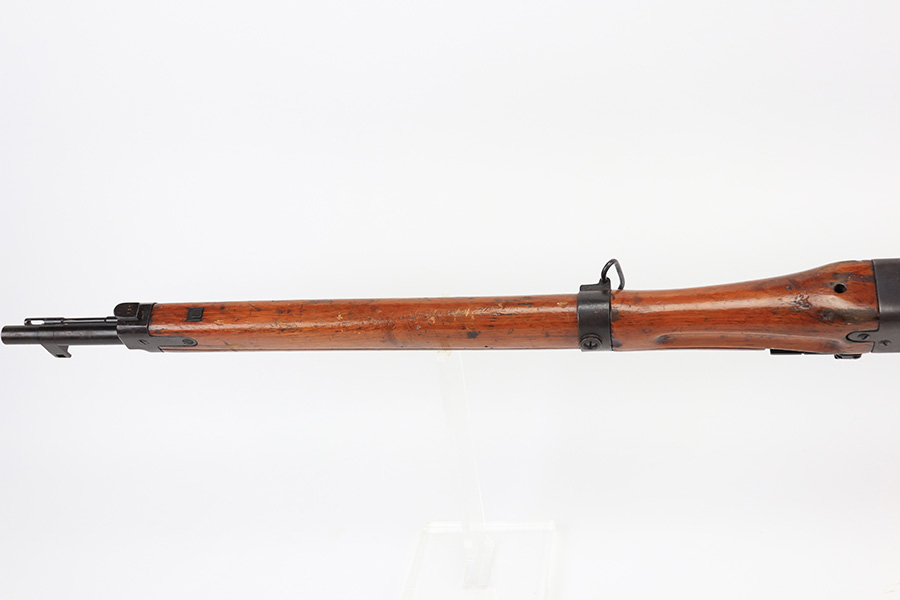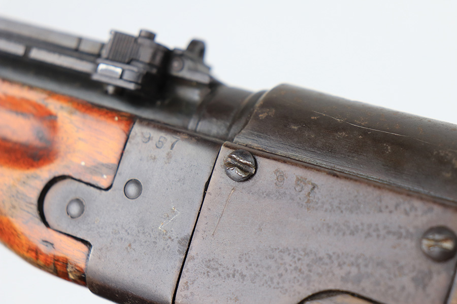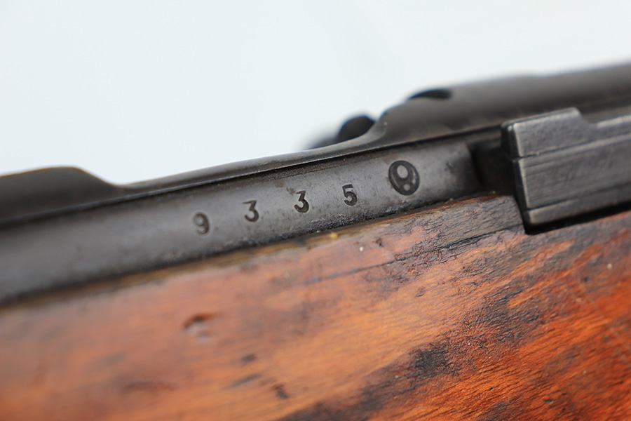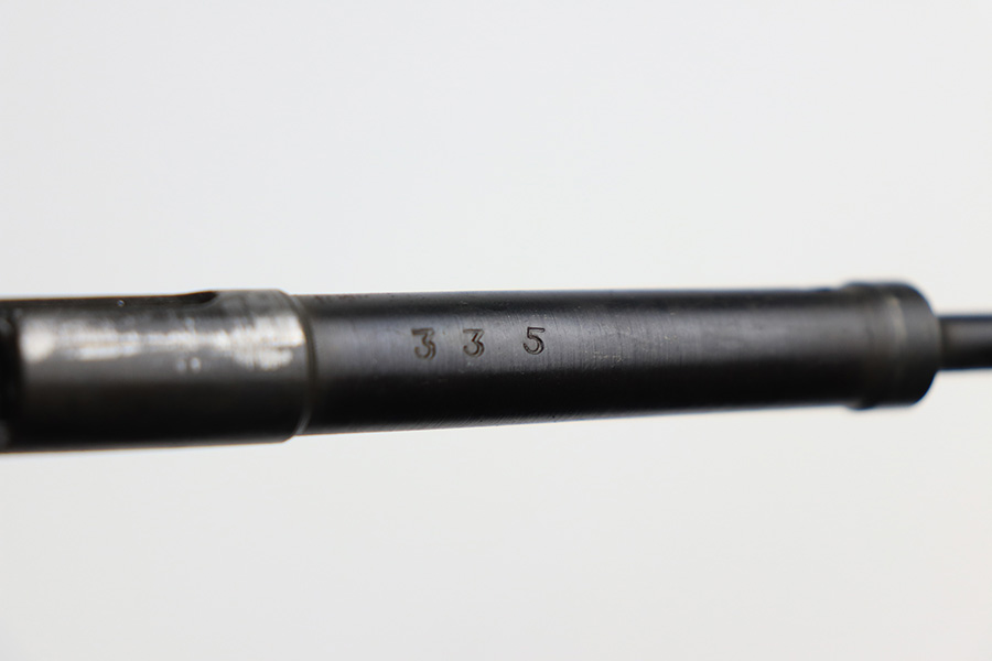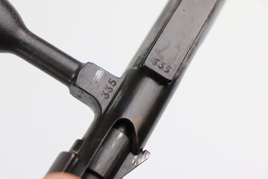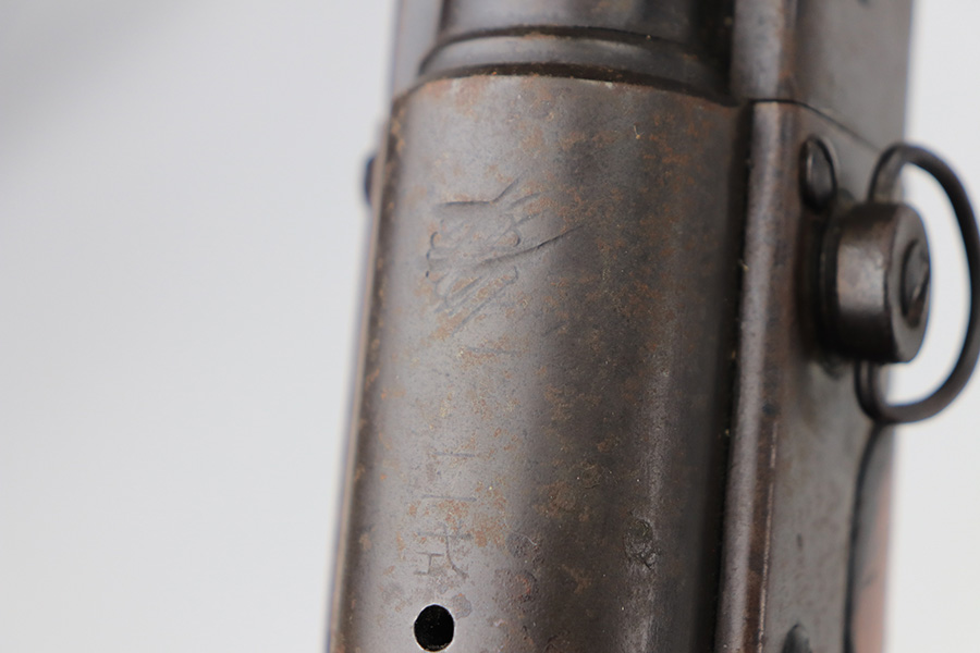 2/24/22 – This is an all matching and original Arisaka Type 2 Paratrooper Carbine from WW2. It’s all correct, but the mum was ground following the war. These were exclusively made at Nagoya Arsenal, with only ~19,000 produced. Receiver shows patina and visible oxidation throughout. Excellent chrome-lined bore. The takedown mechanism is also all matching, and correctly not matching to the serial of the receiver as these were numbered separately. Receiver also features Kanji denoting it is a “Type II” rifle. Original cleaning rod and aircraft sights are present. Stock has an interesting “tiger stripe” pattern on the left side that appears deliberately applied as the texture is rougher on the stripes. Right side of stock has an area with a surface crack/splintering.