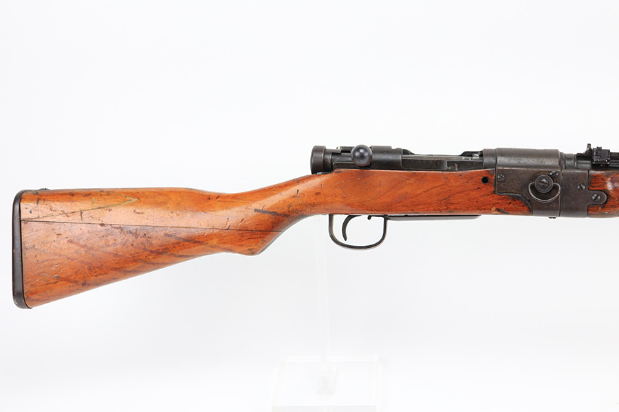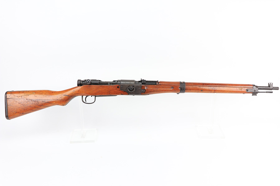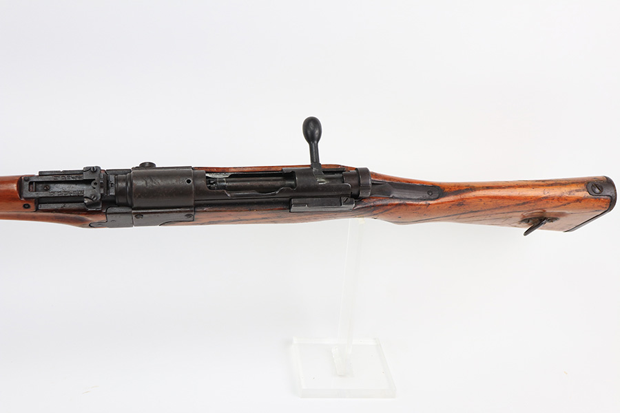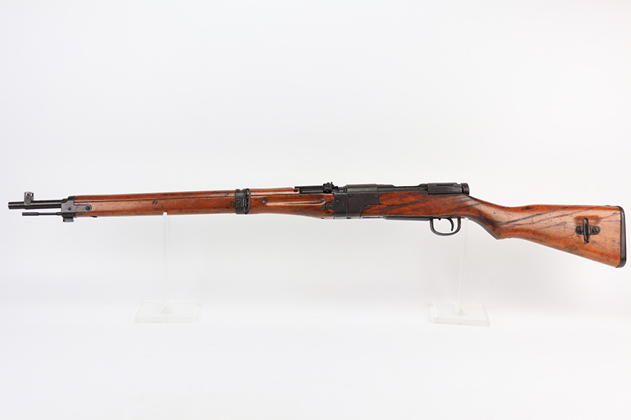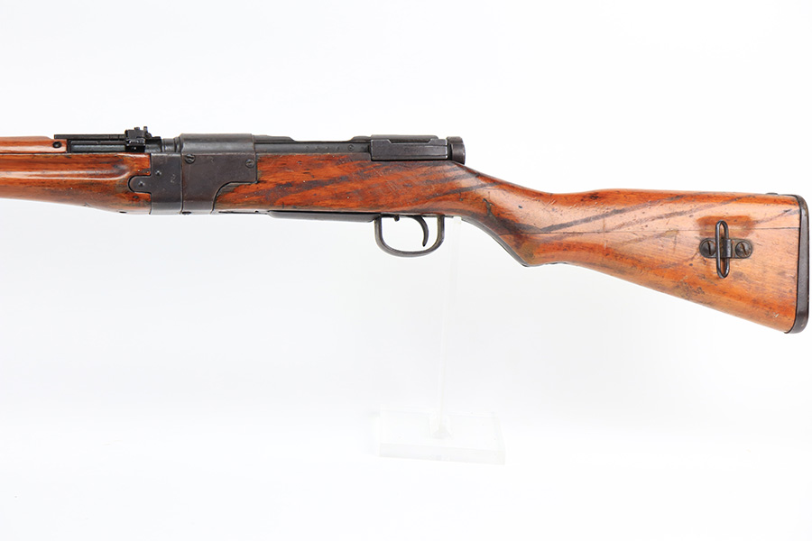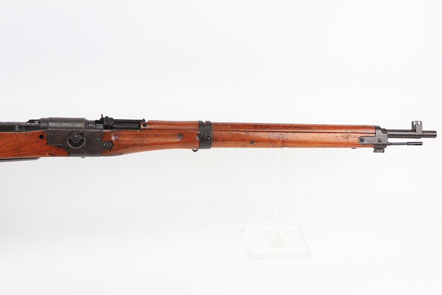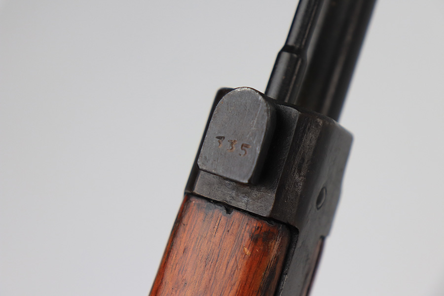 2/24/22 – This is an all matching and original Arisaka Type 2 Paratrooper Carbine from WW2. It’s all correct, but the mum was ground following the war. These were exclusively made at Nagoya Arsenal, with only ~19,000 produced. Receiver shows patina and visible oxidation throughout. Excellent chrome-lined bore. The takedown mechanism is also all matching, and correctly not matching to the serial of the receiver as these were numbered separately. Receiver also features Kanji denoting it is a “Type II” rifle. Original cleaning rod and aircraft sights are present. Stock has an interesting “tiger stripe” pattern on the left side that appears deliberately applied as the texture is rougher on the stripes. Right side of stock has an area with a surface crack/splintering.