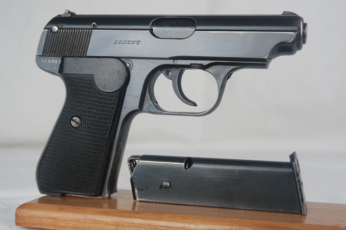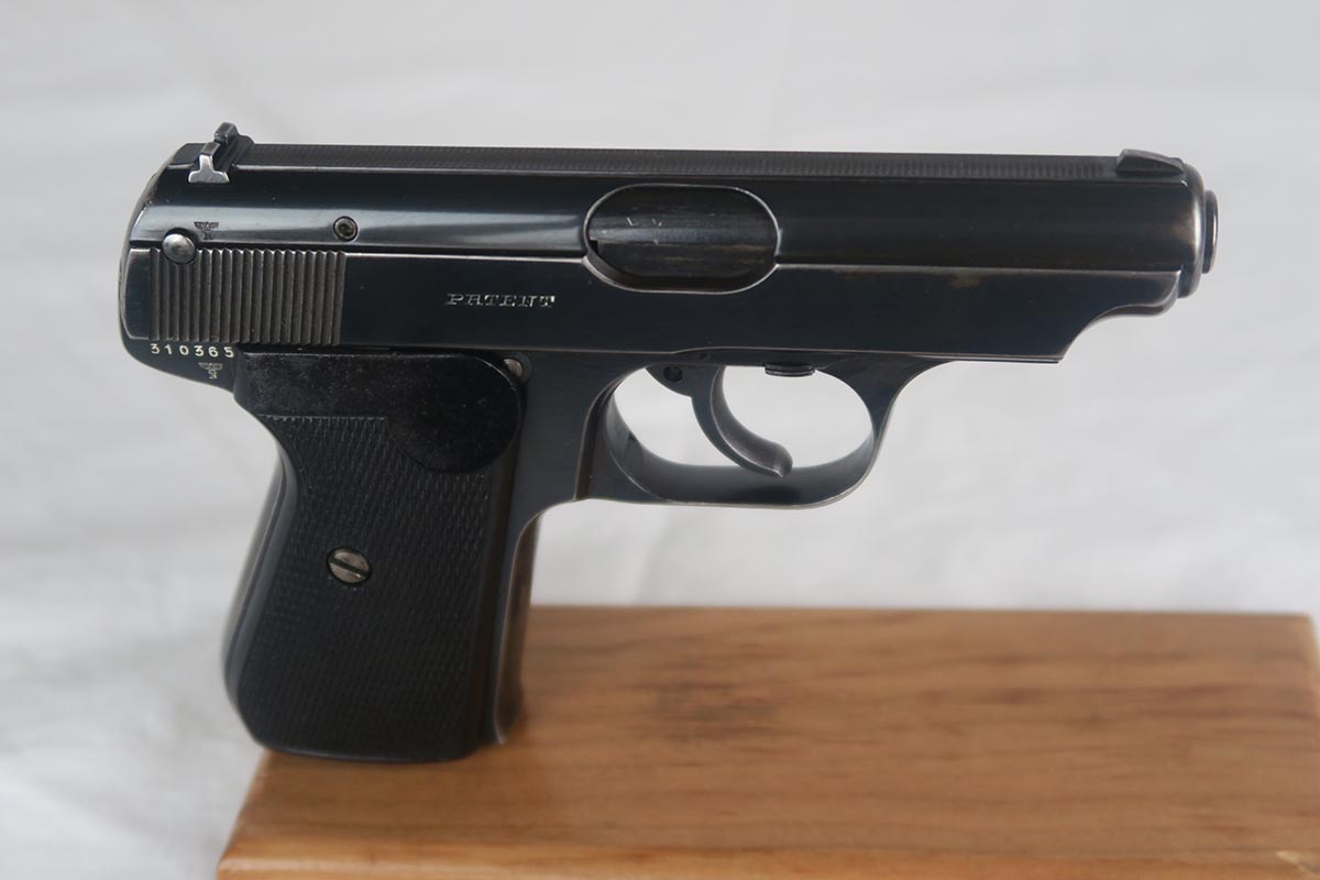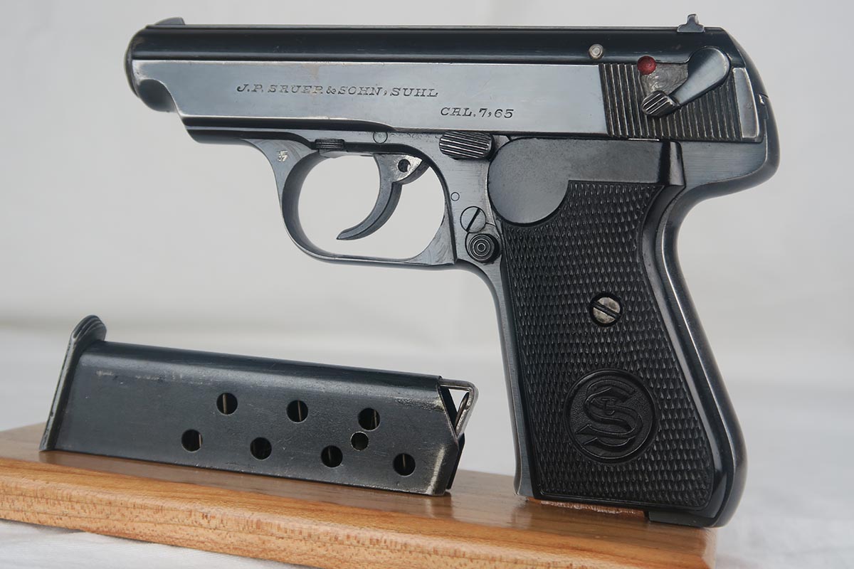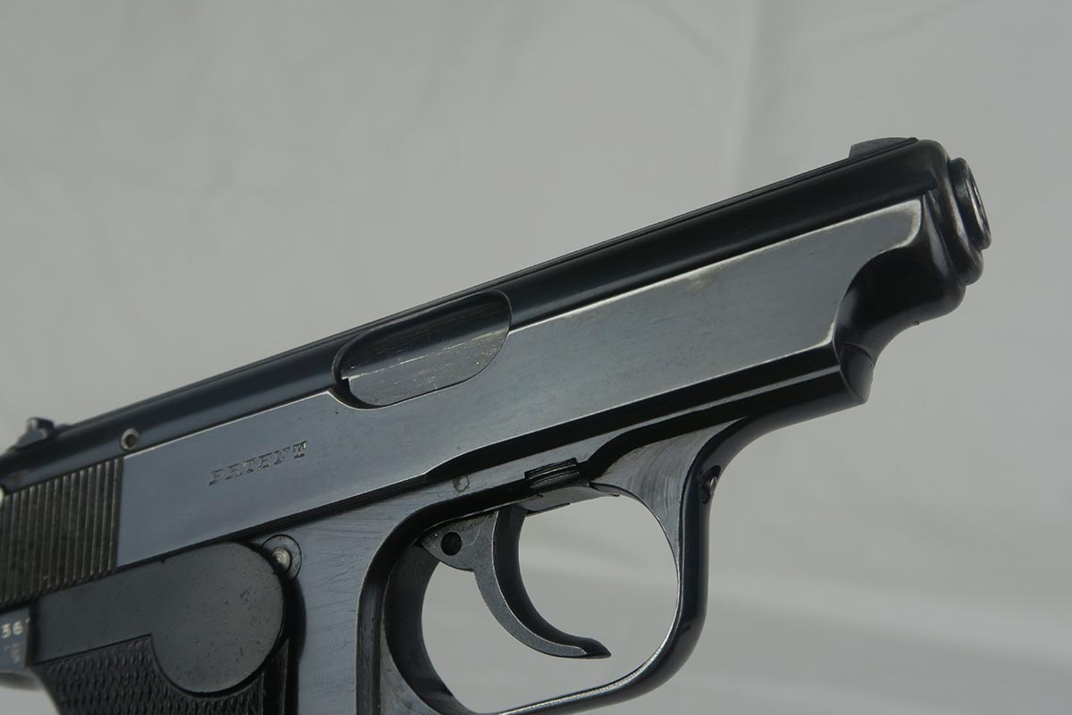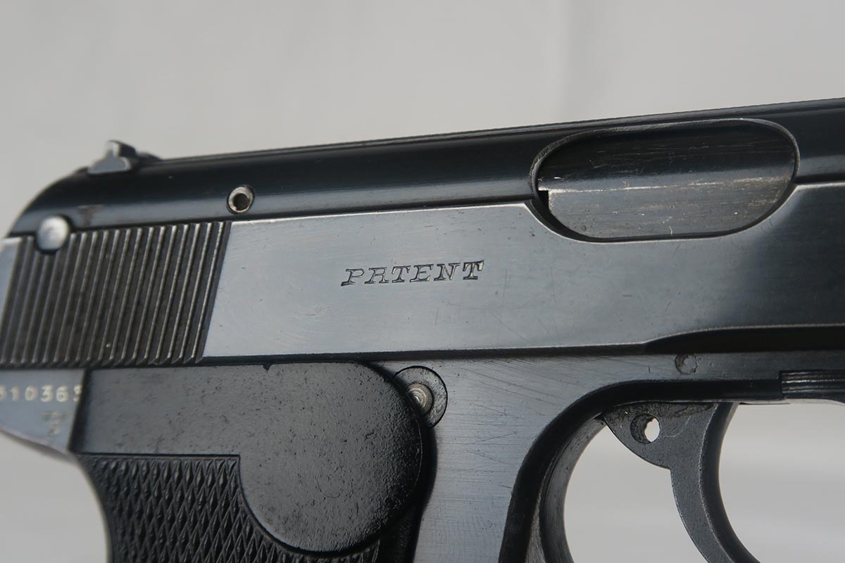 7/31/17 – This is a scarce variation 2 Sauer 38h from WW2.  It was issued to the army and has a high-polish blue.  There were only ~9,000 of this variation procured, compared to ~40,000 with duller military finish.  This one is all original and correct with about 90-92% bluing.  Nearly all of the finish loss can be found on the straps.  E/37 proofed on the trigger guard.  Excellent grips.  Minty bore.