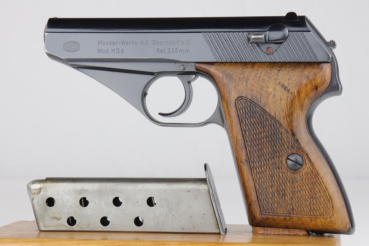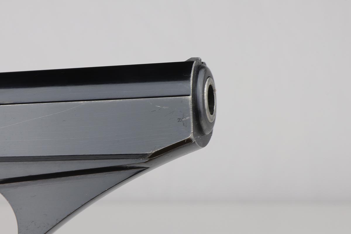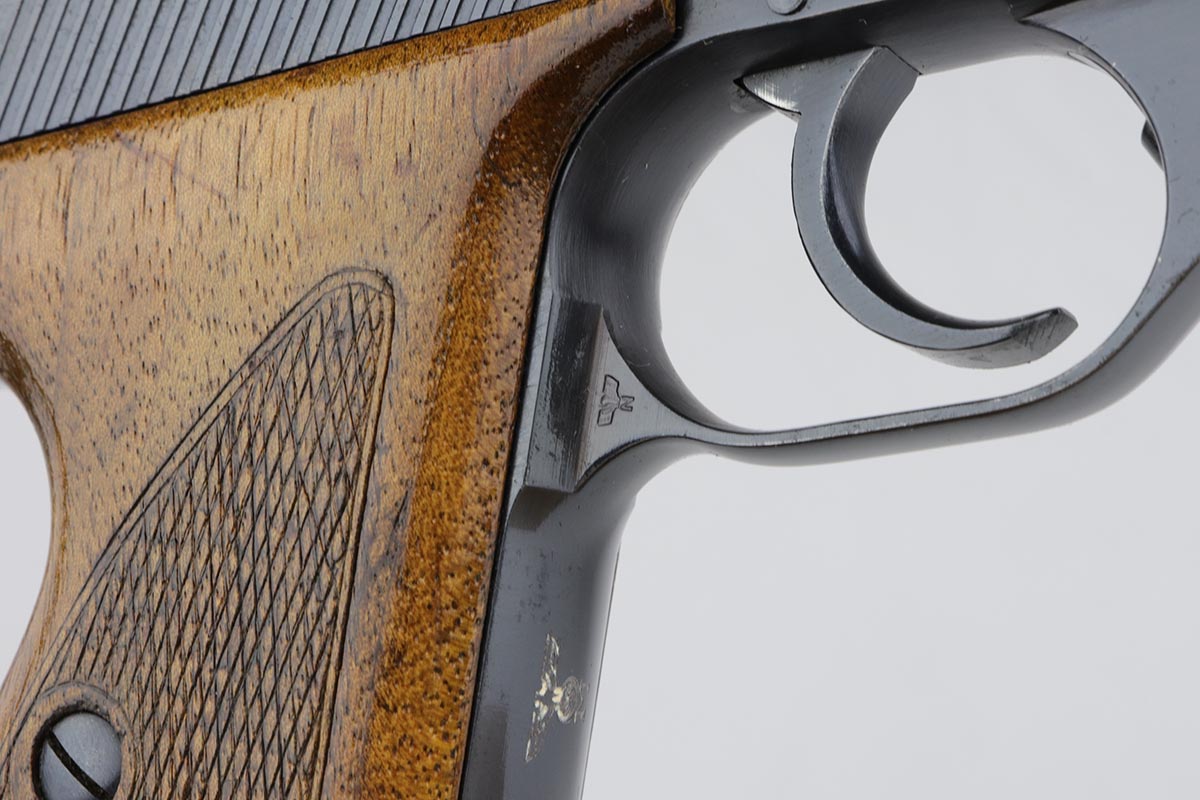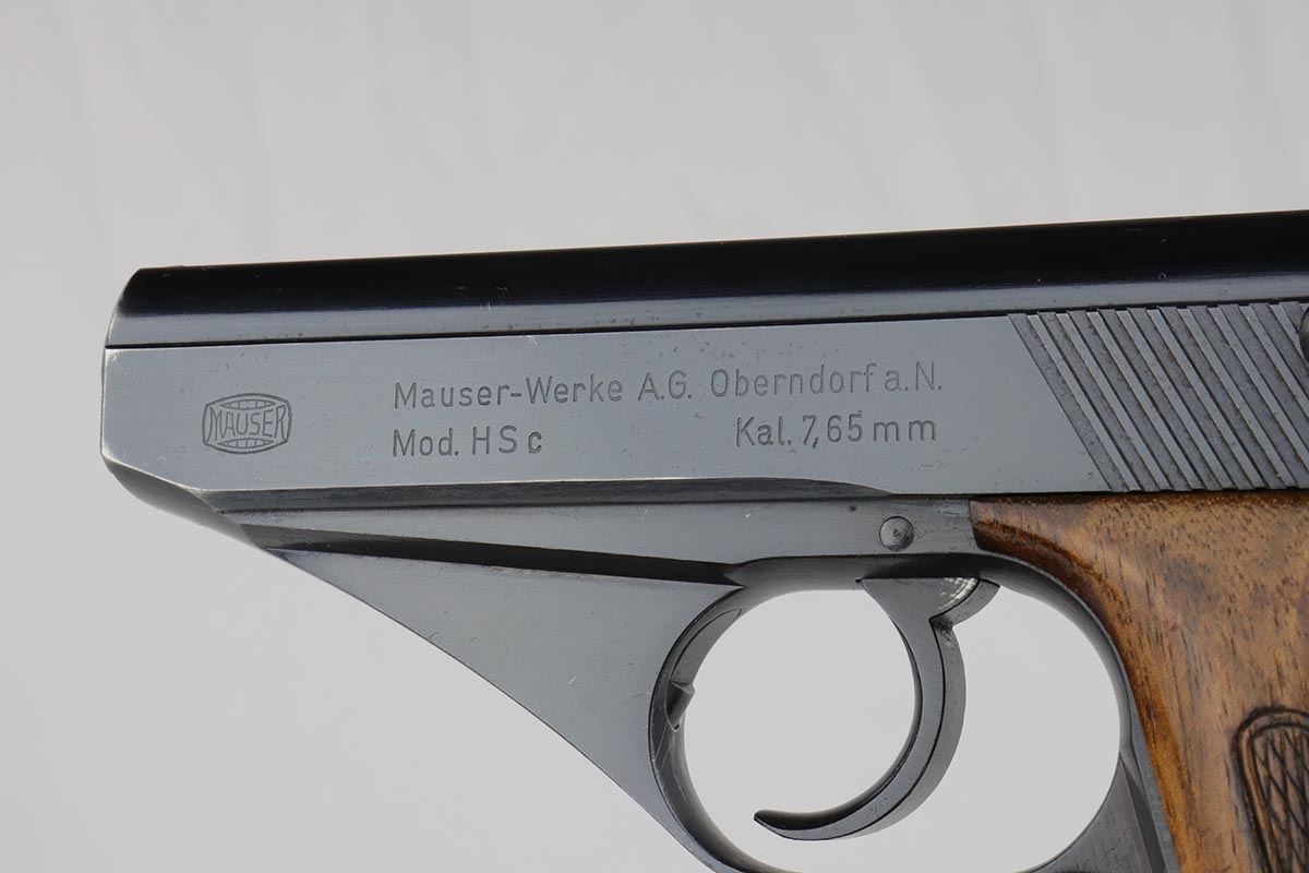 6/5/19 – This is a beautiful example of a scarce Mauser HSc. It is a variation 2 Kriegsmarine pistol, one of only about 7,000 produced according to Axis Pistols. It is all original and correct with 98-99% high-polish blue remaining. There are tiny spots of edge wear on the slide and back strap. Terrific bore, grips and magazine. Navy eagle clear and sharp on the front strap.