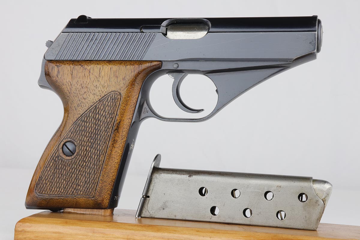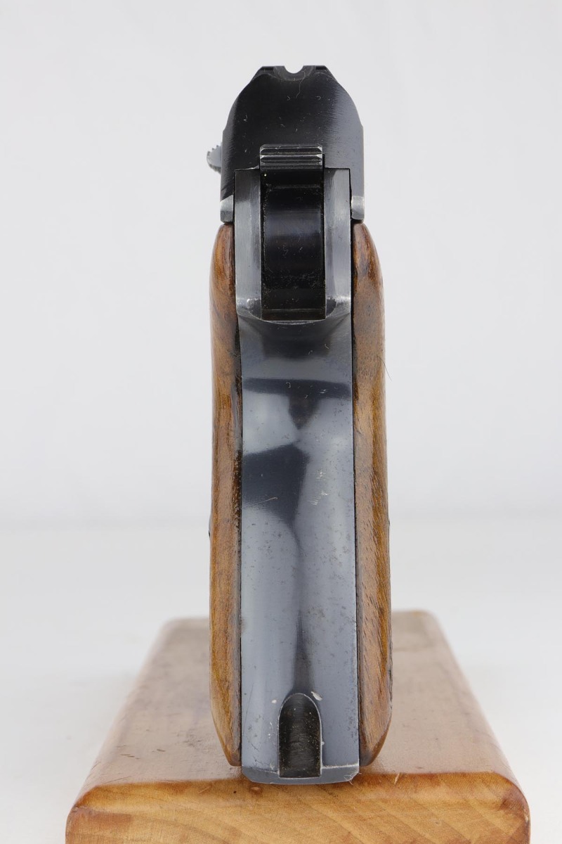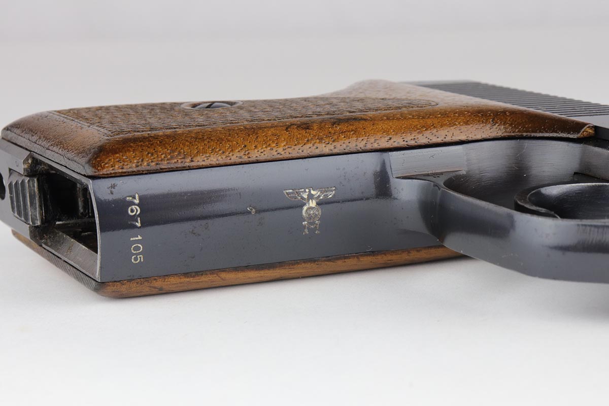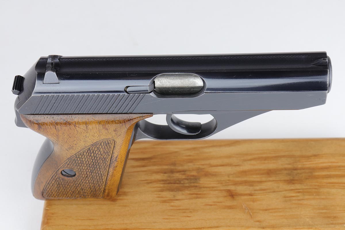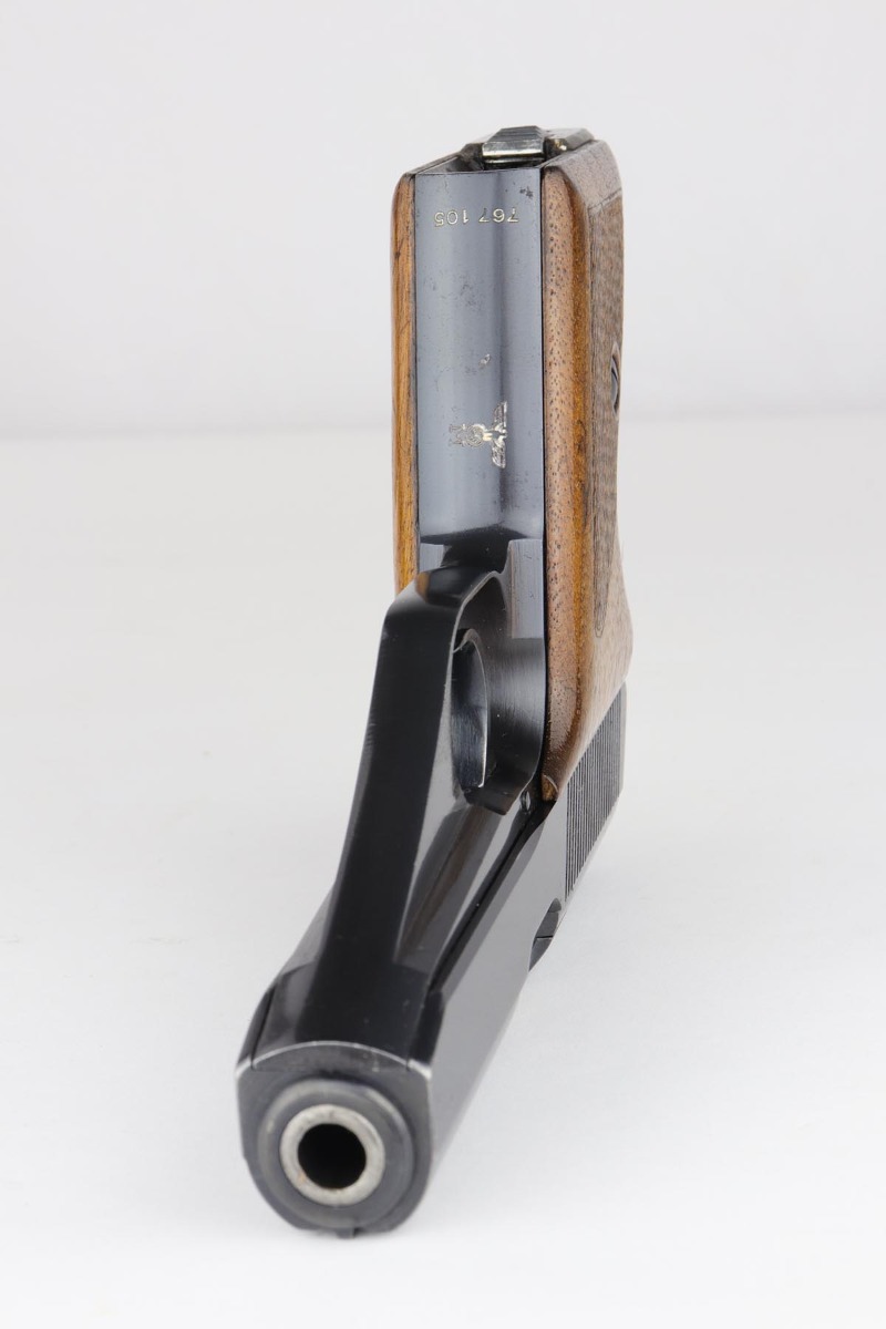 6/5/19 – This is a beautiful example of a scarce Mauser HSc. It is a variation 2 Kriegsmarine pistol, one of only about 7,000 produced according to Axis Pistols. It is all original and correct with 98-99% high-polish blue remaining. There are tiny spots of edge wear on the slide and back strap. Terrific bore, grips and magazine. Navy eagle clear and sharp on the front strap.