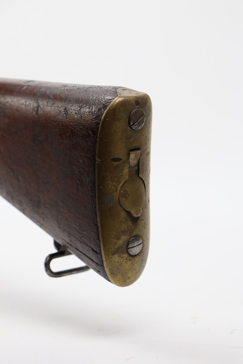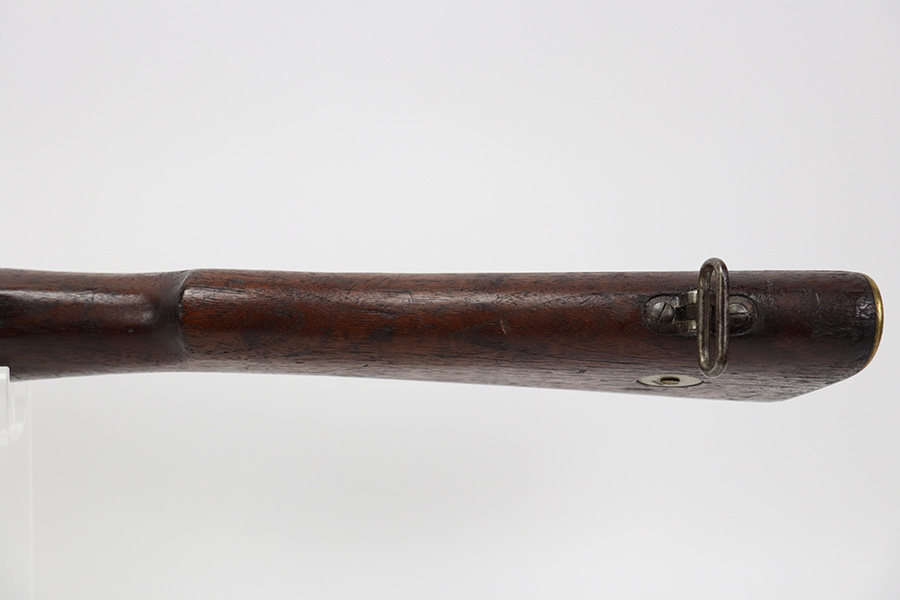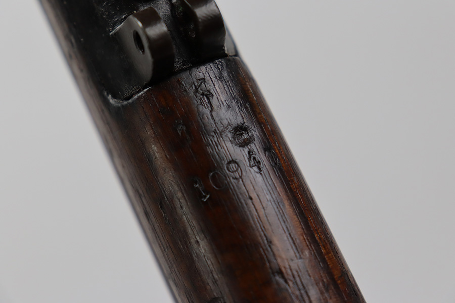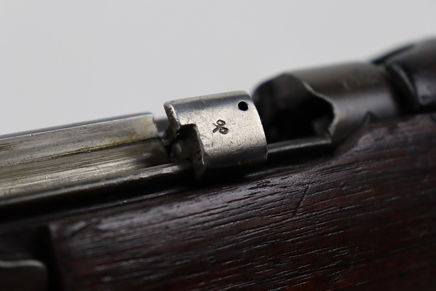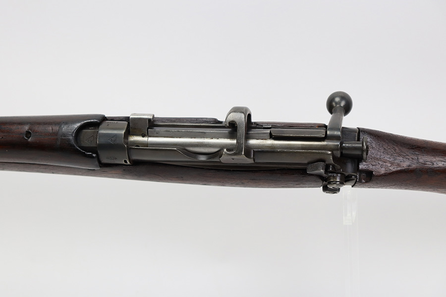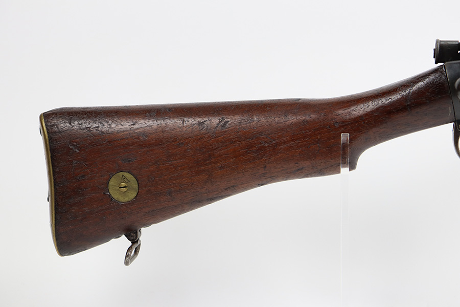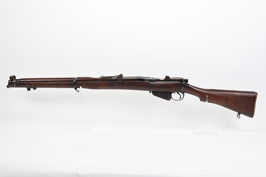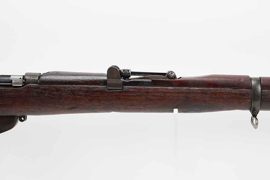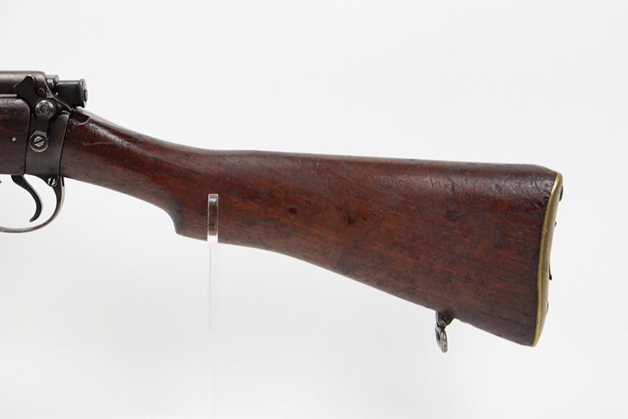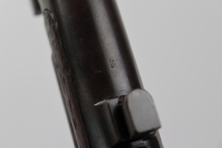 7/18/23 – This is a scarce BSA SHTLE III that was made in 1916 and then later arsenal rebuilt for WWII. Matching numbers on receiver, bayo lug, bolt and stock. Receiver is dated to 1918, and the top of the receiver shows the Iarqi proof, as does the stock disc. The rifle was refinished during the arsenal rebuild and shows patina on the metal parts. Bore has strong rifling but frost throughout. Stock is in good condition with a few dings and nicks but no structural issues.