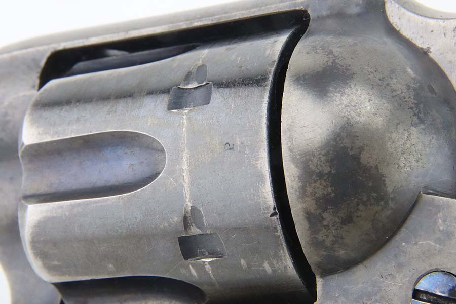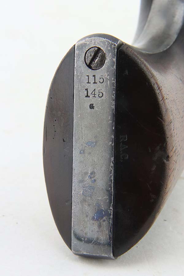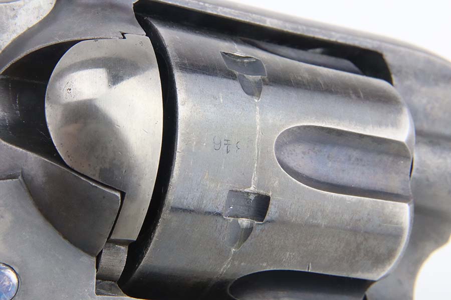 3/28/24 – This is a nice, all original Colt US single action artillery model. The action is tight as a drum and works perfectly on all 4 clicks. The frame is “US” property marked with various mixed military numbers. RAC inspection stamps. Military cartouche and 1903 date on the right grip. Overall, it is in nice condition for its age, but there is noticeable finish loss throughout. Virtually all of the case-hardening on the frame is worn. Very nice wood grips. Excellent bore.