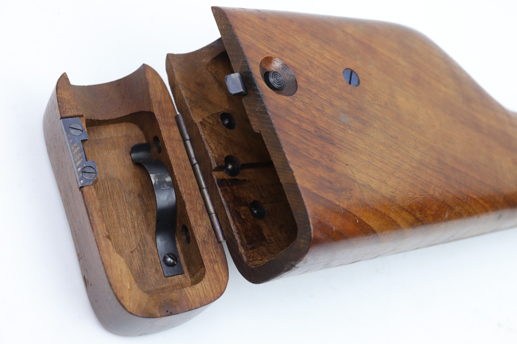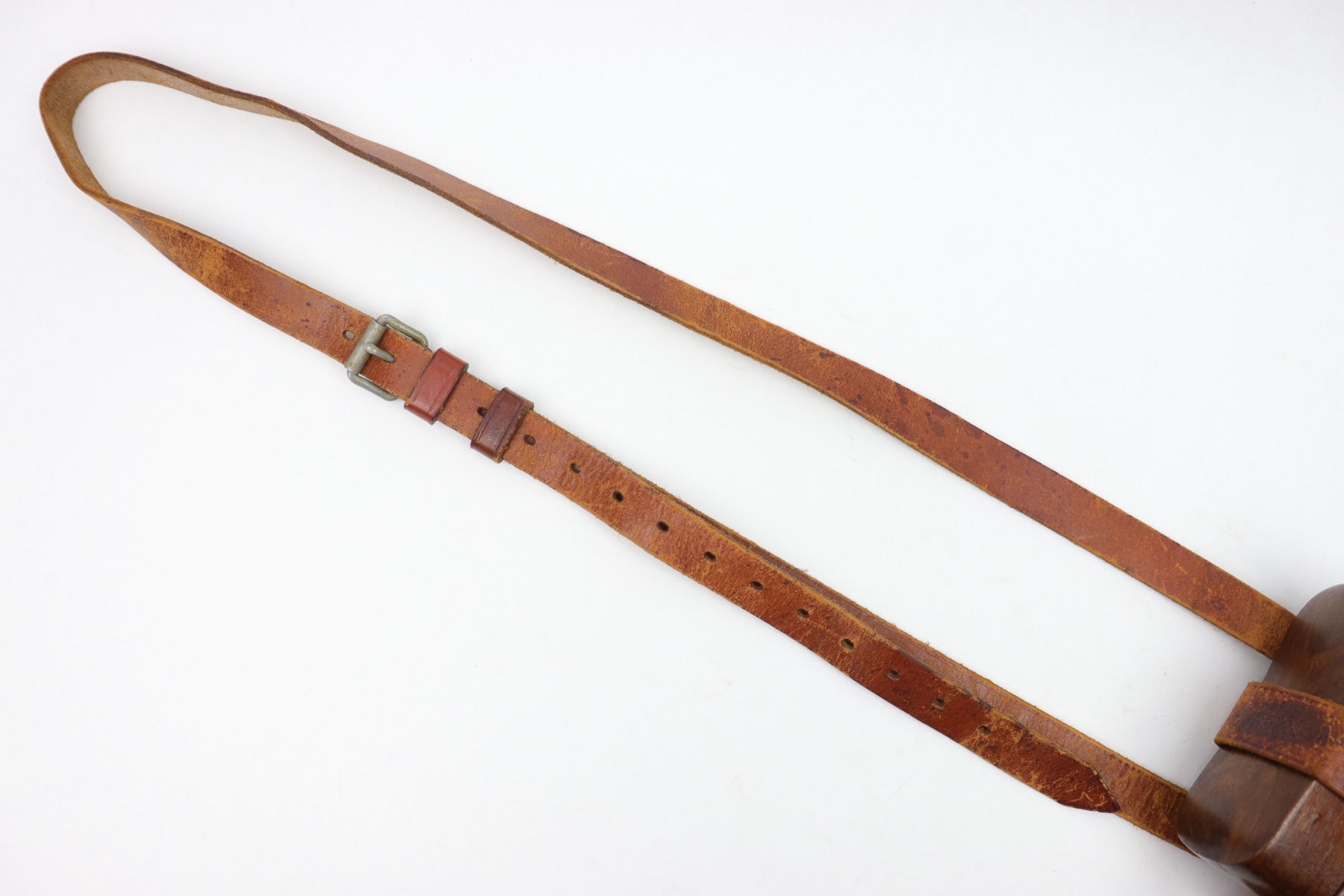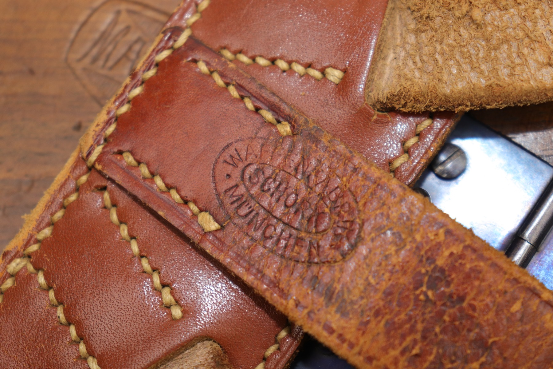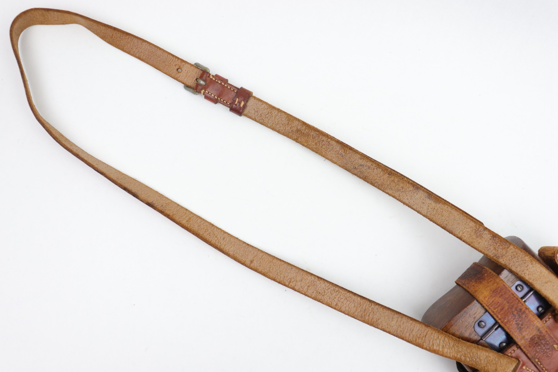1/13/23 – This is an excellent example of a hard-to-find and original commercial Mauser C96 broomhandle stock with original holster. The stock is properly marked with the commercial Mauser banner and has no major defects. There is a very slight surface crack, about an inch long, on the side where the pistol grip would stick out but it doesn’t go through. The harness is also in good condition with minor cracking in some areas. It is marked with the retailer (WAFFENFABRIK SCHORK MUNCHEN) and is fully intact.