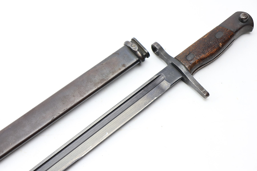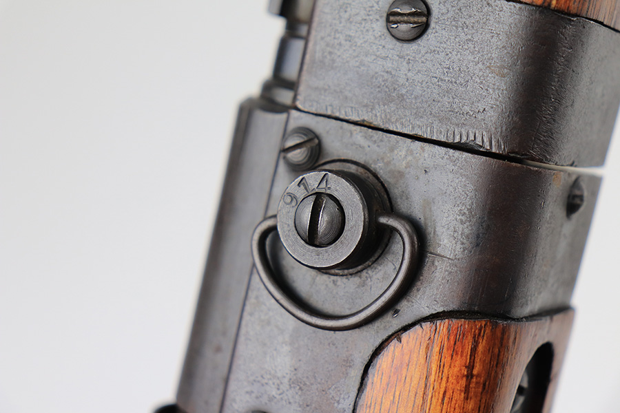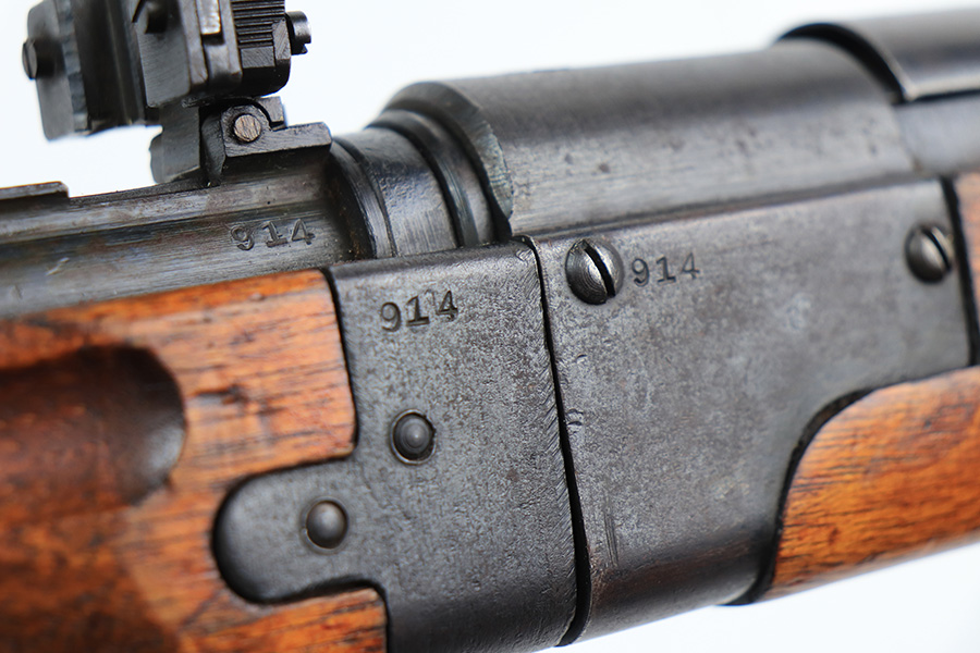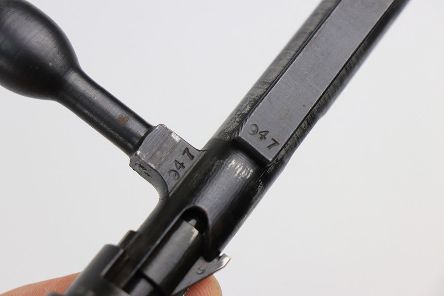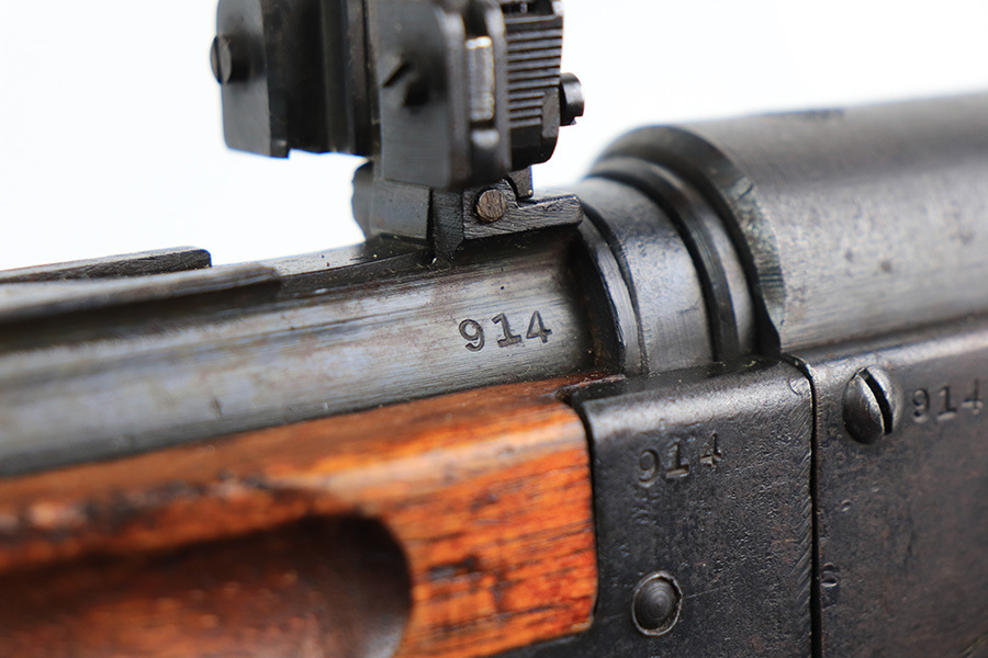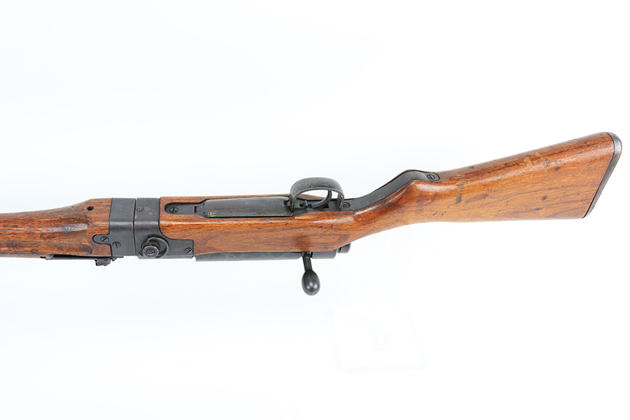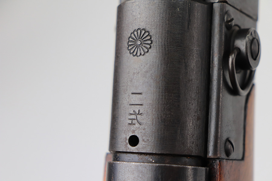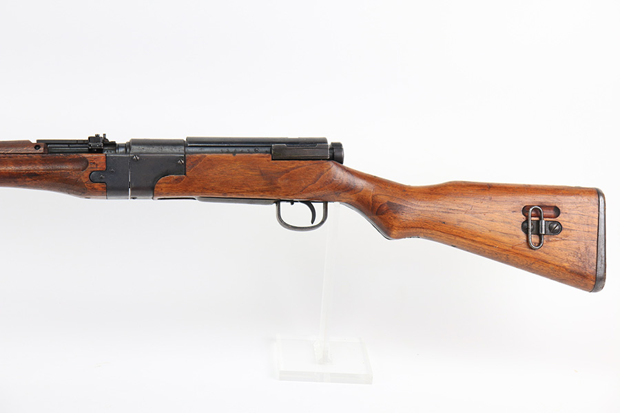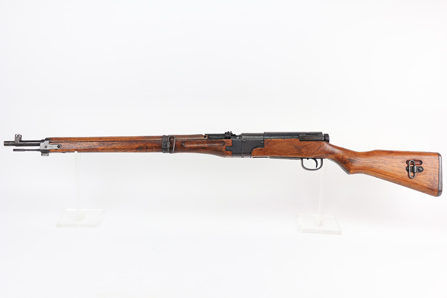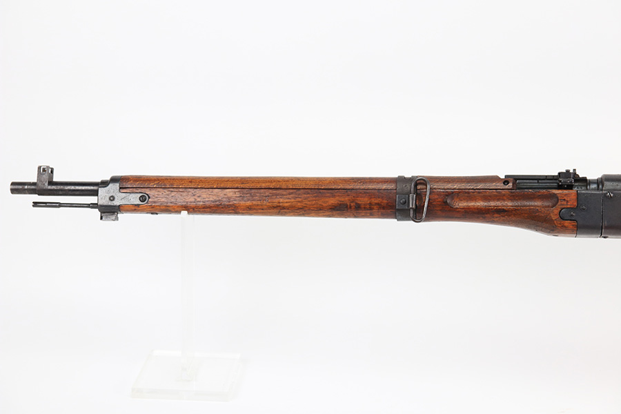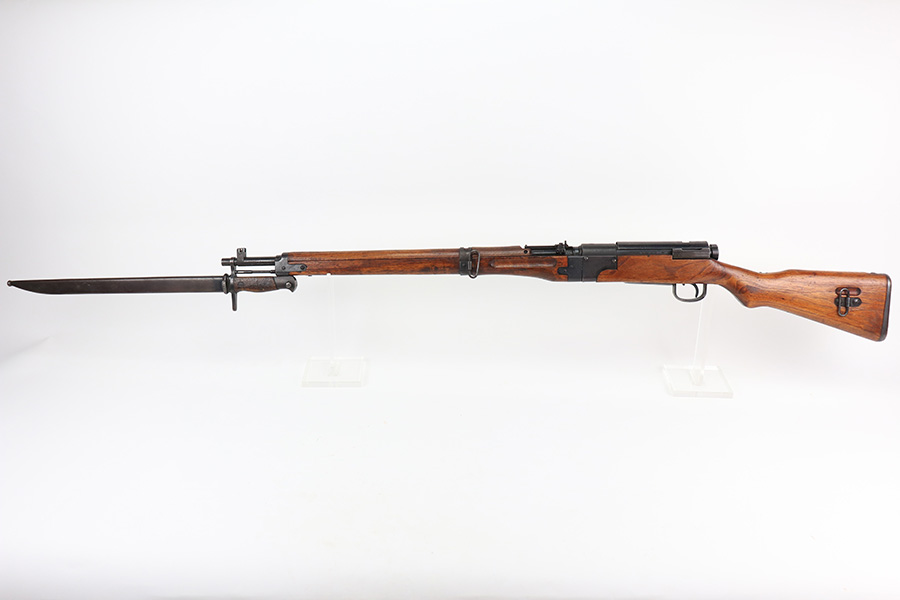 2/18/22 – This is the most complete example we’ve offered of the scarce and highly desirable Japanese Paratrooper rifle from World War II. It’s all matching example, down to the dust cover which you almost never see. It also has the full mum intact, and comes with a period original bayonet and scabbed. These were exclusively made at Nagoya Arsenal, the rifle is all matching and original and in excellent condition. The chrome-lined bore is shiny with strong rifling but minor frost and freckling in some areas. The takedown mechanism is also all matching, and correctly not matching to the serial of the receiver as these were numbered separately. Receiver also features Kanji denoting it is a “Type II” rifle. Original cleaning rod and aircraft sights are present. The inside of the action and magazine assembly are excellent, indicating it was shot minimally. The stock shows minor dings and nicks but no cracks or major issues with the wood. There were only an estimated 19,000 of these produced, but finding them in such excellent, original condition is very difficult.