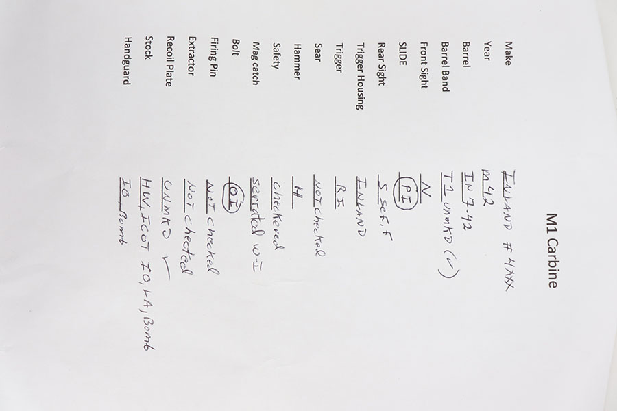 10/14/20 – This is a very early and original Inland M1 Carbine with four digit serial, one of the first 5,000 ever made. A full parts guide is included in the photos but this one correctly has the high wood stock with no cartouche on the right side, and a flaming bomb and LA proof in the sling well. Original finish is thin throughout on this one. Barrel date of July, 1942. Excellent stock with just standard dings and nicks. Excellent bore, too.