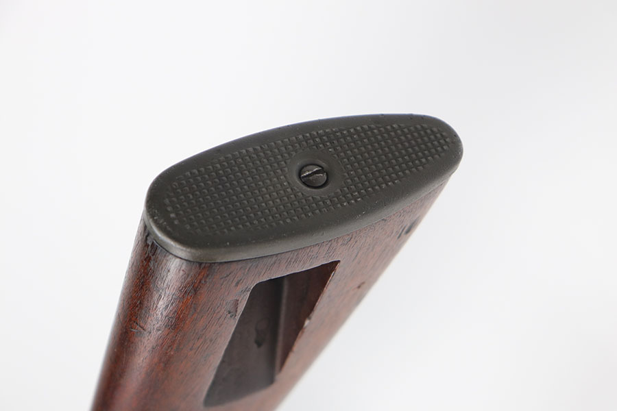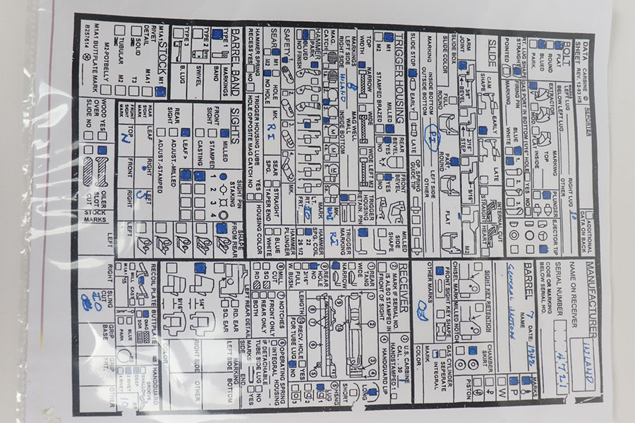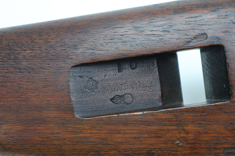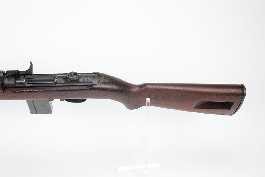 12/15/20 – This is a very early Inland M1 Carbine as produced in 1942, one of the first 5,000 ever made.  A full parts guide is included in the photos for this listing, but that gun has original/correct parts with early high wood, I-cut stock.  Early variation with IO stamp in sling well, but also the flaming bomb and cannons are found there as well.  Barrel is Inland made and dated to July, 1942.  Stock has common dings and nicks but no cracks.  Minty bore.