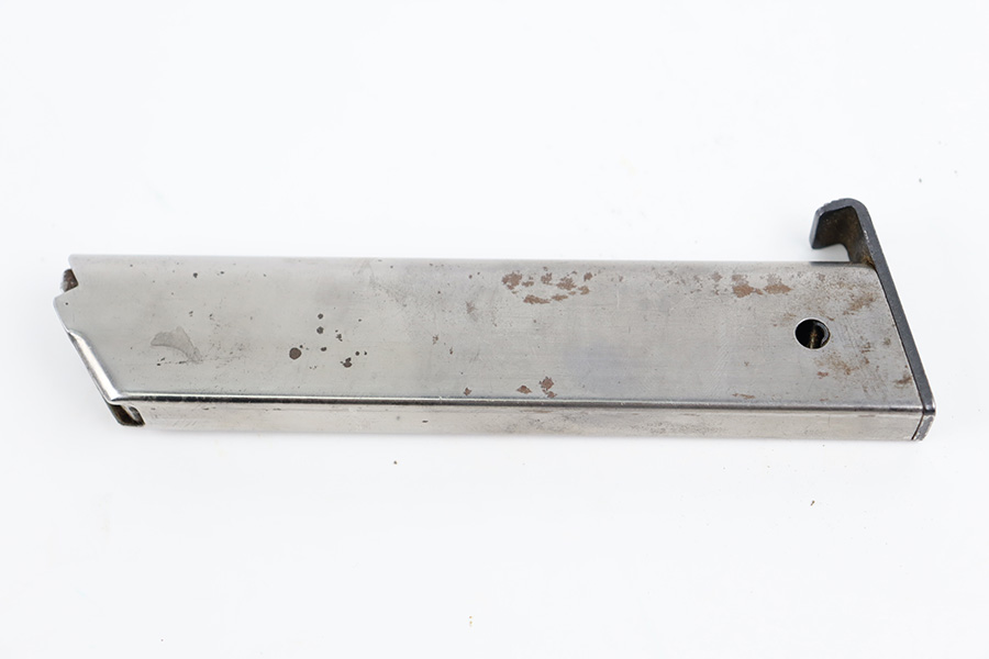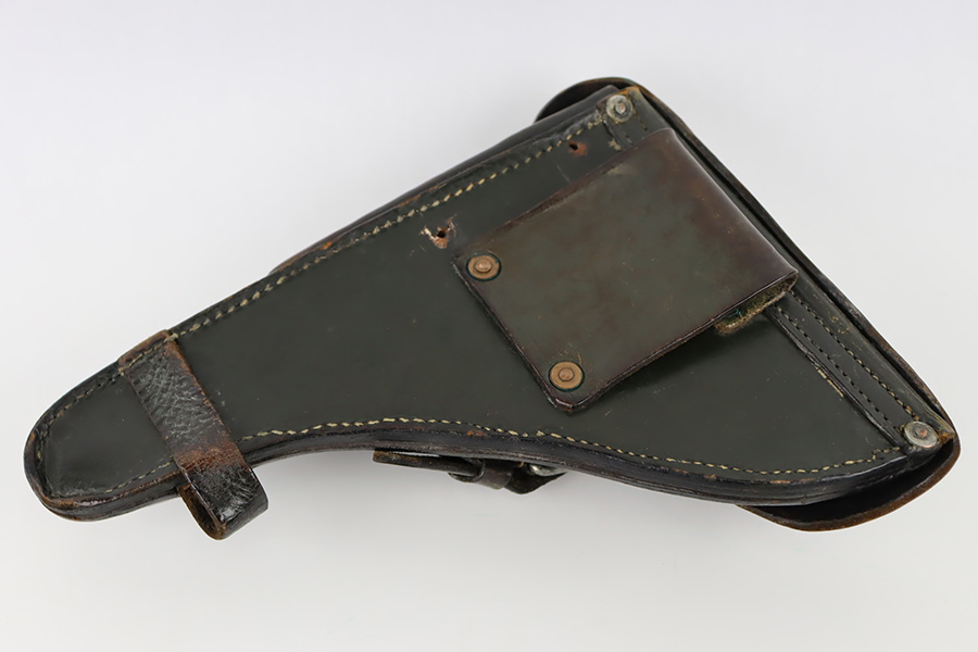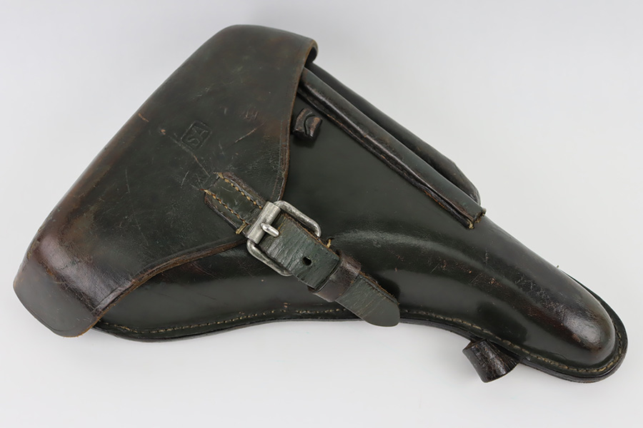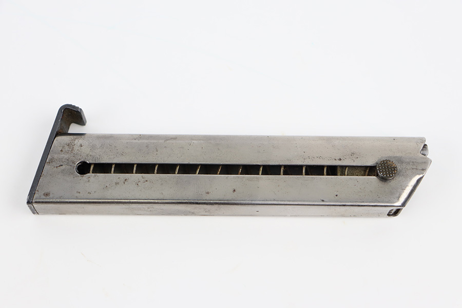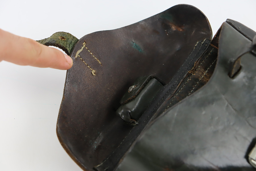 10/12/23 – This is a scarce, early set of Lahti L-35 pistol accessories that includes an original holster, magazine, cleaning rod, brush and tool. The holster is especially hard to find, and has a Finnish military SA marking on it. This variation would be correct for an early Series II pistol. The holster is in good condition aside from two small holes in the back, perhaps indicating the belt loop was moved. The leather is strong and the stitching is intact. Minor cracking on the mag pouch. The listing includes an original cleaning rod and magazine, both of which are SA marked. Brush head and punch tool included.