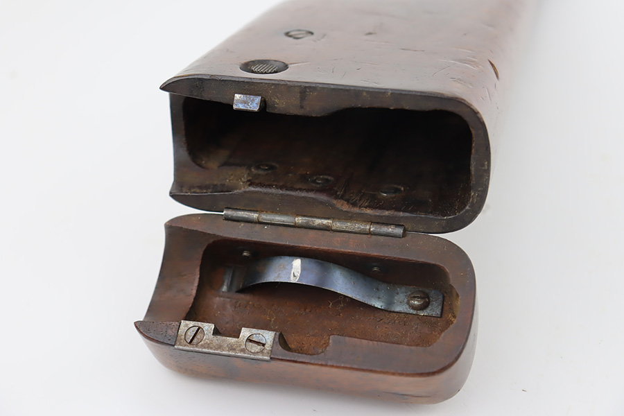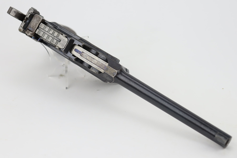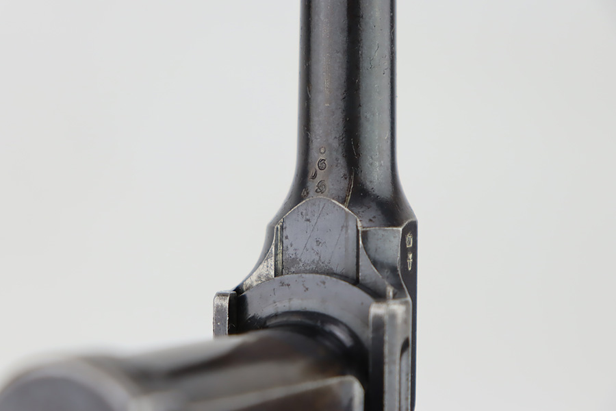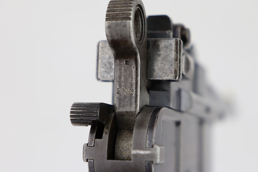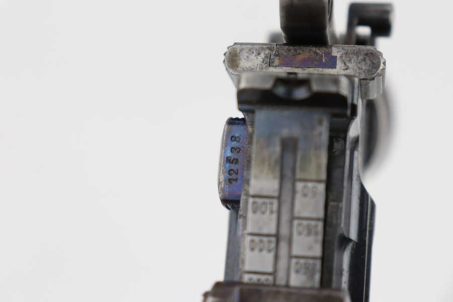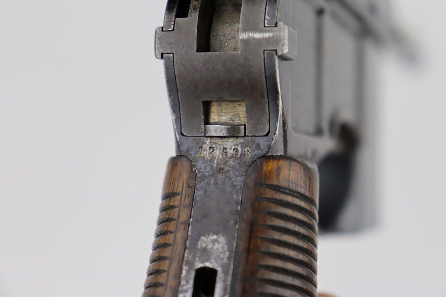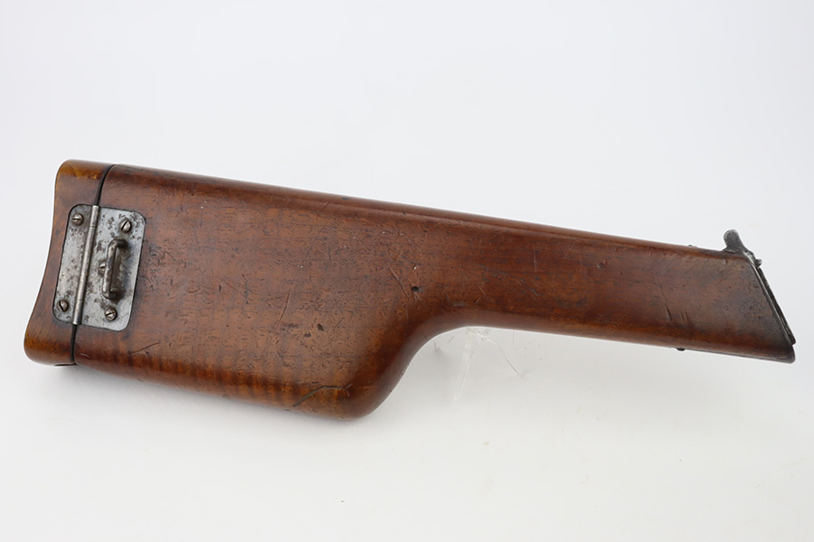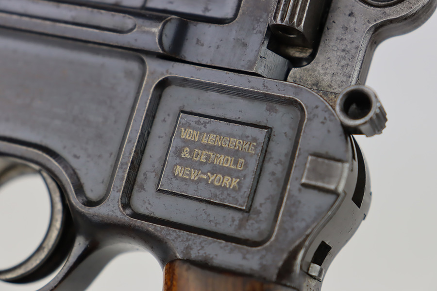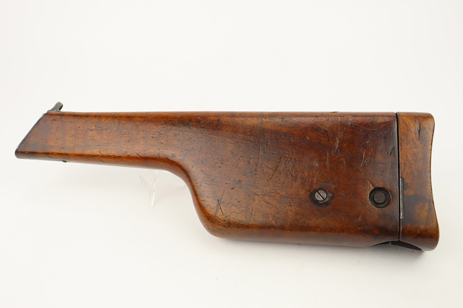 9/27/23 – This is a rare, early example of a Mauser C96 Broomhandle with the original, matching stock. It’s a large ring hammer variant, one of only 20,000 produced. It also features the desirable Von Lengerke & Detmold marking on the left side. Matching numbers throughout, including the original grips. The pistol finish is original but shows oxidation throughout, and some finish loss on the grip frame and magazine housing. Grips are in excellent condition. Bore has fairly strong rifling but some frost throughout. The stock has the matching serial on the attaching lug. It has a minor surface crack on one side but is generally in good condition with no major issues.