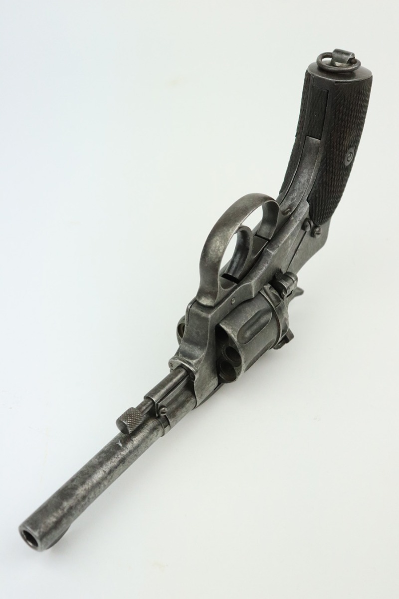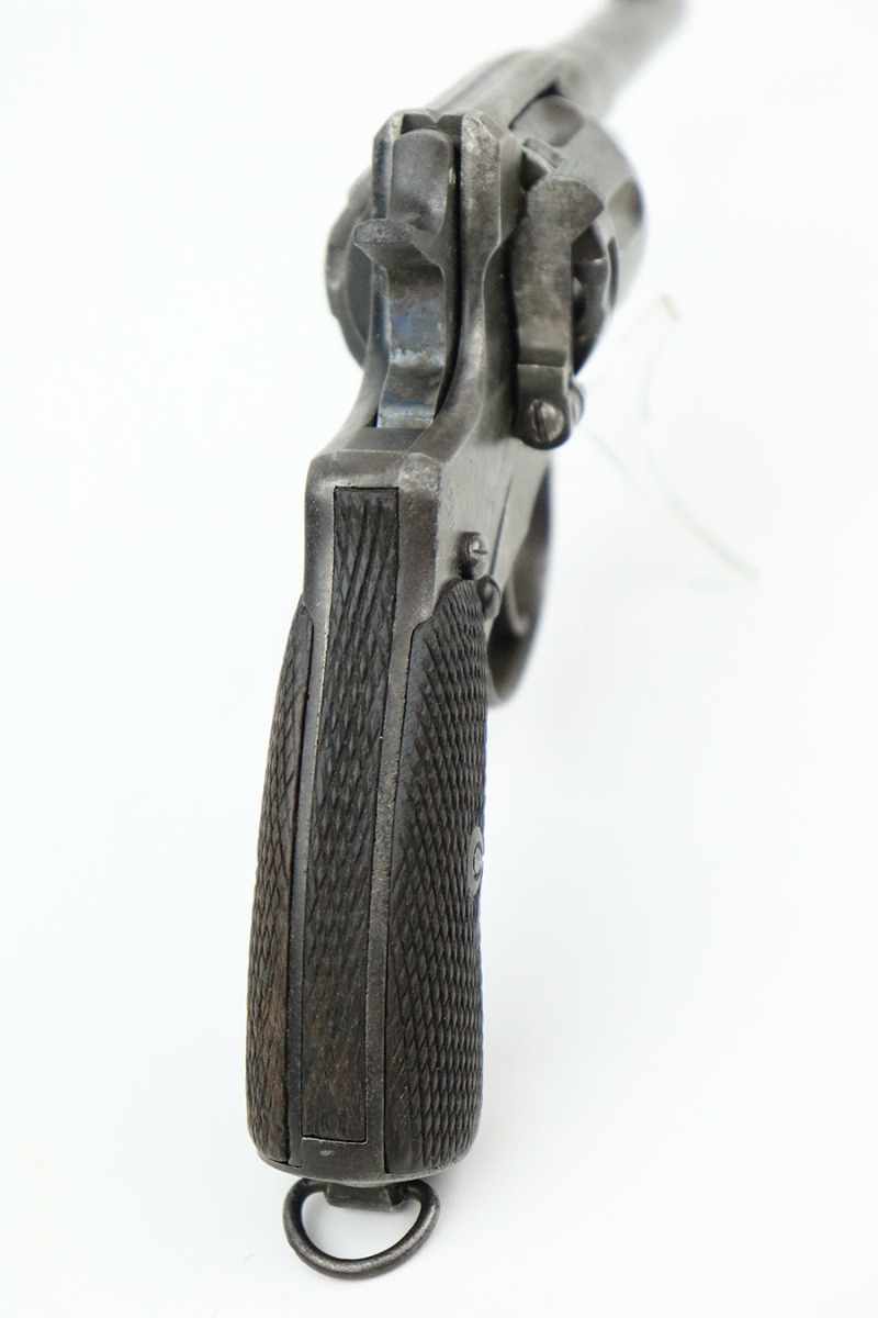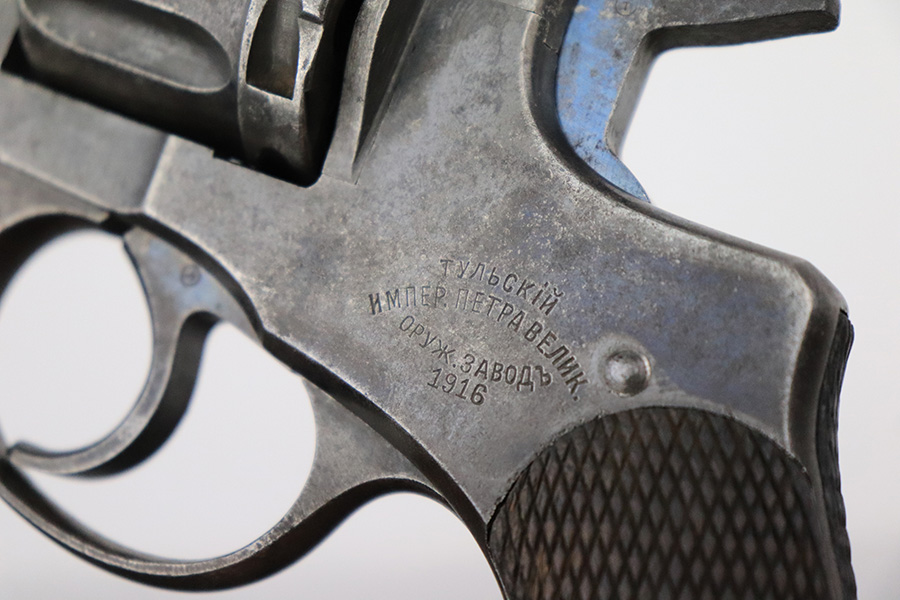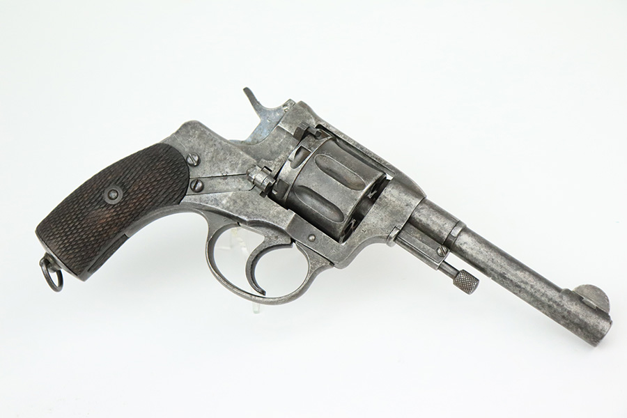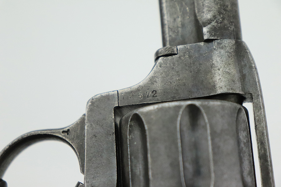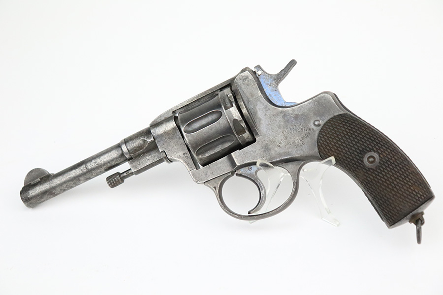 7/21/22 – This is a scarce, early Nagant M1895 revolver from 1916. These are difficult to find in original, non-import condition. The finish on this one is obviously worn and splotchy but it hasn’t been arsenal refurbished. Matching and original. Grips show minor smoothing. Bore has strong rifling but some frost and freckling throughout.