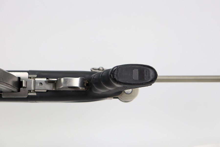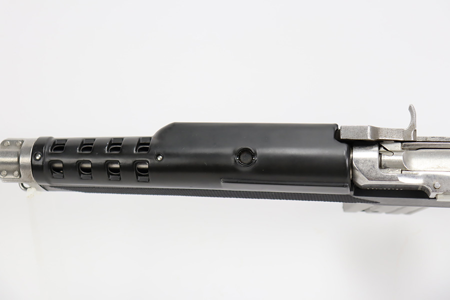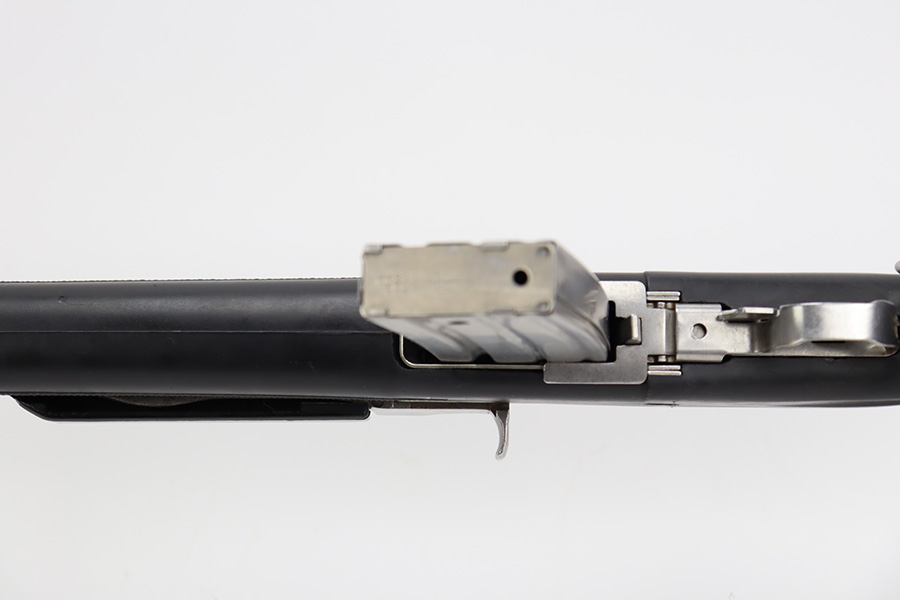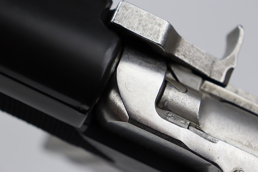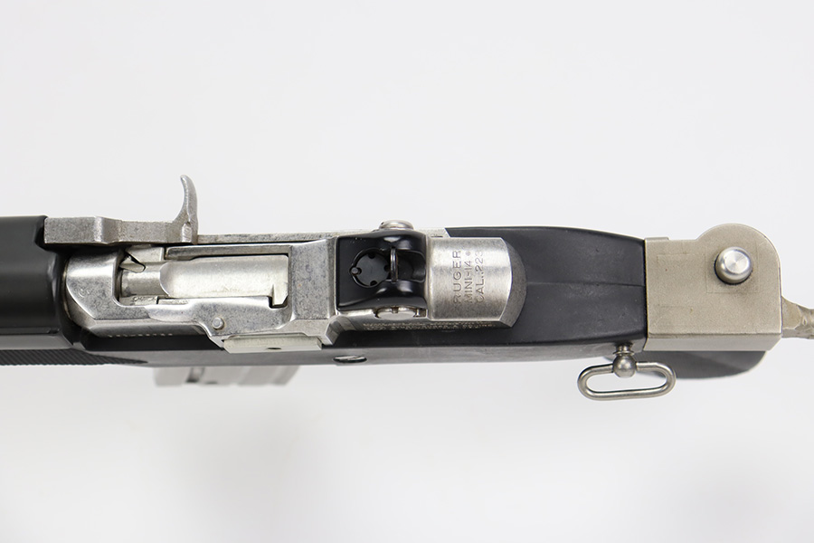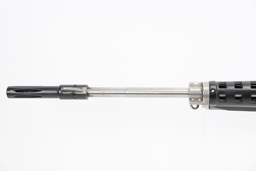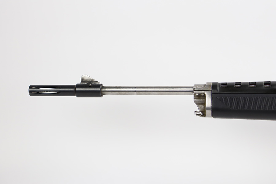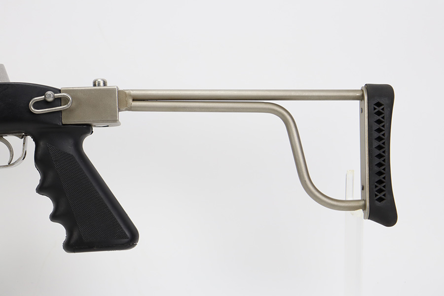 9/20/23 – This is a scarce Ruger Mini-14 that was made in 1980. It features a stainless steel finish and the tactical folding buttstock. The finish shows some oxidation/age but the rifle is in good condition overall with shiny bore and good mechanics. 20rd magazine. Introduced in 1973, the Mini-14 design was outwardly based on the M14 rifle and is, in appearance, a scaled-down version chambered in 5.56×45mm NATO, though with its own gas system design.