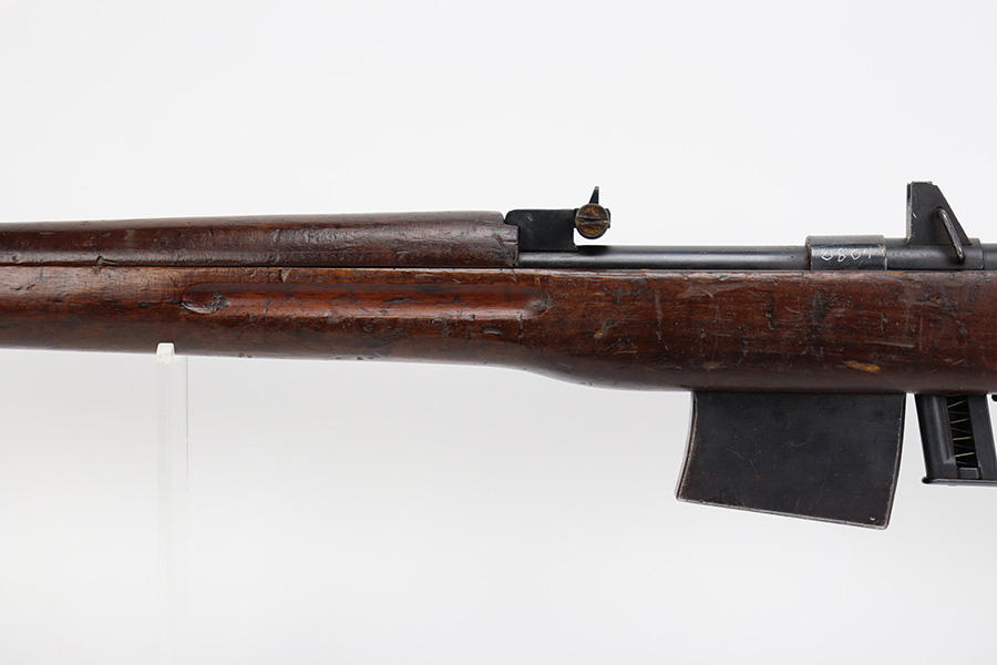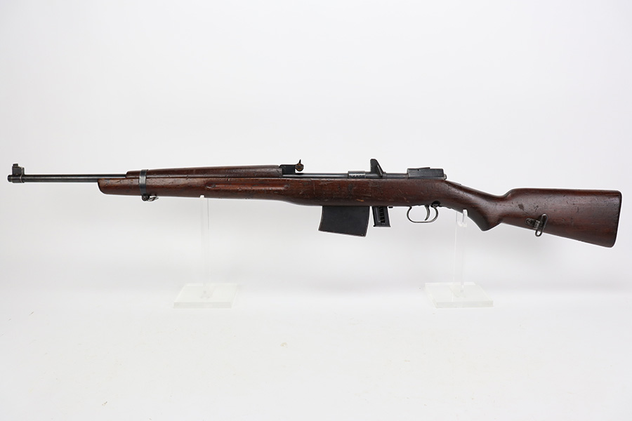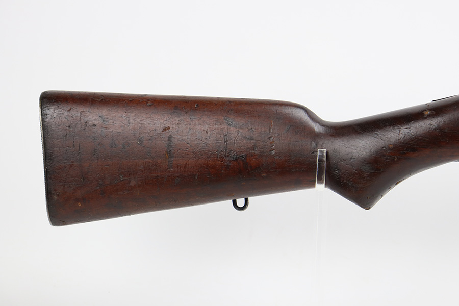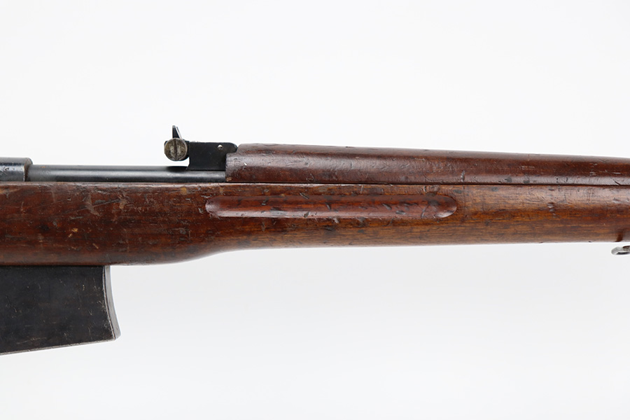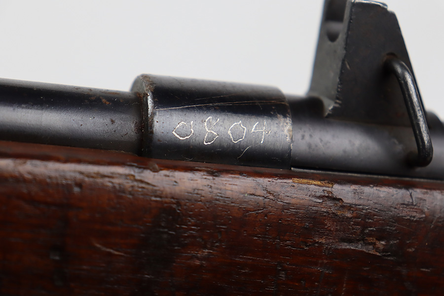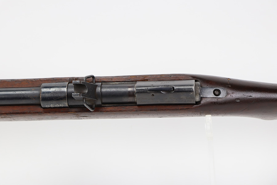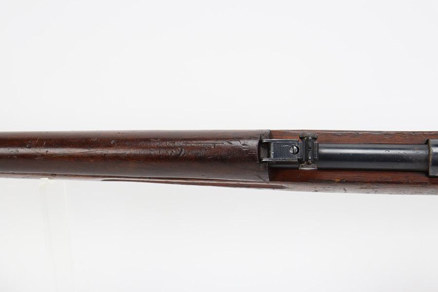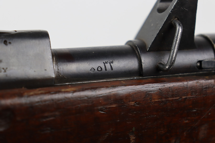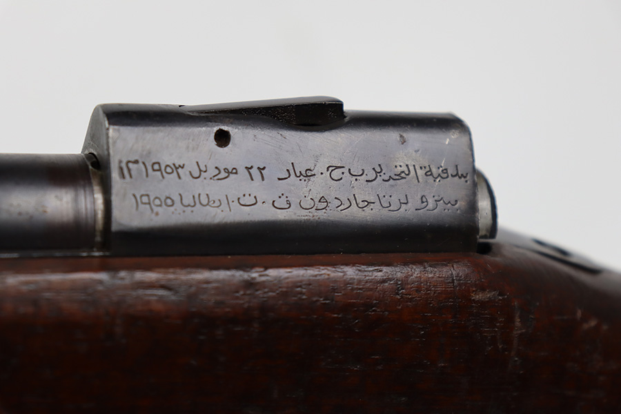 9/7/23 – This is a scarce Egyptian Hakim Training Rifle, manufactured by Beretta in the 1950’s and chambered in .22LR. These rifles were contracted out to Beretta for production in the 50s along with air rifles by Anschutz. The rifle has retained about 70% of its finish, with minor areas of wear present on the barrel, receiver, and barrel band. Some edgewear and rust spots here and there. Wood furniture has dings, scrapes, and handling marks throughout, but no major damage or signs of repair. Bore is bright but frosted over.