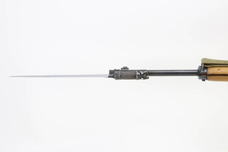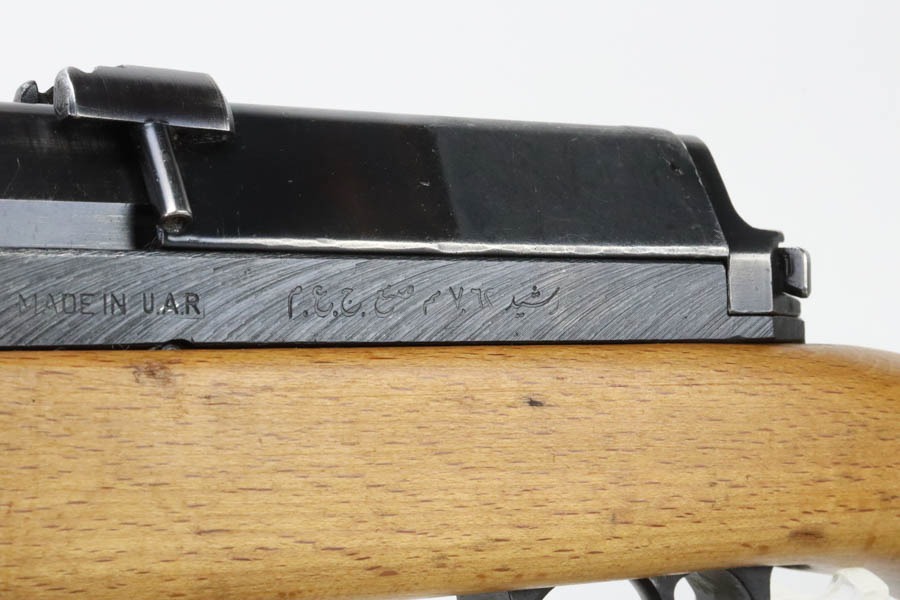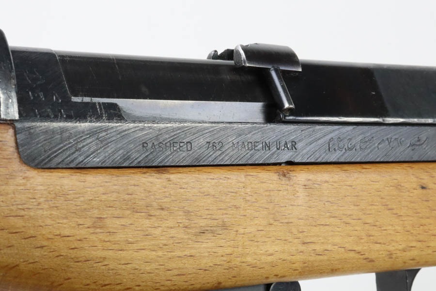 09/26/2024 – For sale is an Egyptian Rasheed produced during the Cold War prior to the adoption of the AKM. The rifle is based on the Hakim which used machinery that produced the Swedish AG42 Ljungman. The rifle is a direct impingement rifle fed from a 10-round magazine with a SKS style folding bayonet. The rifle retains a very nice bluing throughout but there are wear marks on the nose cap and barrel. The stock has been sanded but is free of any cracks or breaks. The bore is bright with great rifling, but the barrel is counterbored about 2 inches.