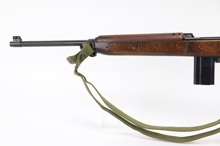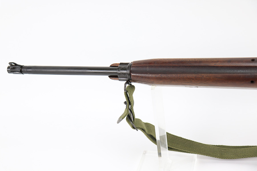 3/25/22 – This is an excellent example of the scarce Inland M1A1 Paratrooper Carbine, made in 1944. This is a correct configuration for a “second run” WW2 paratrooper carbine. About 70k were made in the second run. Barrel date puts this one in the middle of the 2nd run (5/44). The barrel has no bayonet lug and no evidence that one was ever installed. The rear site is adjustable, which is correct for a Type 2. Inland parts throughout. Leather cheek pad and rivets all appear original. Rivets are flush with the leather as they should be and the butt plate casting numbers are faint as they should be. Terrific, original finish throughout with only minor thinning on the receiver. Original Inland magazine. Excellent stock with no notable defects. Bottom of the grip handle is marked RI over 3, which the book indicates were subcontracted paratrooper stocks made by Royal Typewriter, and correct for this carbine. Handguard is correctly marked IO. Also comes with a period correct, good condition, military issued shoulder strap. Mint bore, hardly looks fired.