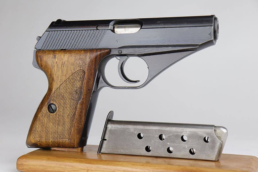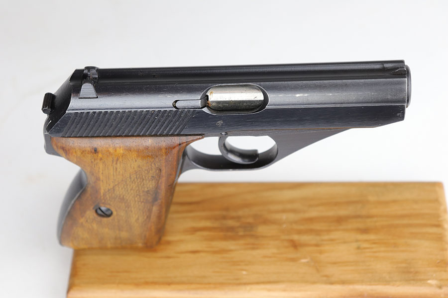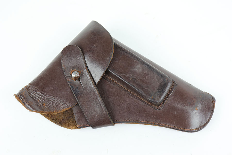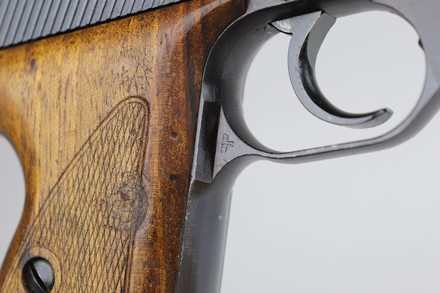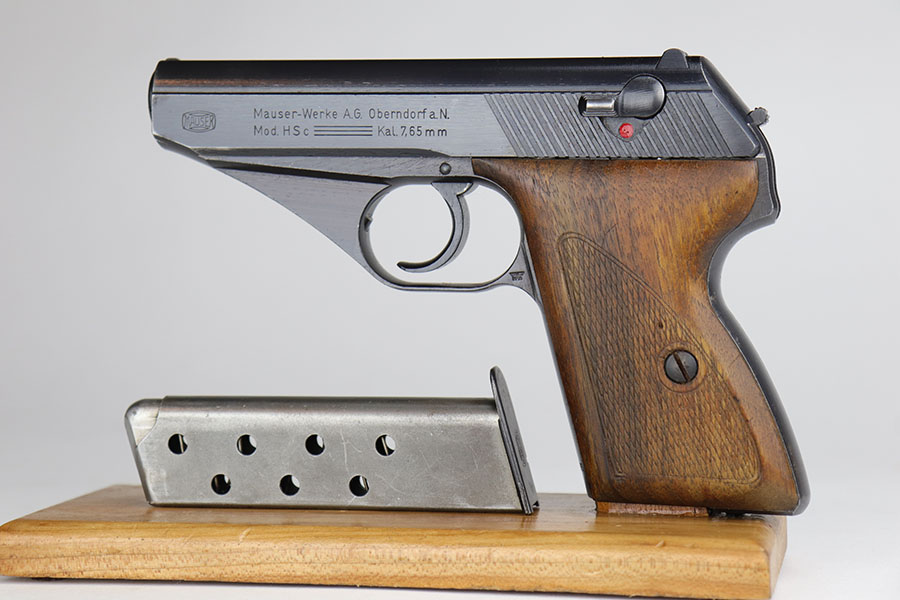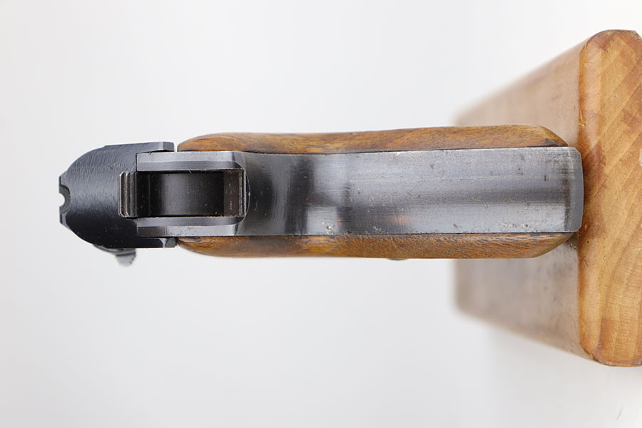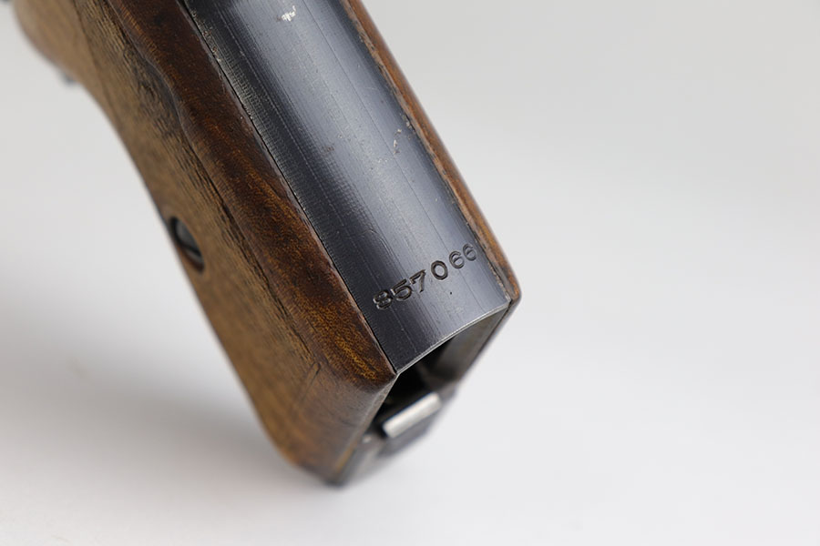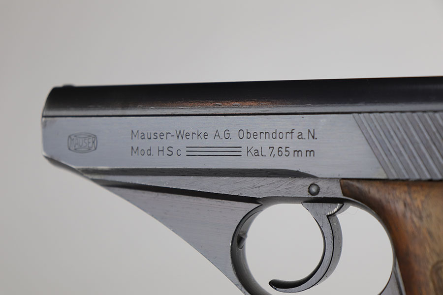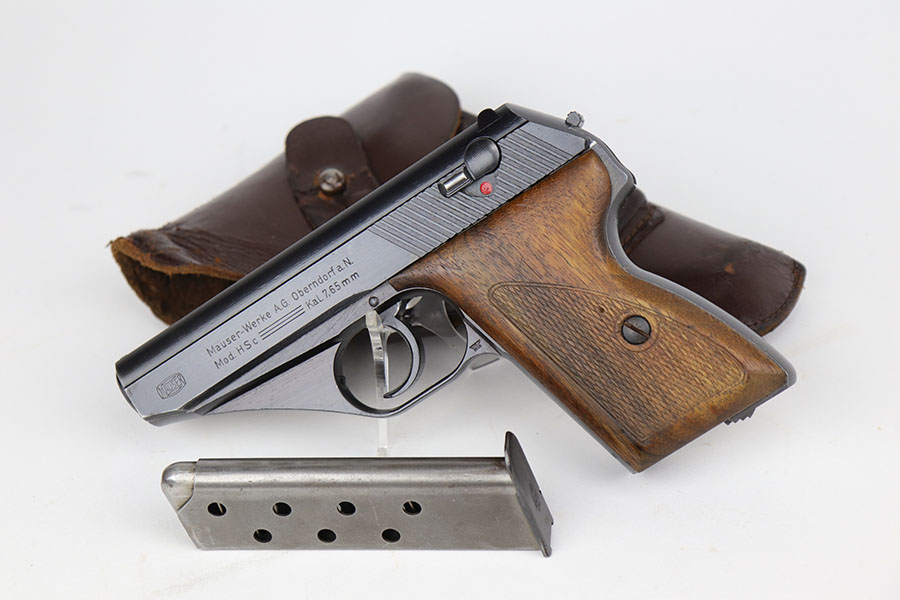 8/7/20 – This is a rare Kriegsmarine issued Mauser HSc and holster in terrific condition. This is a fourth variation pistol, one of only 4,500 produced. It’s all original with 98+% of the blue remaining. There’s just a few tiny spots of wear on the straps and right side of slide, and a minor area of freckling on the right side of the slide in another area. Excellent bore. Grips have no cracks or chips but there is a ding on the right panel. Banner magazine. The holster is also an original and rare example with Kriegsmarine eagle on the back. It has some crinkling on both sides but is in good condition overall.
