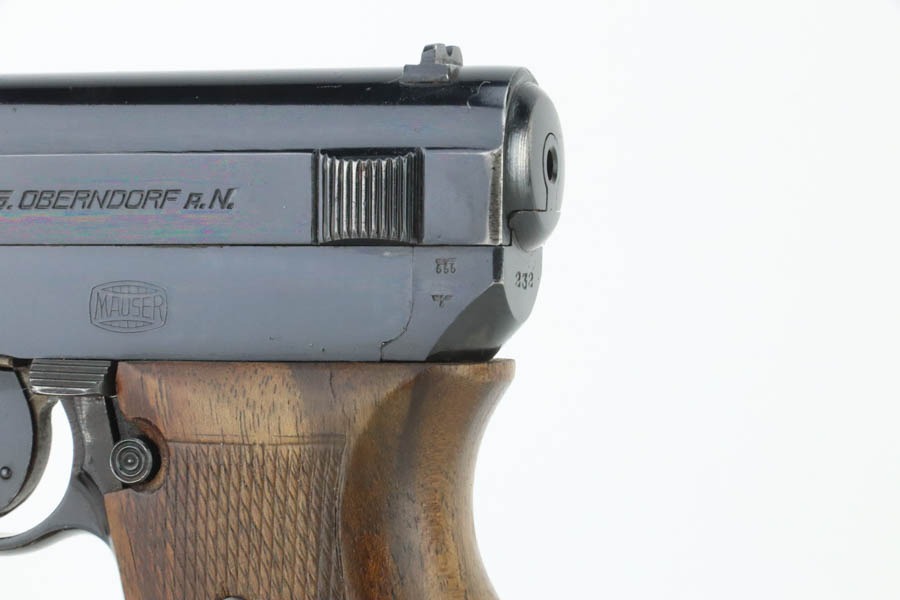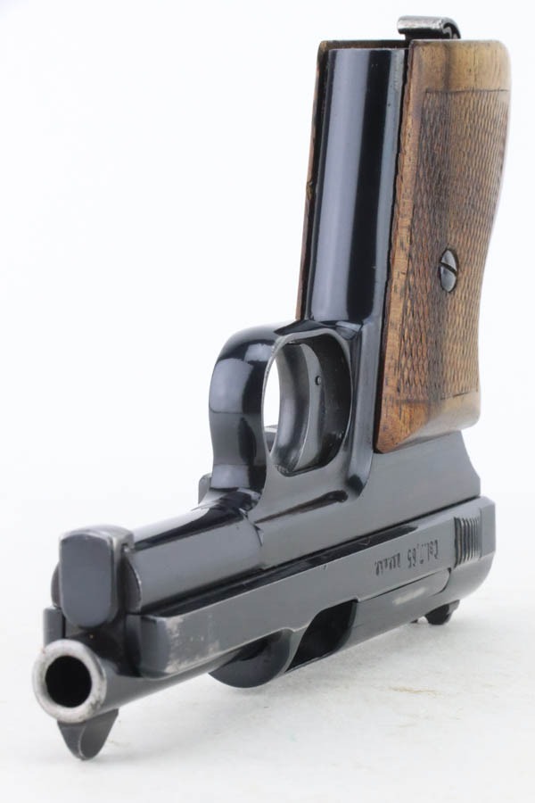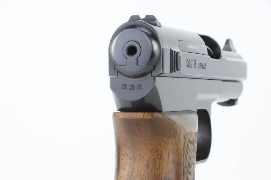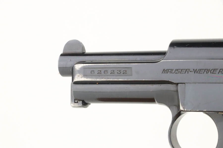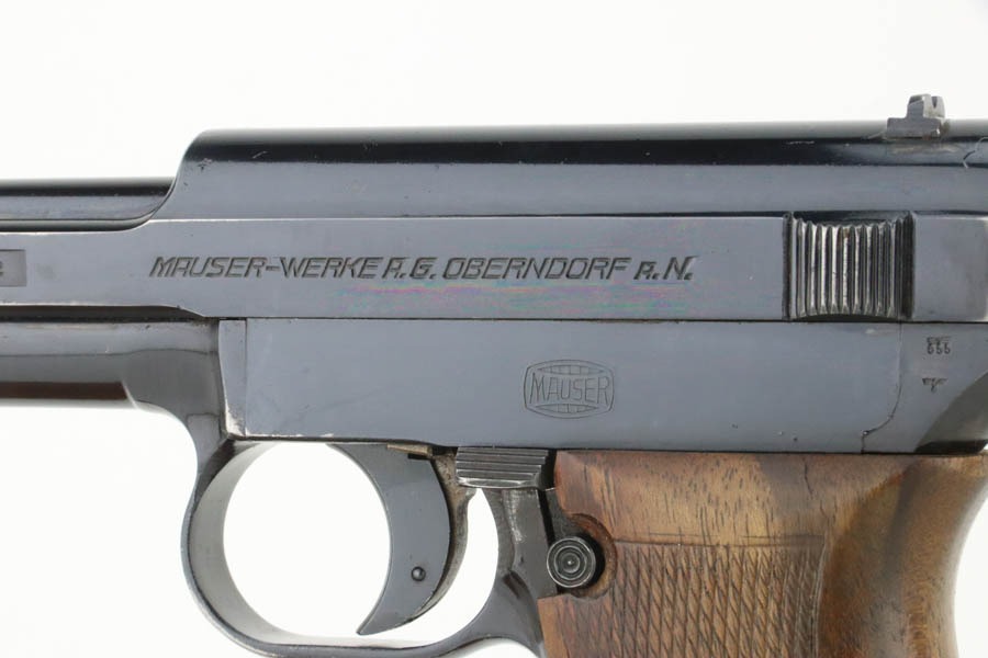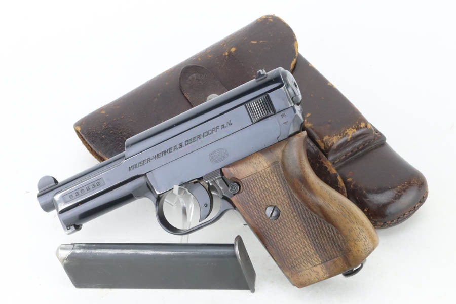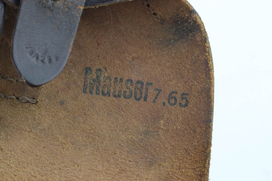 10/29/24 – This is an excellent example of a scarce Mauser Model 1934 issued to the Nazi army during WW2. It was made around 1940. Only about 8,000 of this variation made. All matching with the proper Eagle test proof and “Eagle 655” military acceptance proof on the left side of the tang. It comes as a rig with one proper magazine and a scarce 1942-dated waffen-proofed holster – visible ink stamp on the inside. It has retained about 95% of its original high polish finish. Just minor muzzle and high edge wear with a light streak of wear on the extractor. Beautiful font strap. Fitted with an excellent period-correct wood grip. Excellent bore.