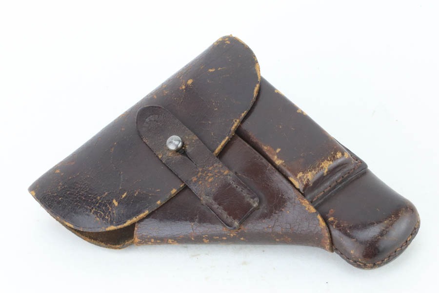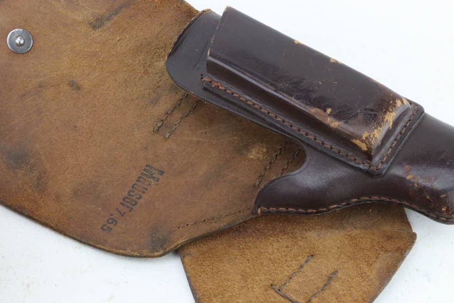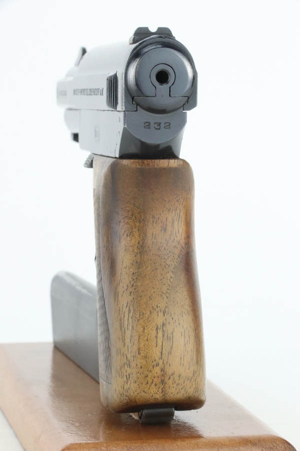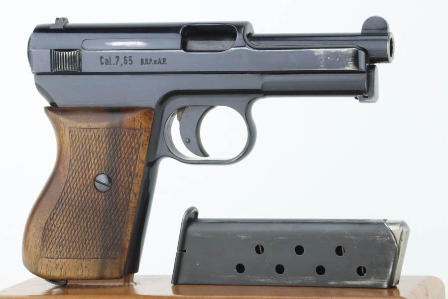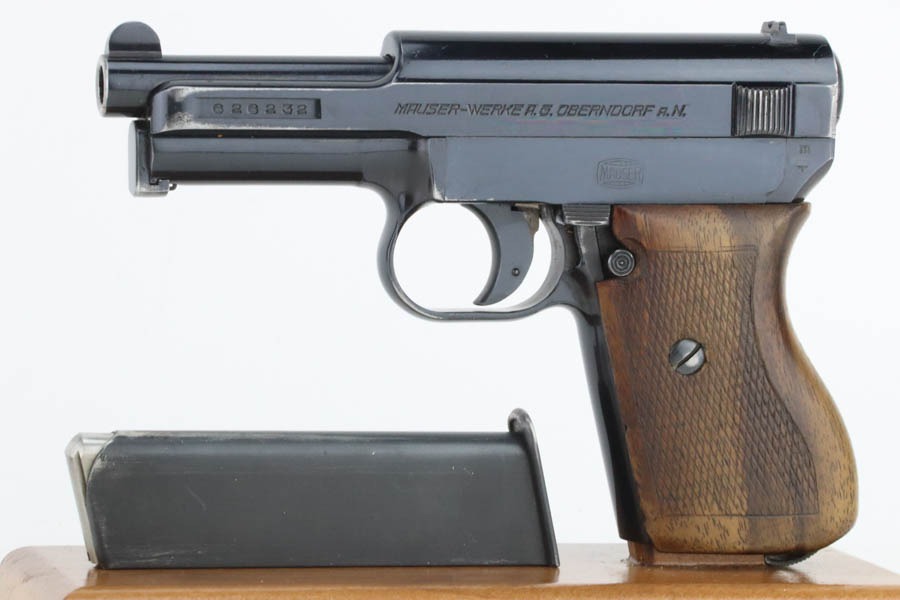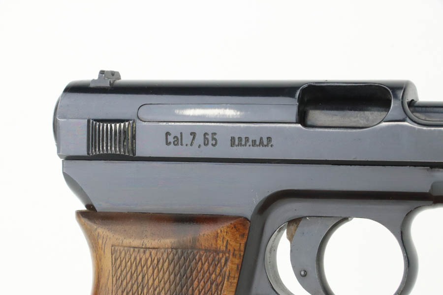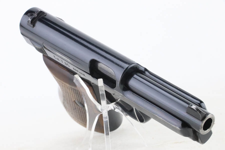 10/29/24 – This is an excellent example of a scarce Mauser Model 1934 issued to the Nazi army during WW2. It was made around 1940. Only about 8,000 of this variation made. All matching with the proper Eagle test proof and “Eagle 655” military acceptance proof on the left side of the tang. It comes as a rig with one proper magazine and a scarce 1942-dated waffen-proofed holster – visible ink stamp on the inside. It has retained about 95% of its original high polish finish. Just minor muzzle and high edge wear with a light streak of wear on the extractor. Beautiful font strap. Fitted with an excellent period-correct wood grip. Excellent bore.