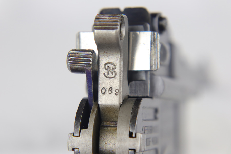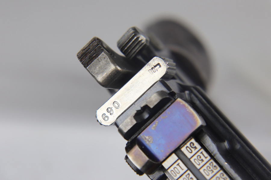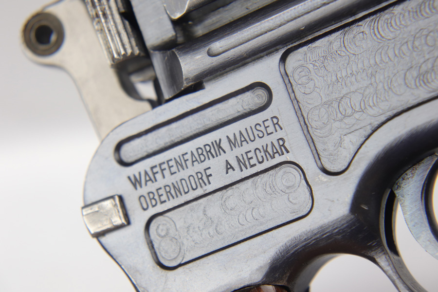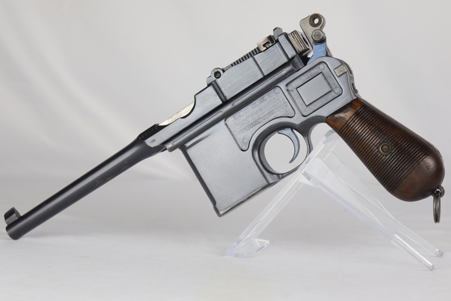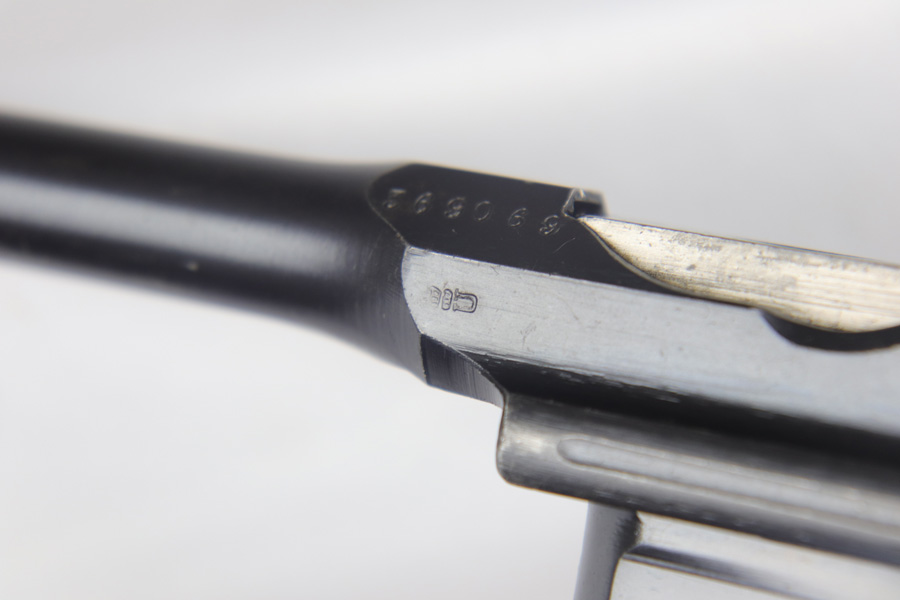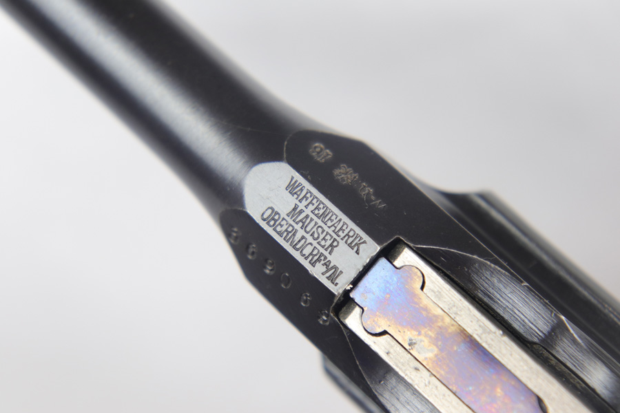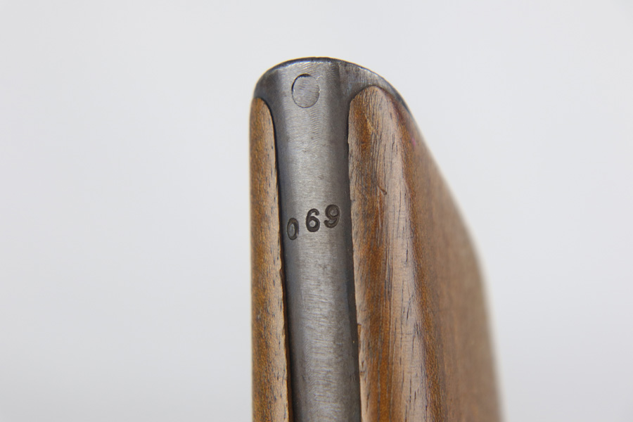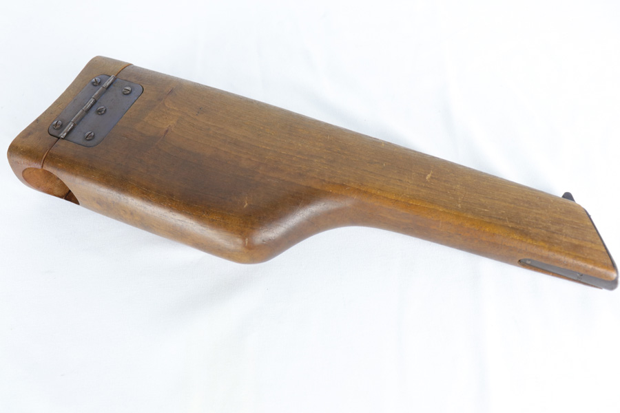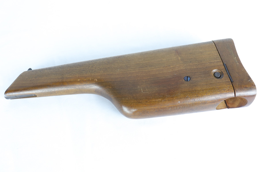 11/2/18 – This is a fantastic and desirable example of an all original, correct and matching Mauser C96 Broomhandle rig with matching numbered stock. This gun is particularly desirable as the right side receiver and the stock share the same Austro-Hungarian acceptance marking, “W-n 16”. The original bluing of the pistol rates at 95-96% with basic high edge wear but most of the finish loss found under the barrel from rubbing inside the stock. The grips are numbered to the gun and in excellent condition. Some small parts still show brilliant fire blue. The stock is imperial proofed and in great condition, with no cracks or chips. Pistol bore is very shiny with strong rifling, with little sign of extended use.